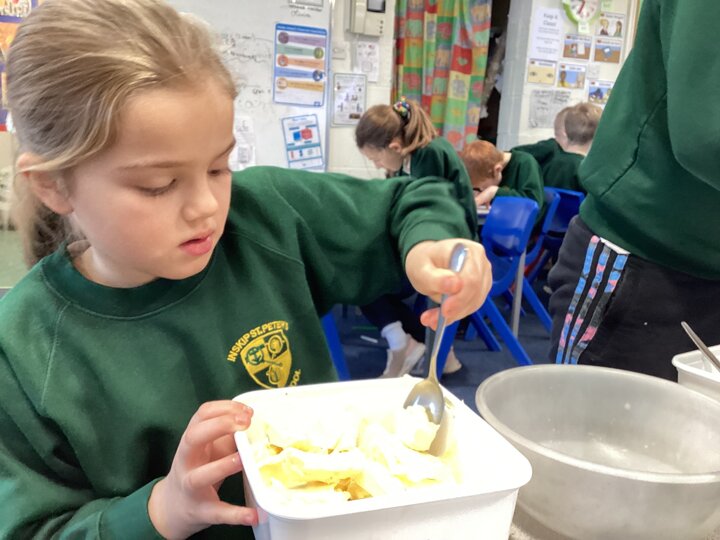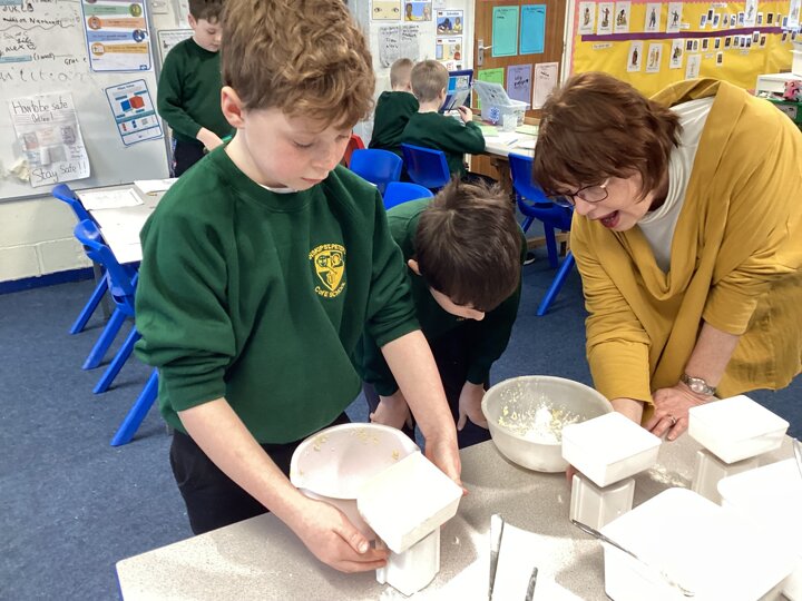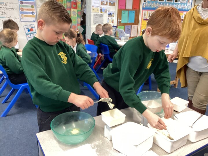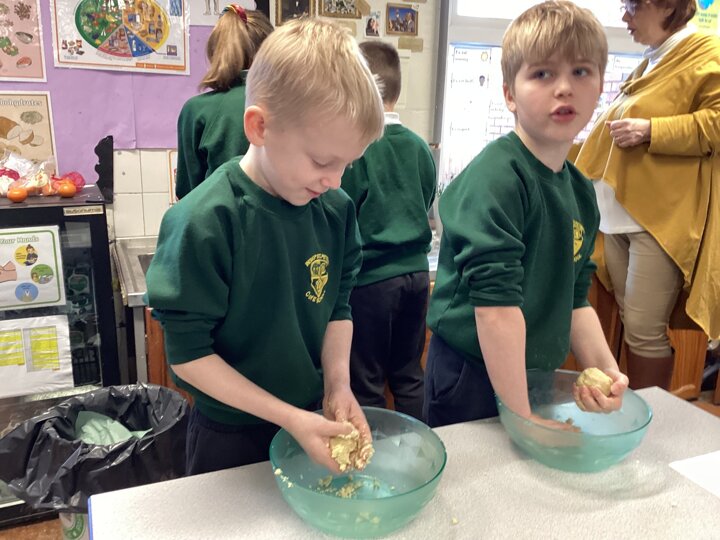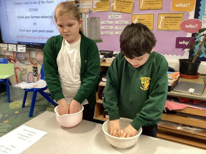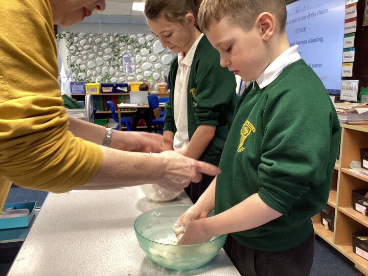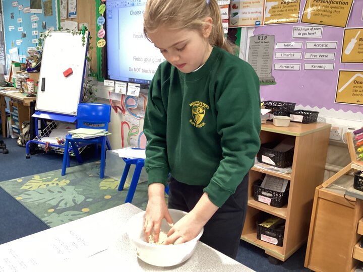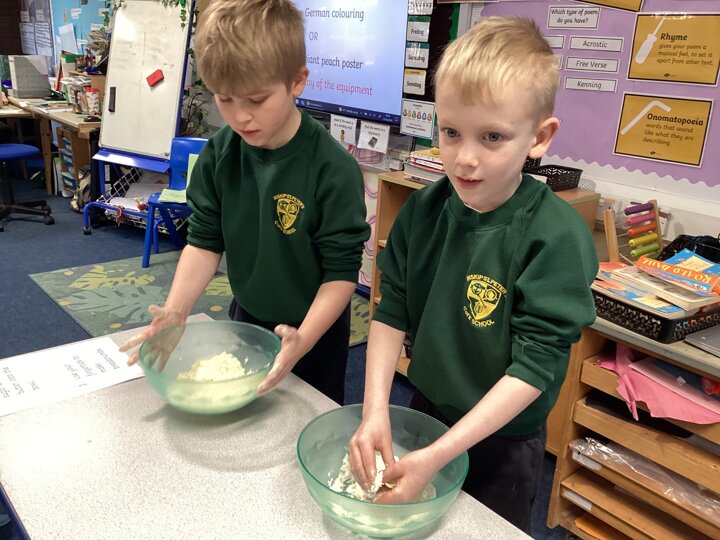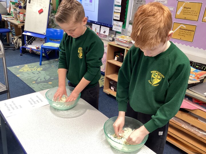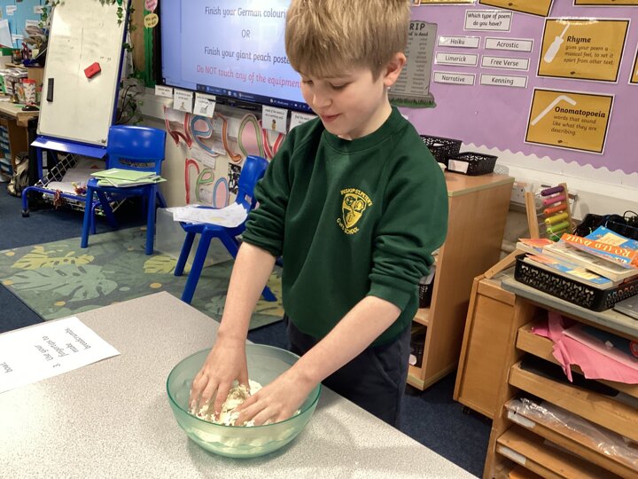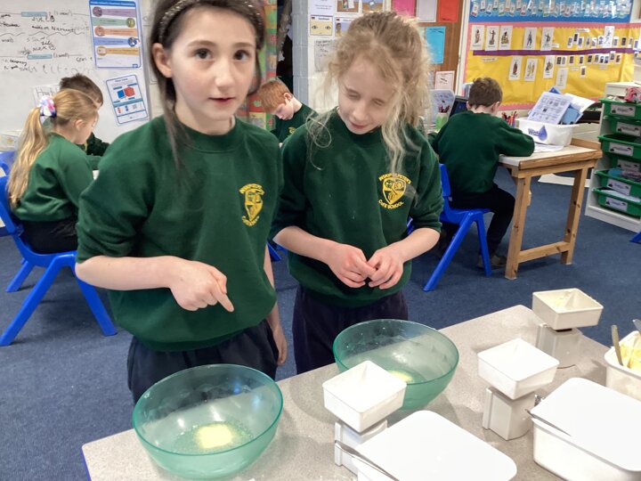 Baking allowed children to follow their DT, but also to use their English comprehension skills with following instructions and their maths measures skills with weighing out amounts.
