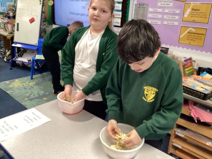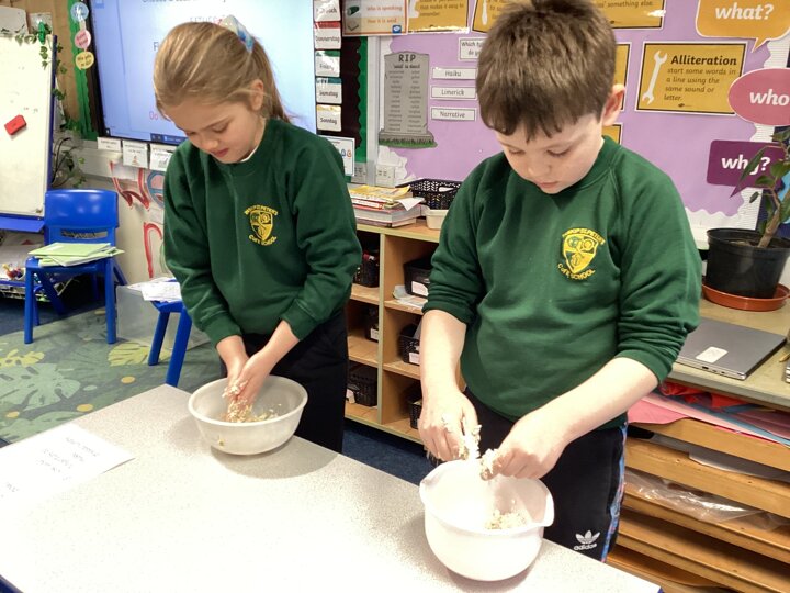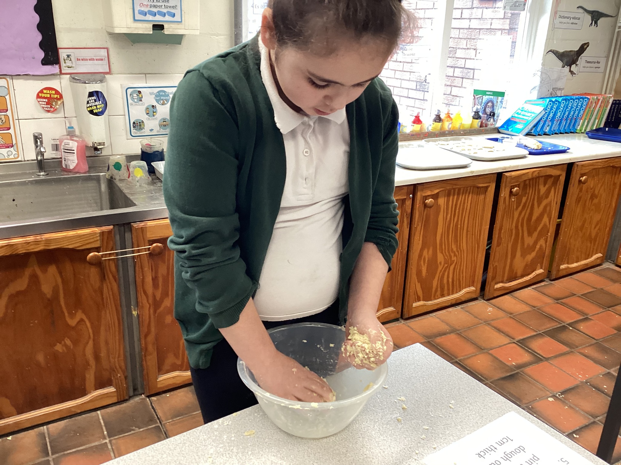 Some children had to solve problems with their dough - for example some were too crumbly and some were too sticky. We needed to figure out what would fix this problem using what we had.
