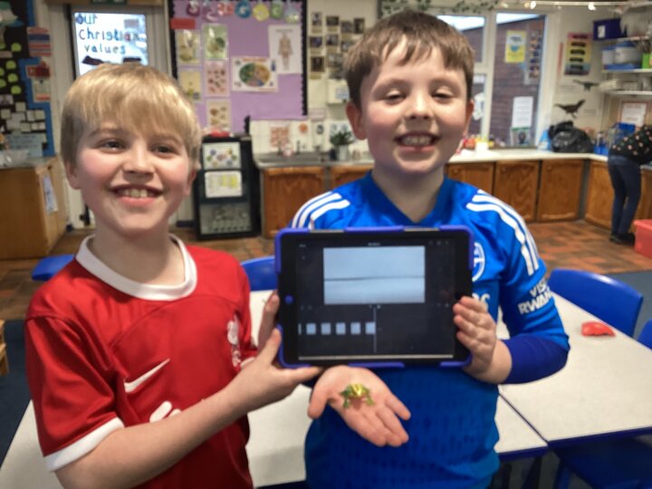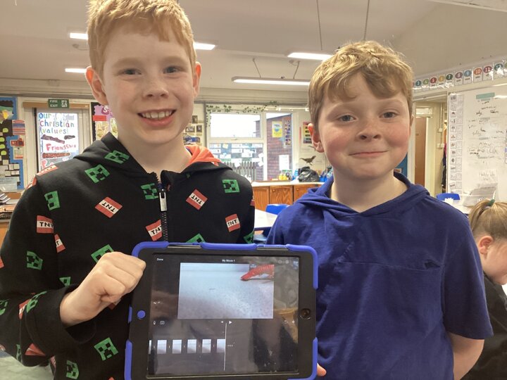 To finish our computing topic of 'stop motion animation' We have made an animation using a series of photographs. The children used i pads to take a series of photographs to make an animal toy or classroom object appear as if it was moving. This can be difficult as it needs to move only a slight bit at a time! After this, children used editing software 'i movie' to put their still images together into an animation.