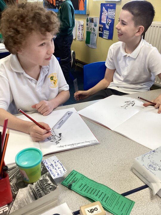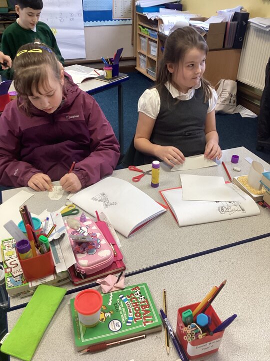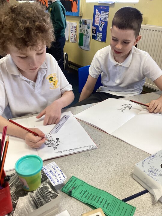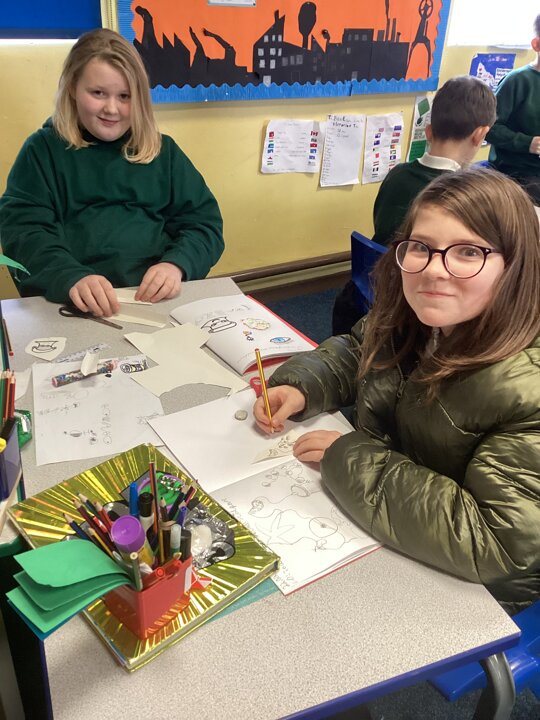 We first considered where our sculpture would be stood so we had an idea of space and height. We then made some annotated drawing designs to capture some possible ideas.