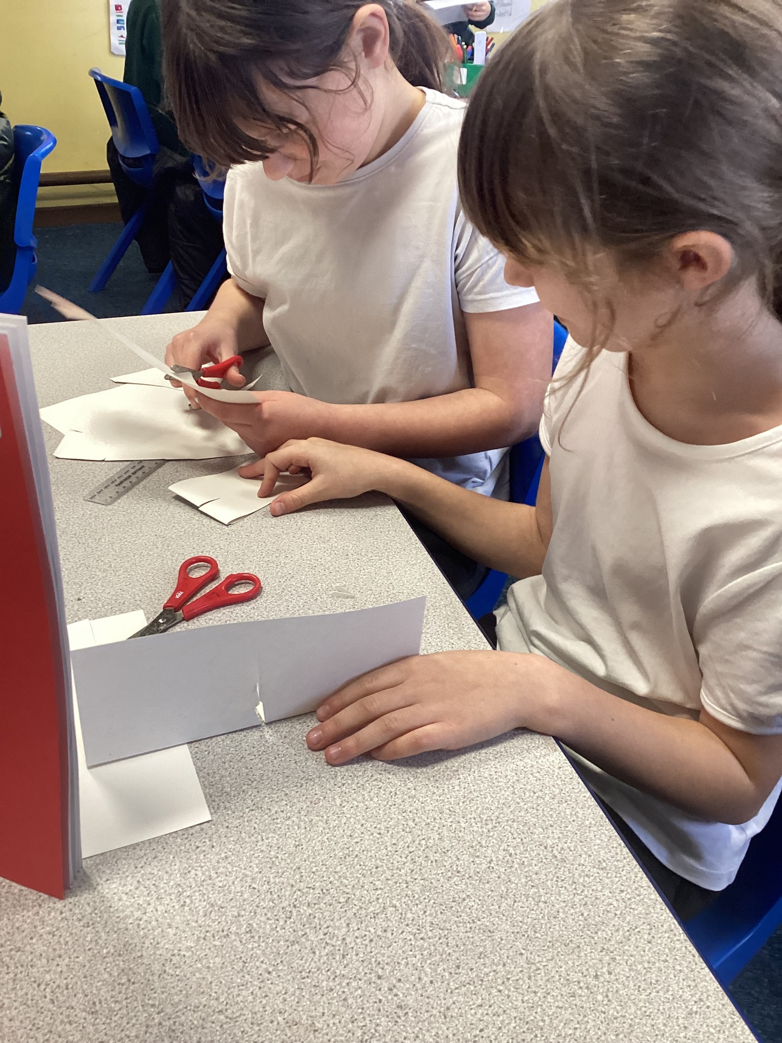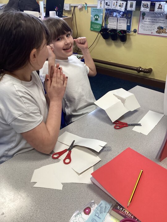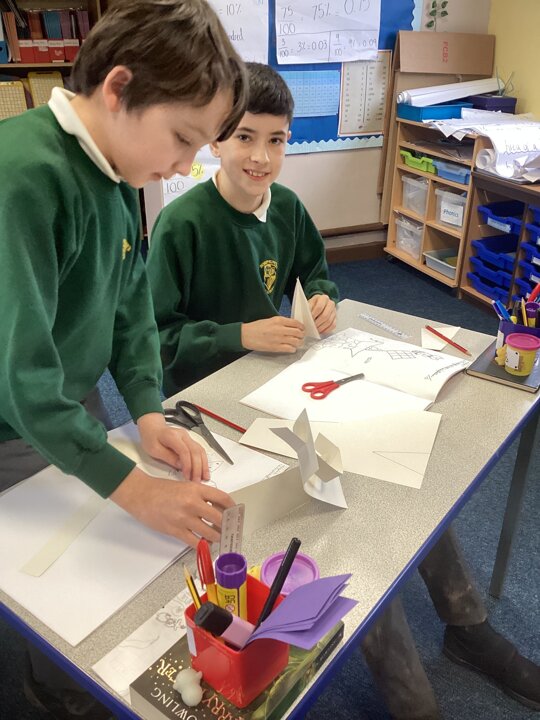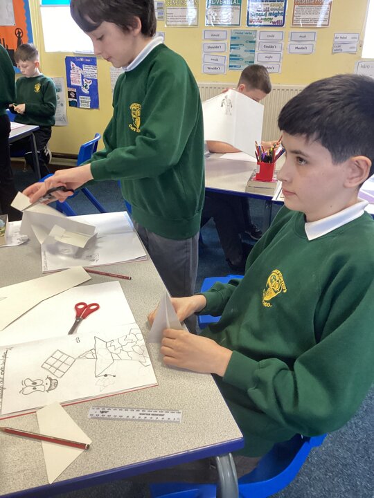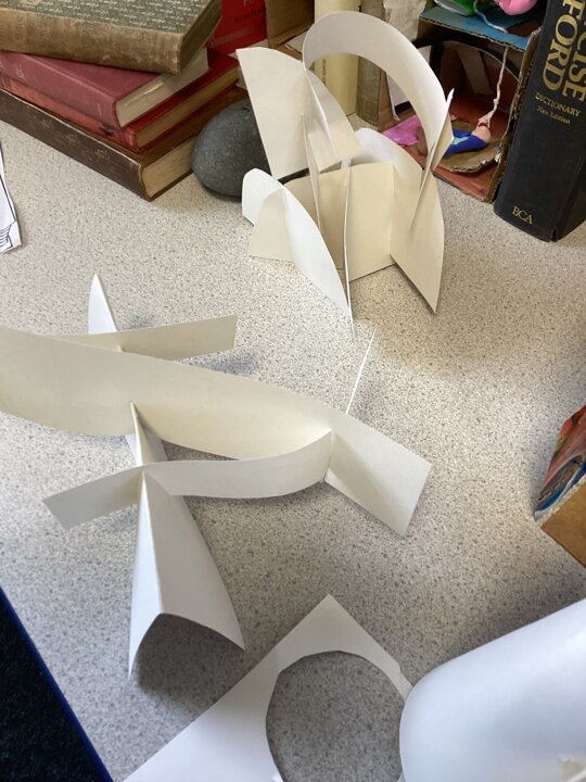 Using strong pieces of card, we then experimented with how we would connect different parts in our sculpture so the pieces could be deconstructed / constructed easily but still stand proud. We explored different folds and different ways of connecting shapes and pieces with cuts and slots.