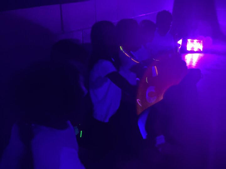This Thursday, nine children from Middle School set off to Garstang Academy to play in a glo-dodgeball tournament. This is a very fun and exciting game where the lights are turned out, the UV lights come on and the music plays loud!