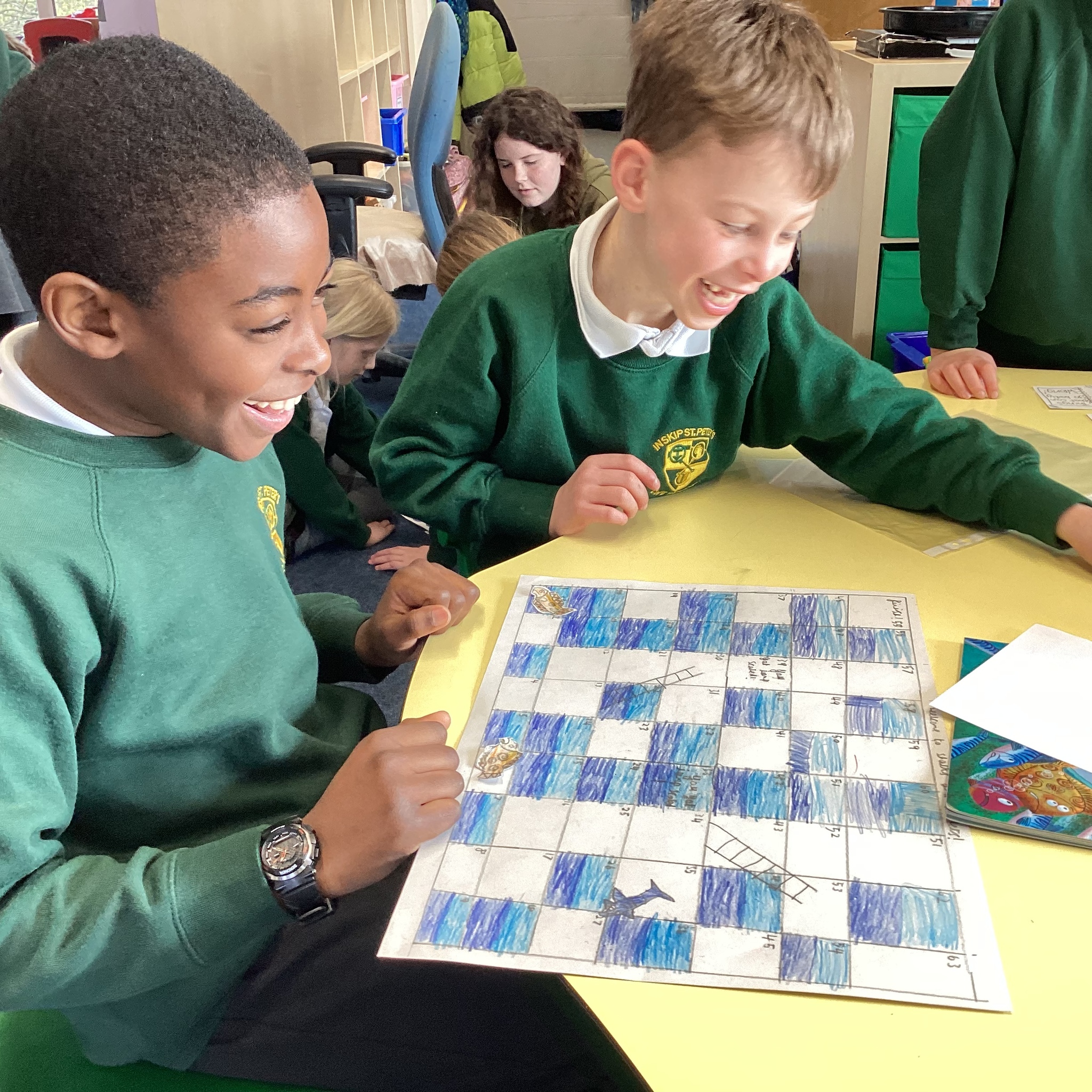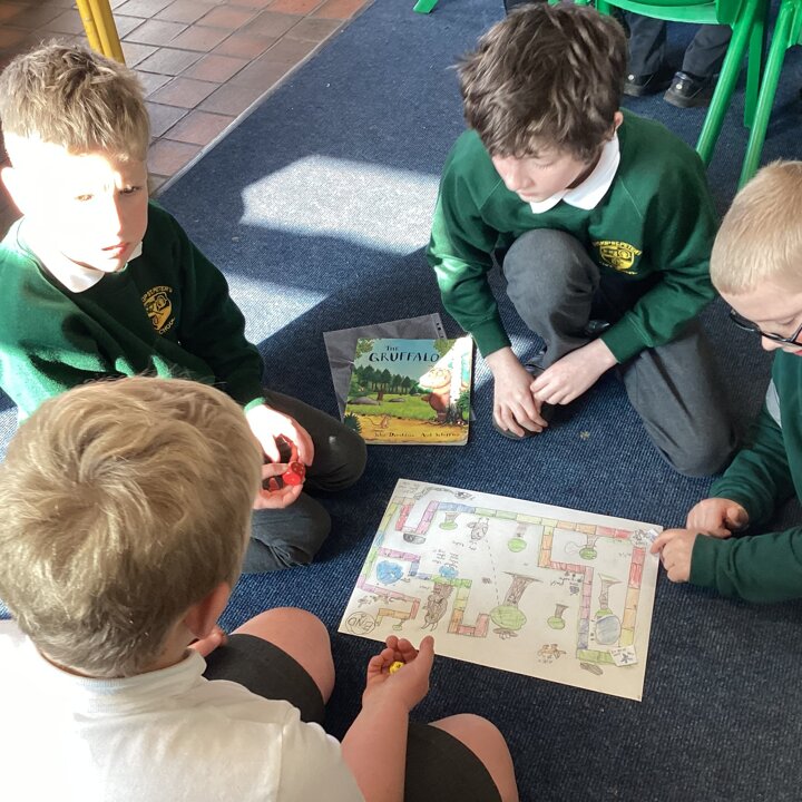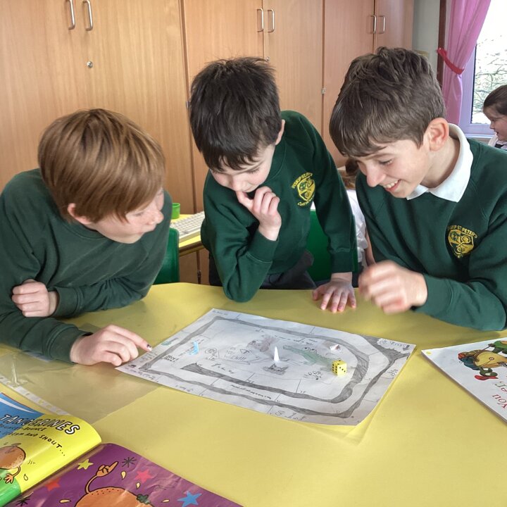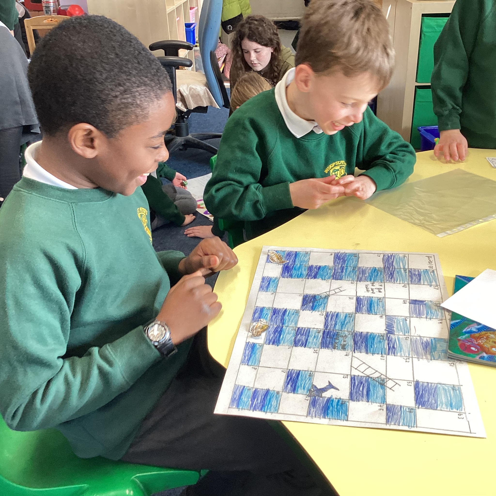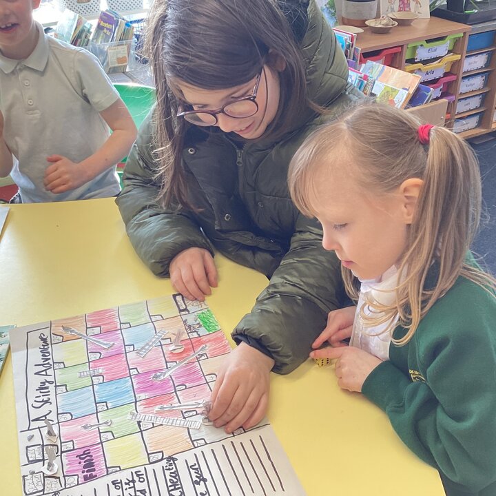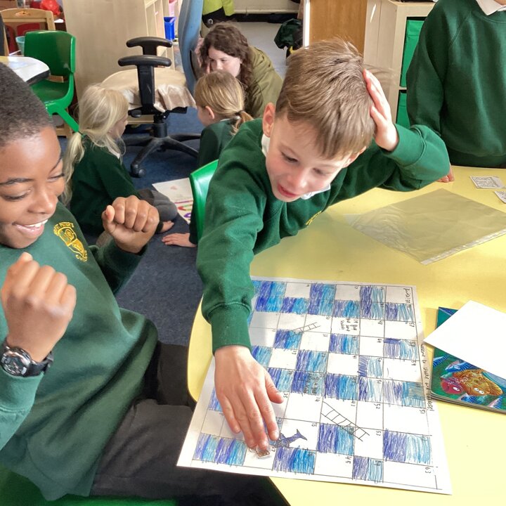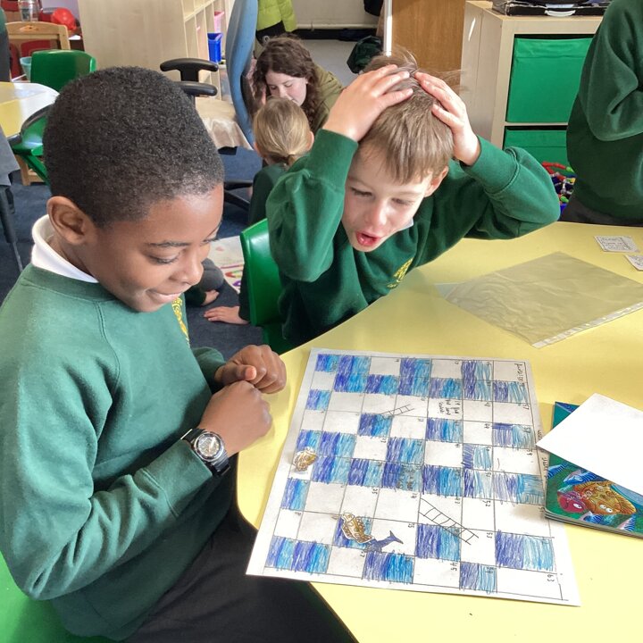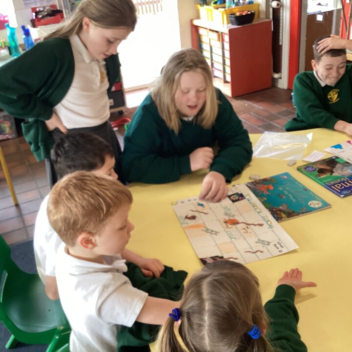 In the afternoon we had a big treat as Upper School joined us bringing us board games based on a book of their choice that they had created especially for us! Thank you Upper School you created some fantastic games, take a look at these photos to see how much Lower School enjoyed playing them …