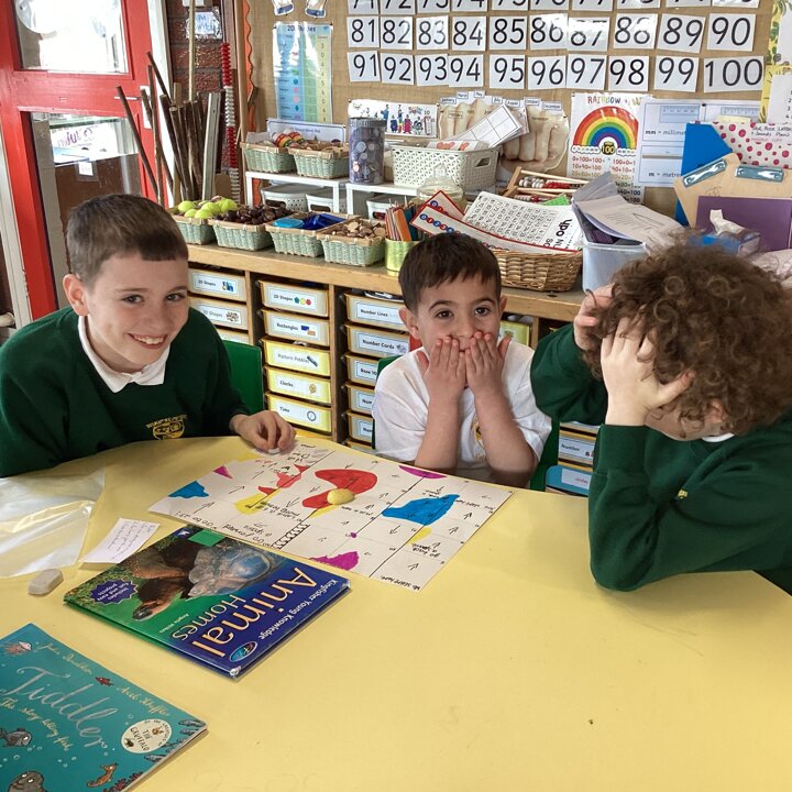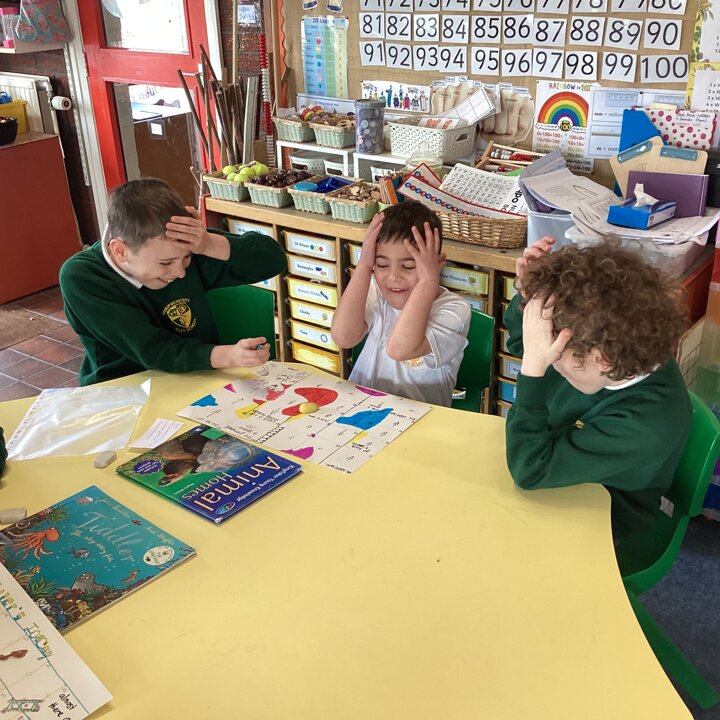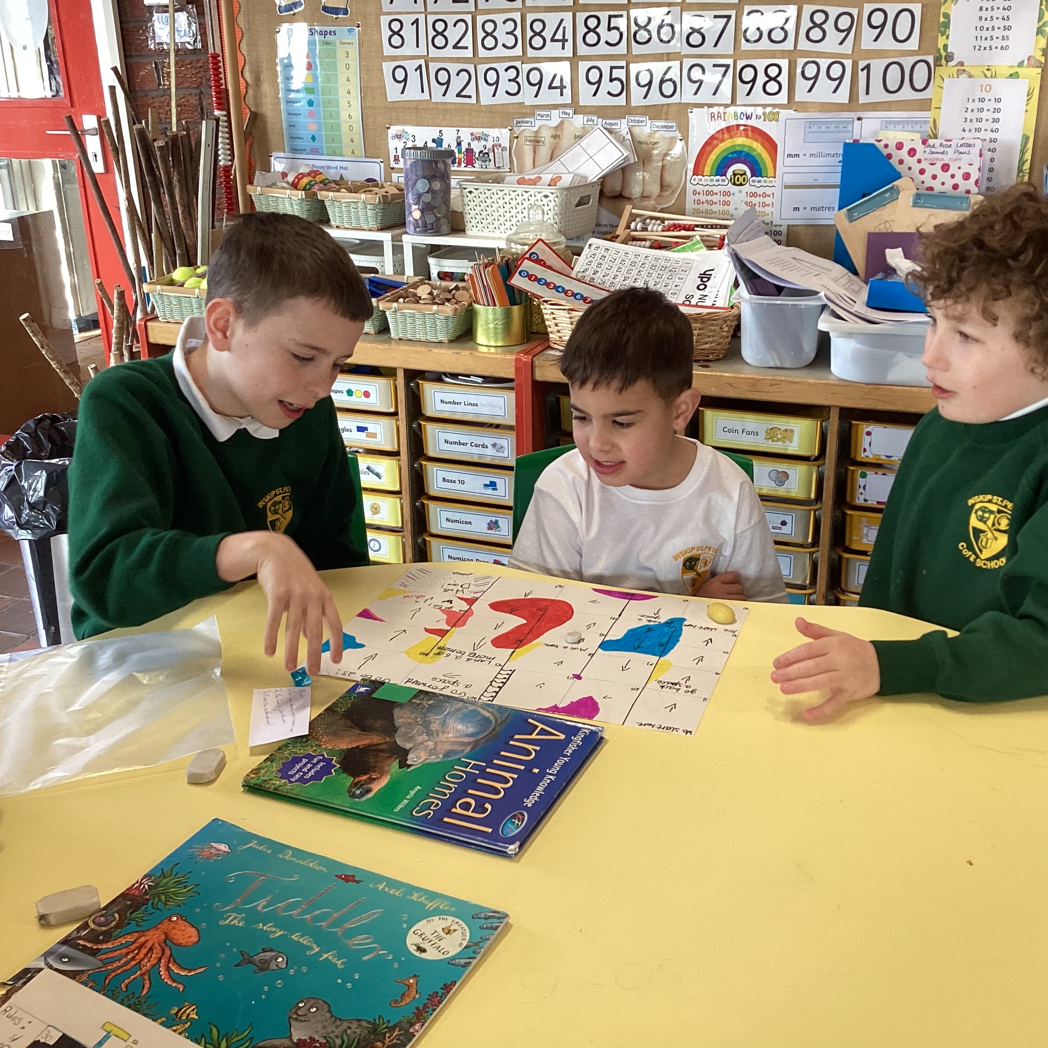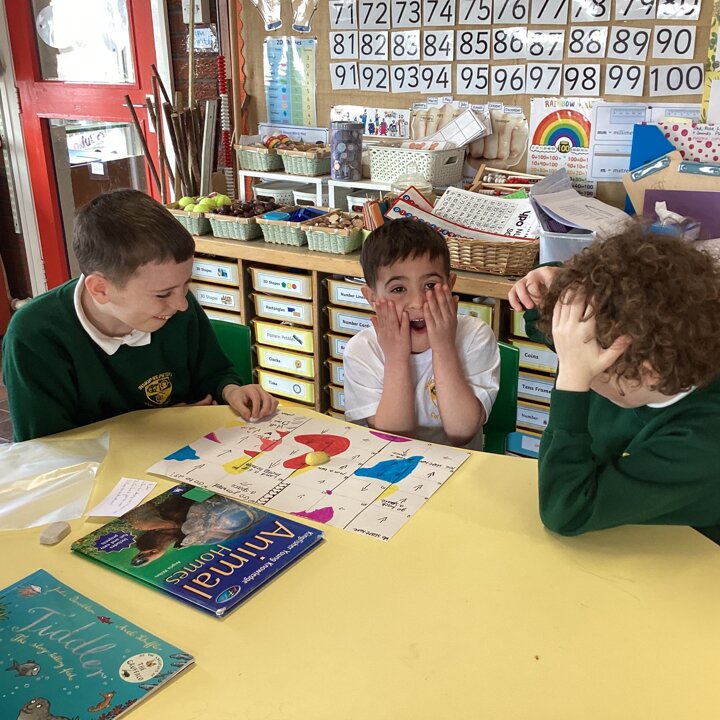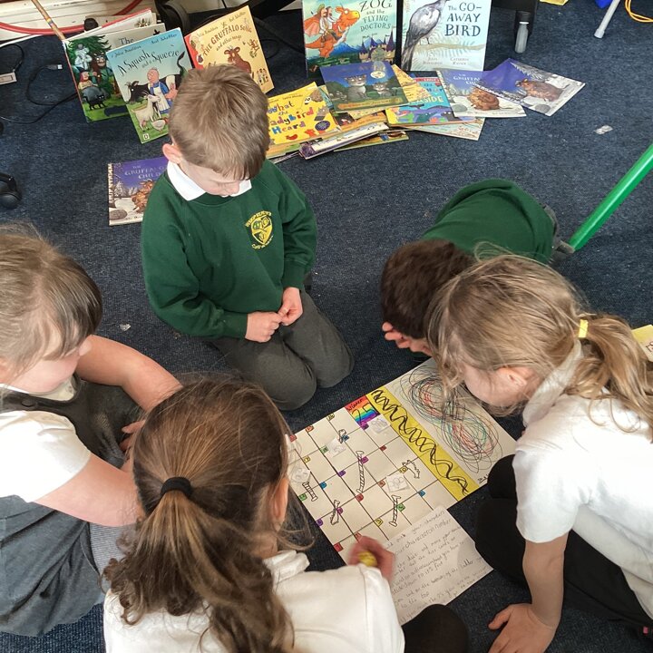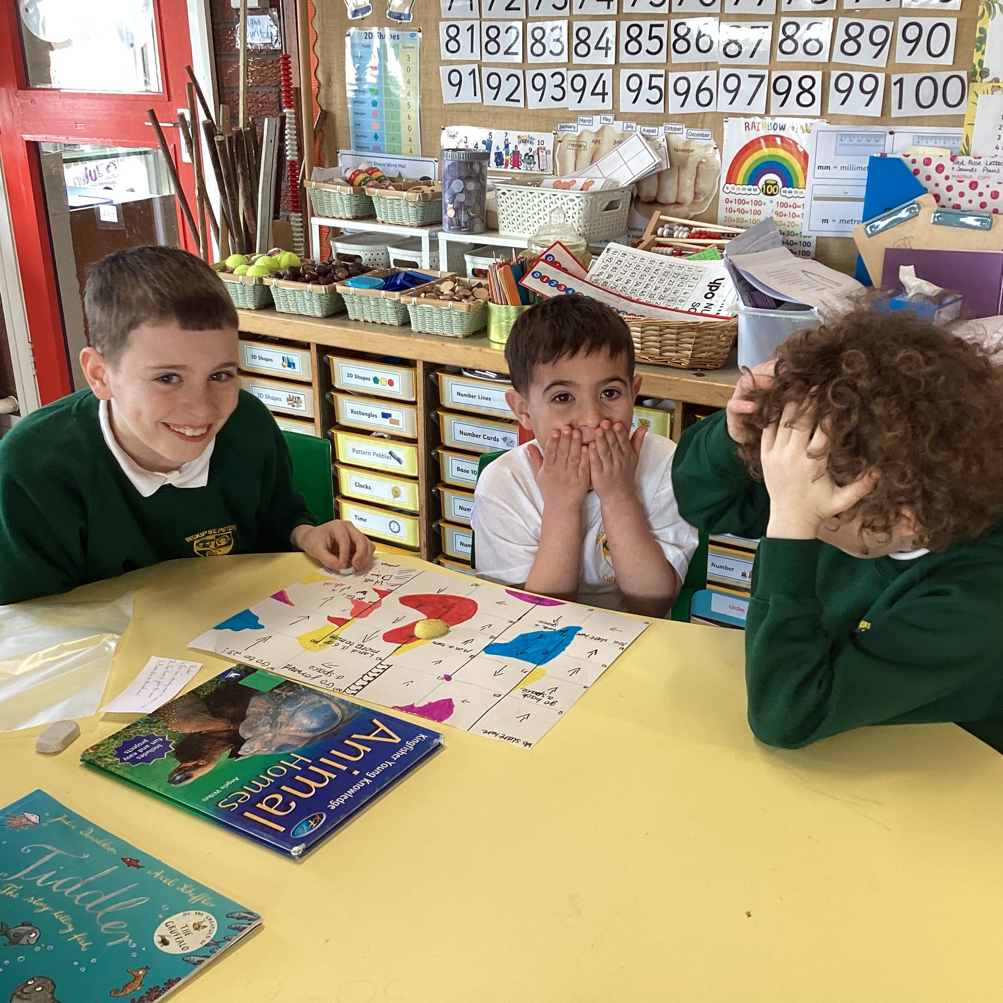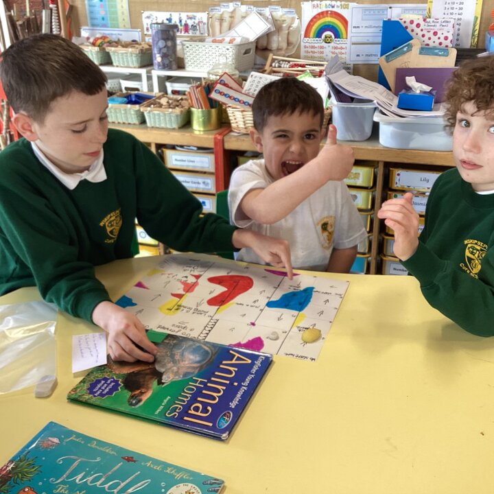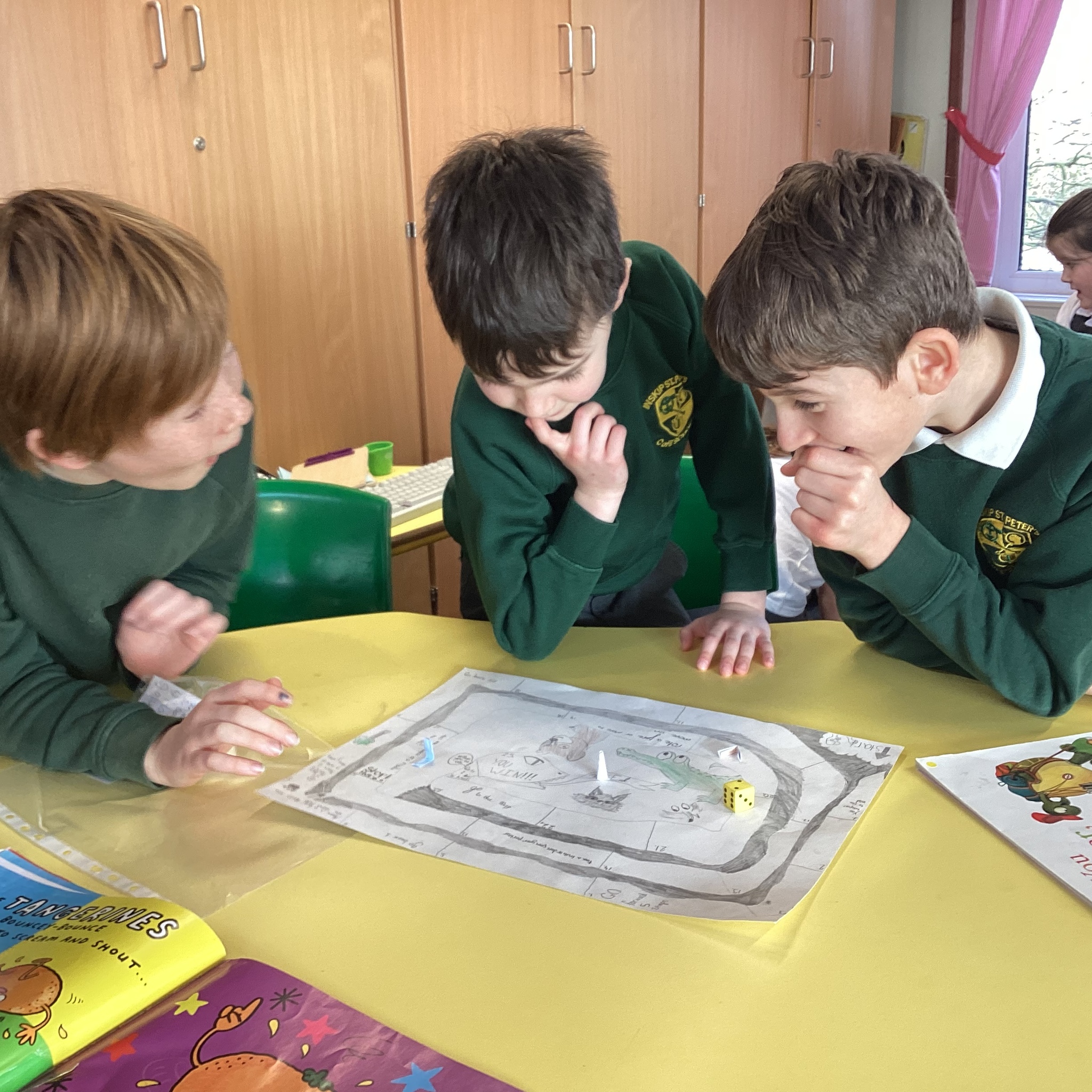 In the afternoon we had a big treat as Upper School joined us bringing us board games based on a book of their choice that they had created especially for us! Thank you Upper School you created some fantastic games, take a look at these photos to see how much Lower School enjoyed playing them …