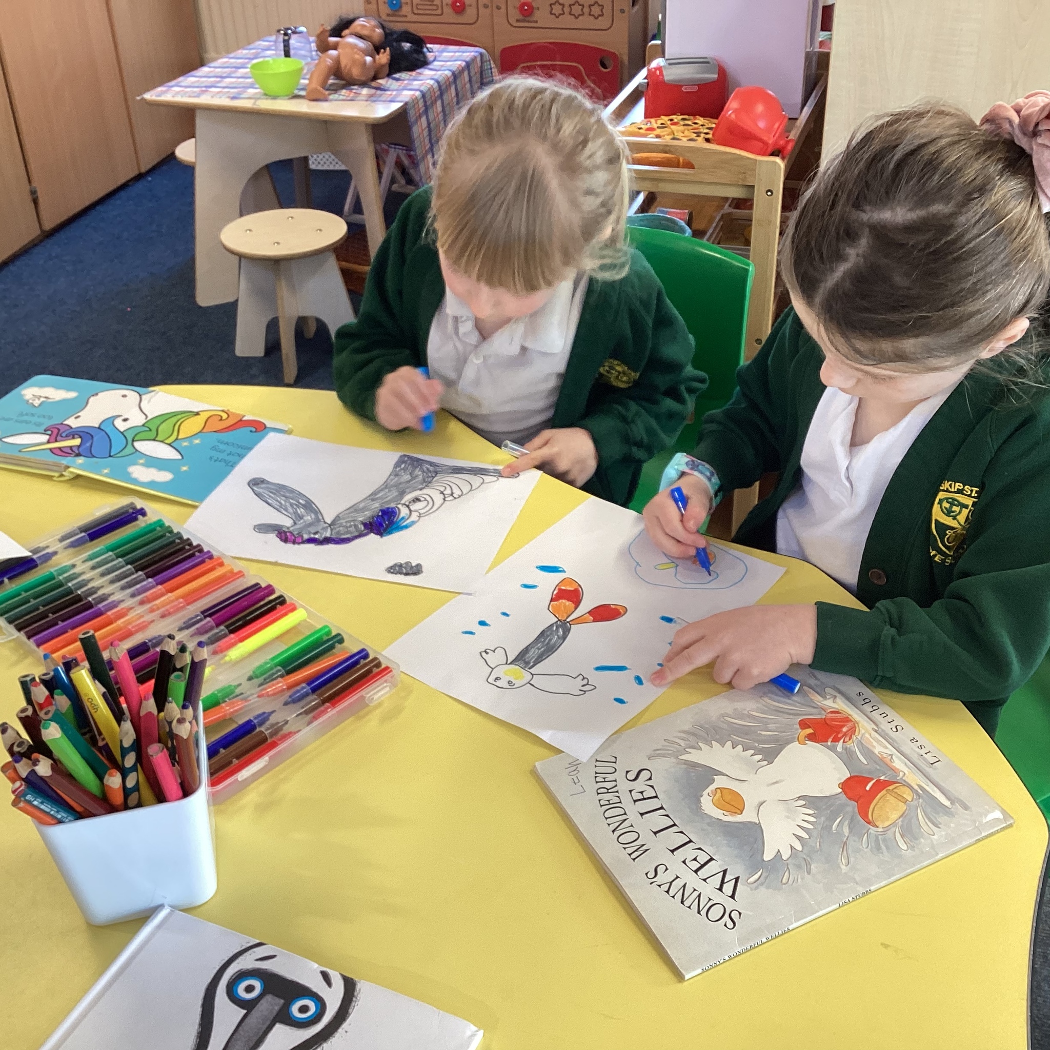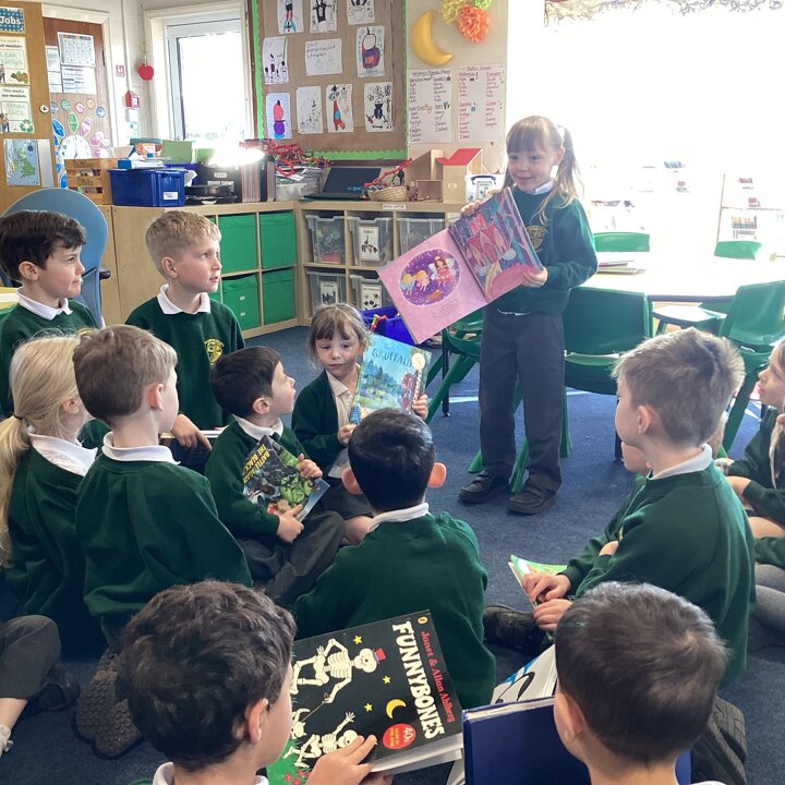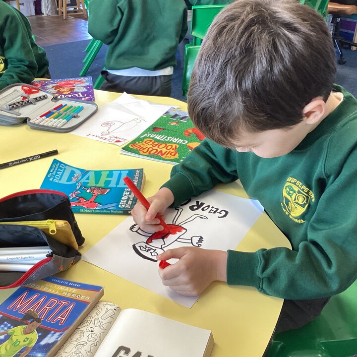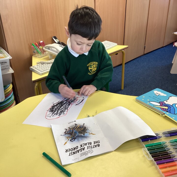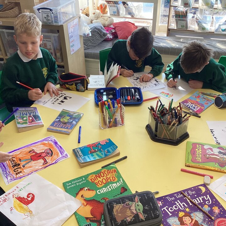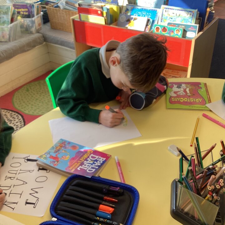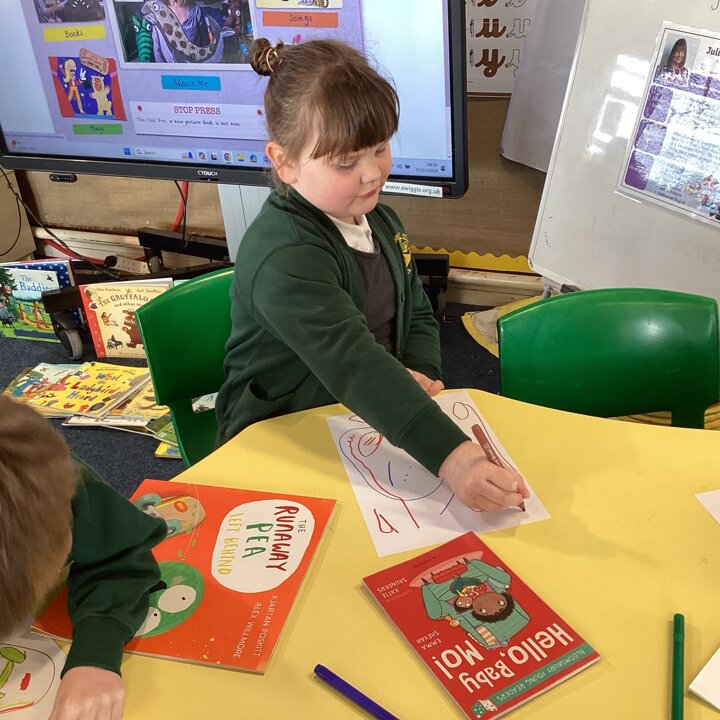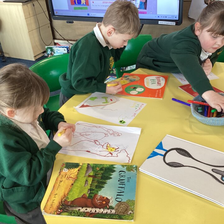We began our day by sharing our favourite books that we had brought from home with the whole class. After we’d shared them the children chose to either draw the front cover of their book or their favourite illustration or character from the story so that we could make a gallery of our favourite books.