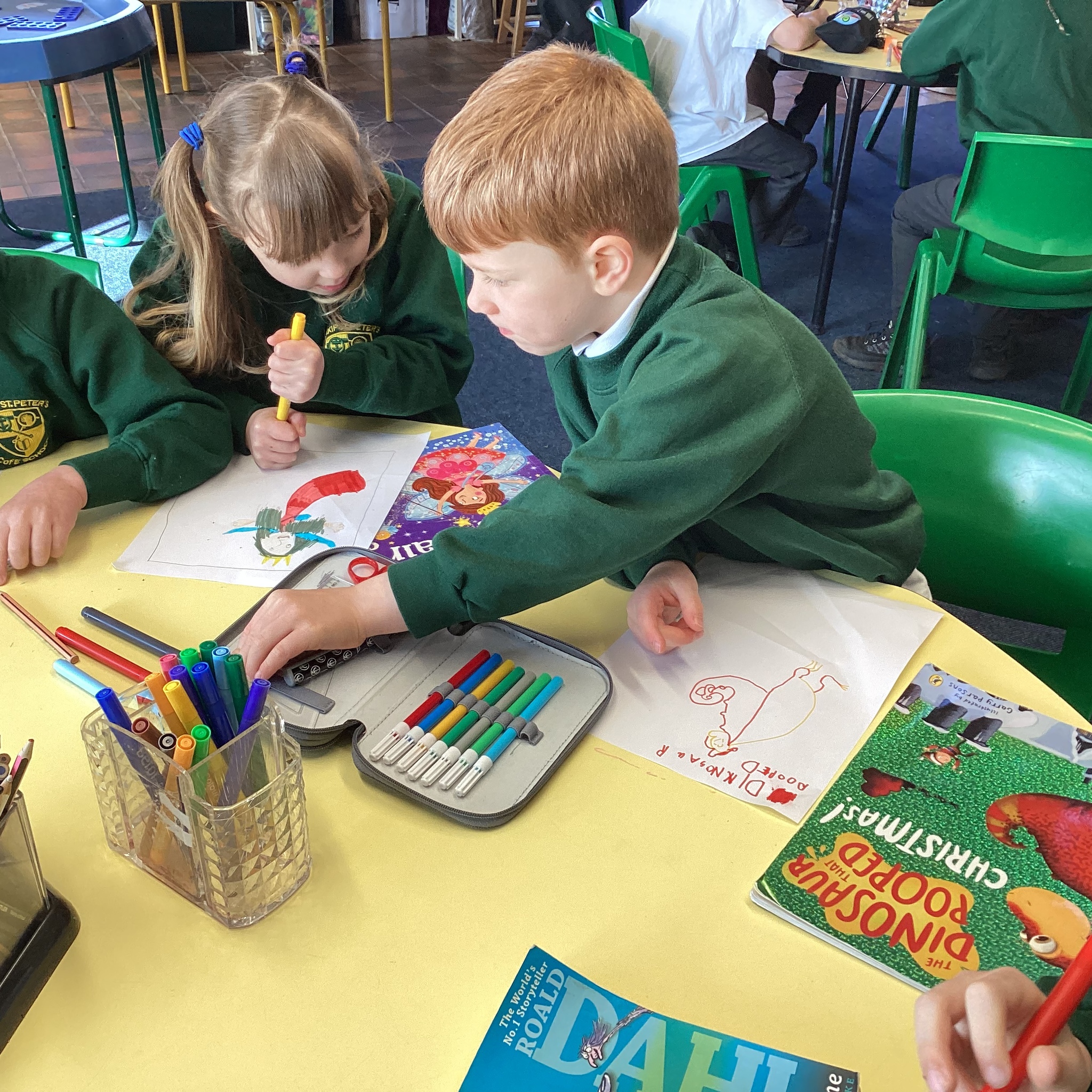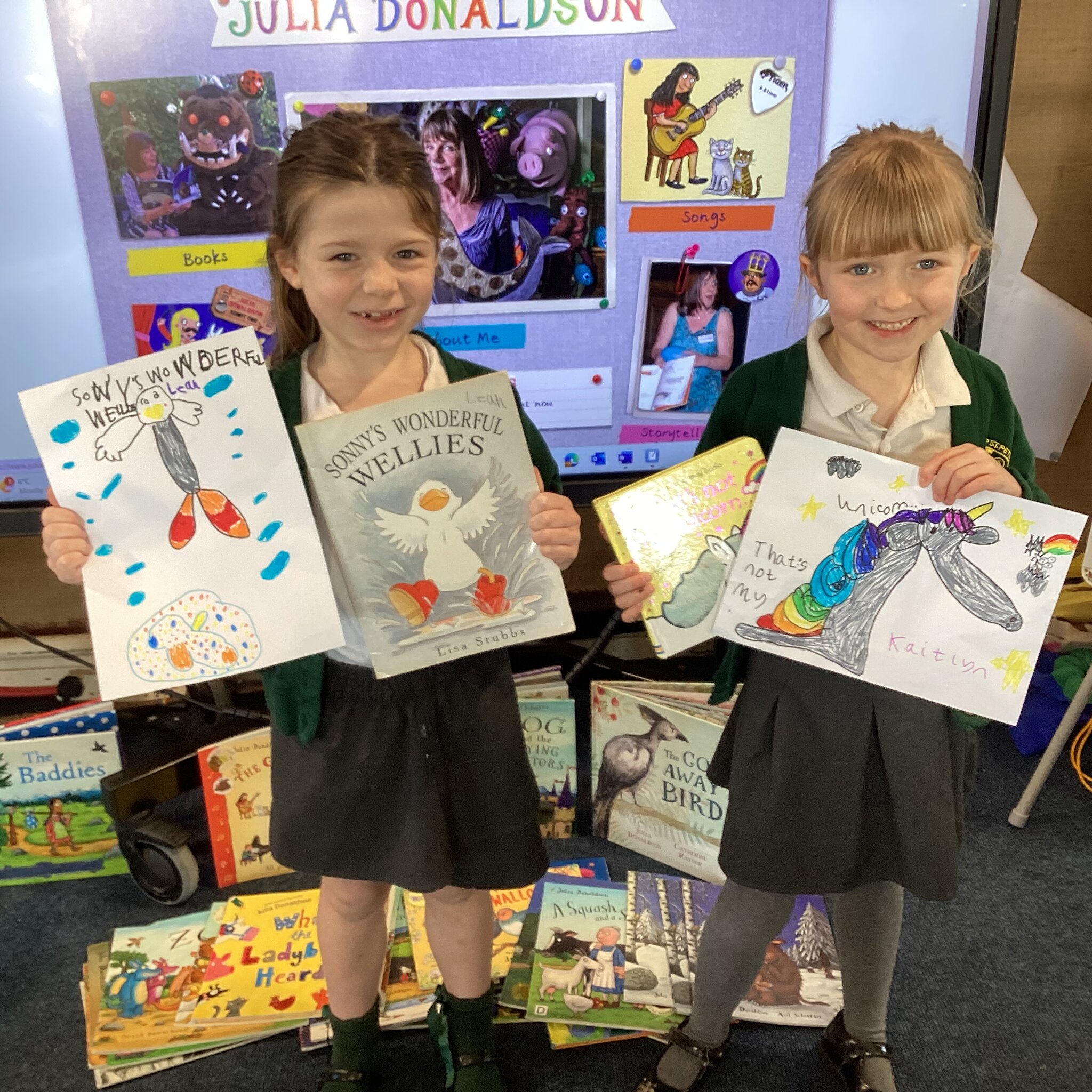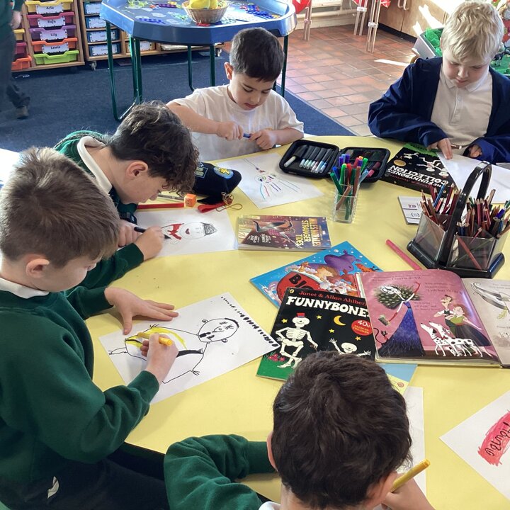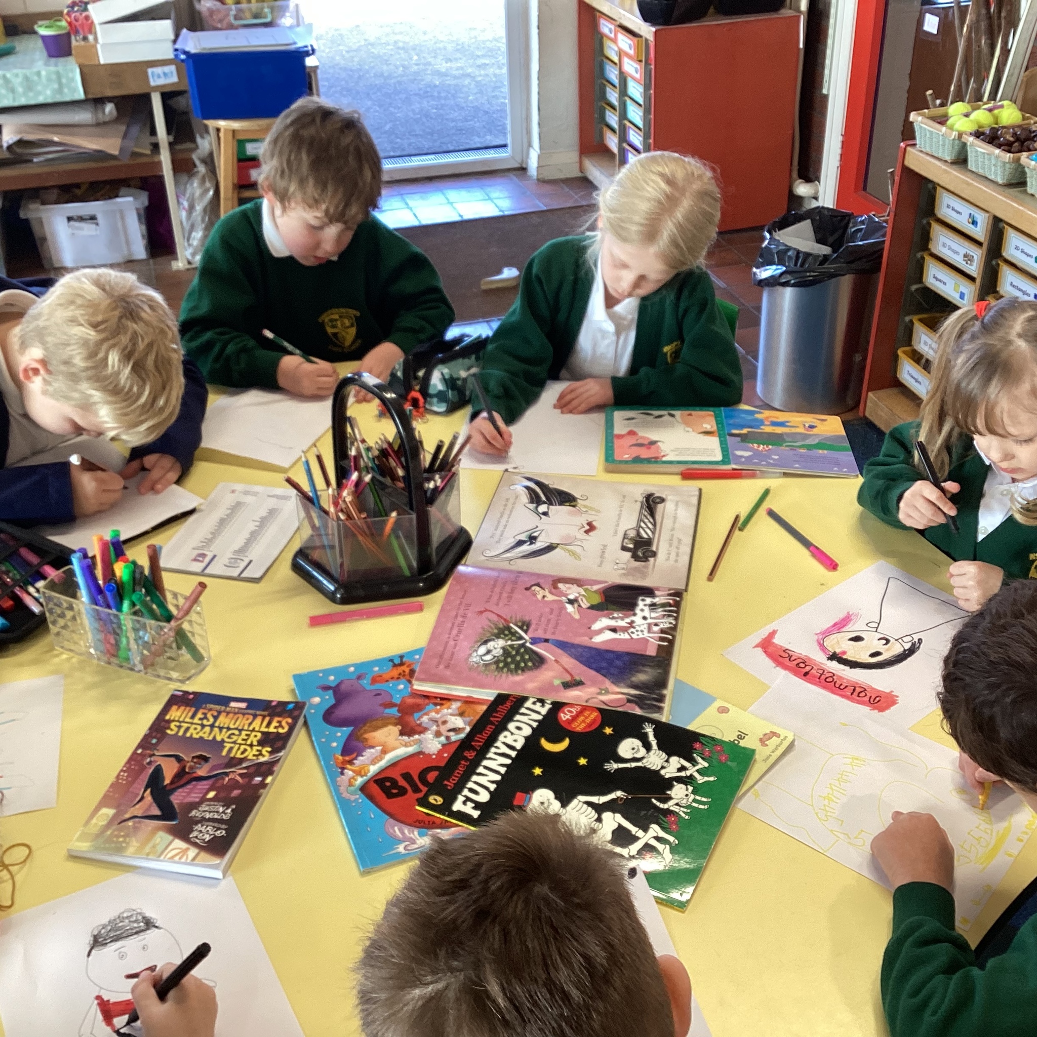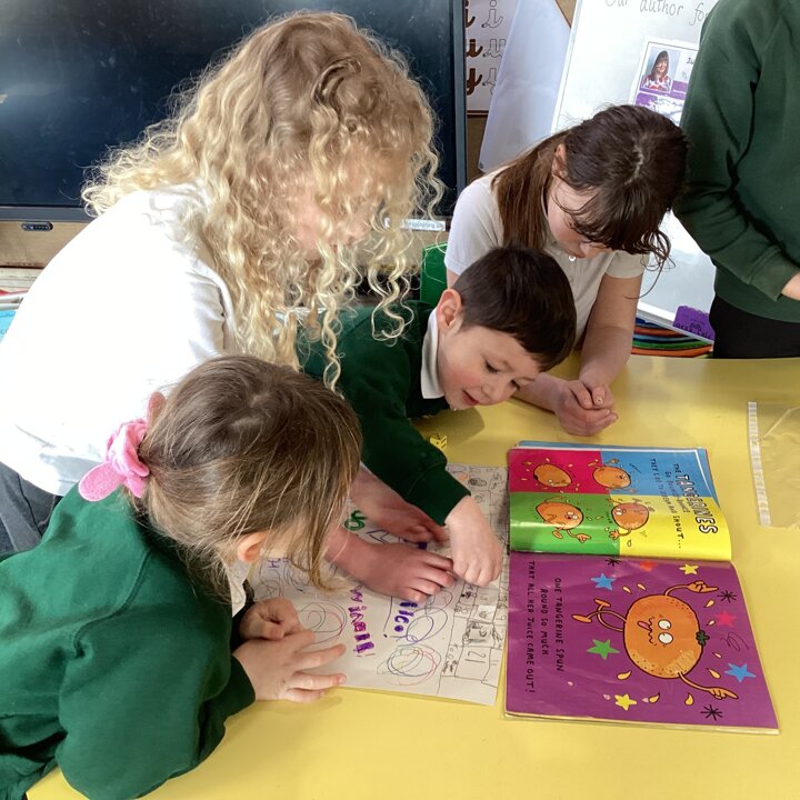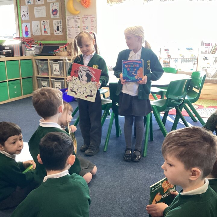 We began our day by sharing our favourite books that we had brought from home with the whole class. After we’d shared them the children chose to either draw the front cover of their book or their favourite illustration or character from the story so that we could make a gallery of our favourite books.