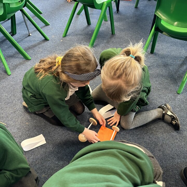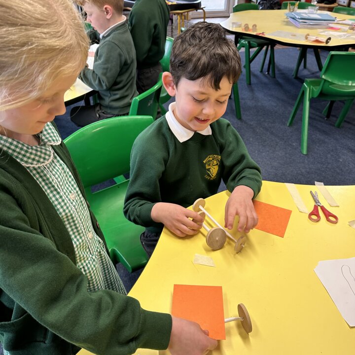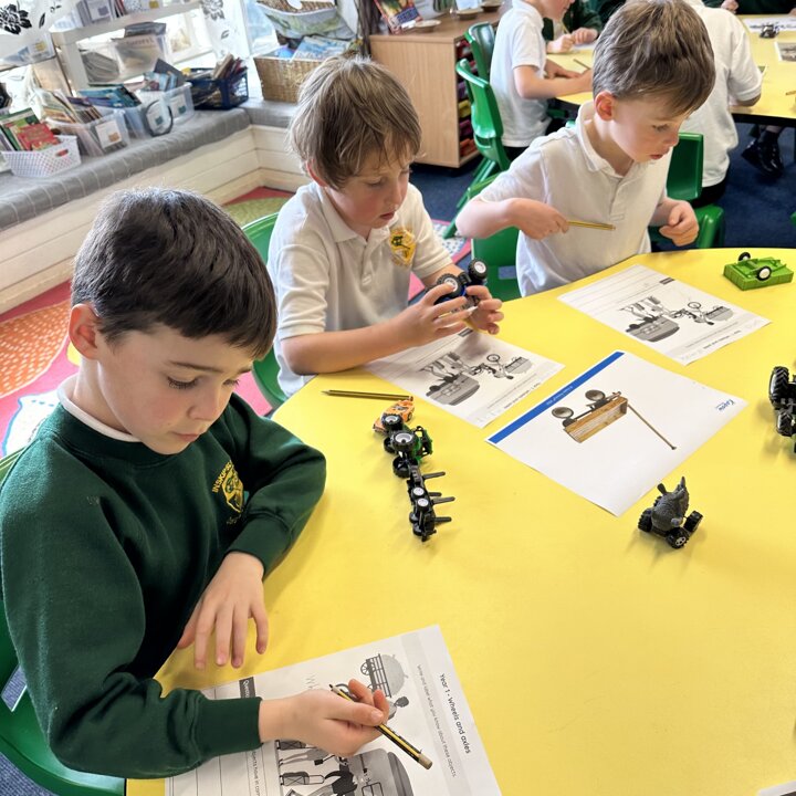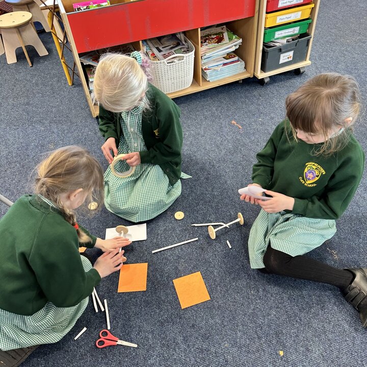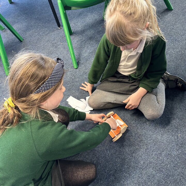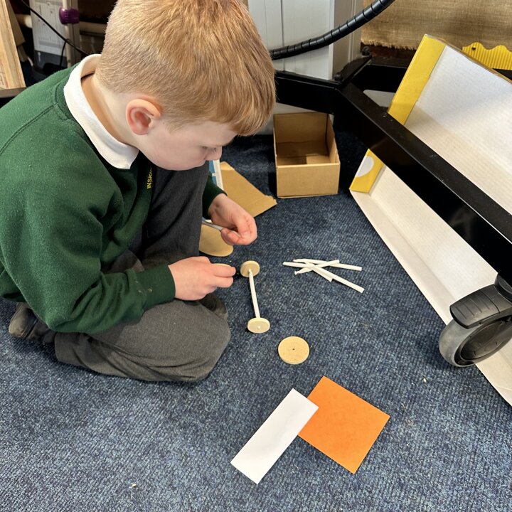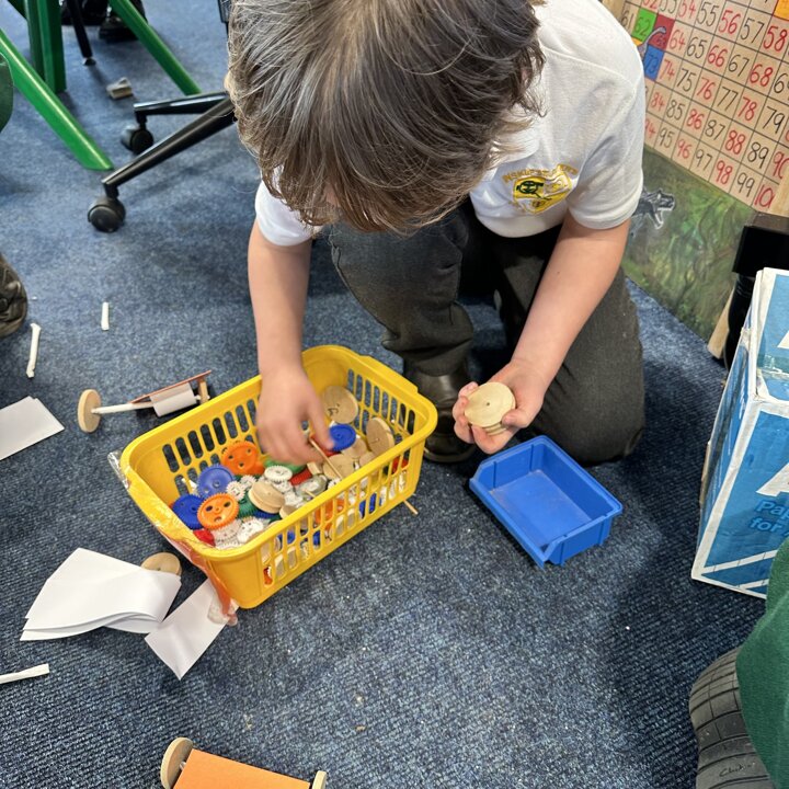 We began our design and technology project this week and in our first two sessions the children investigated wheels and axles. The children looked closely at wheels before having a go at attaching wheels to an axle and a basic chassis to deepen their understanding. In our next sessions the children will be making their own moving vehicles.