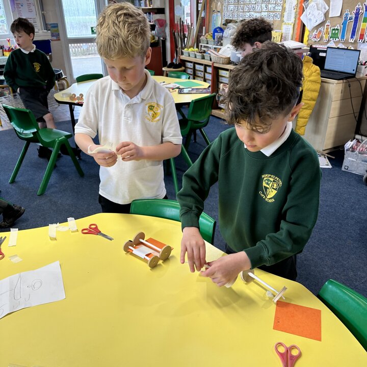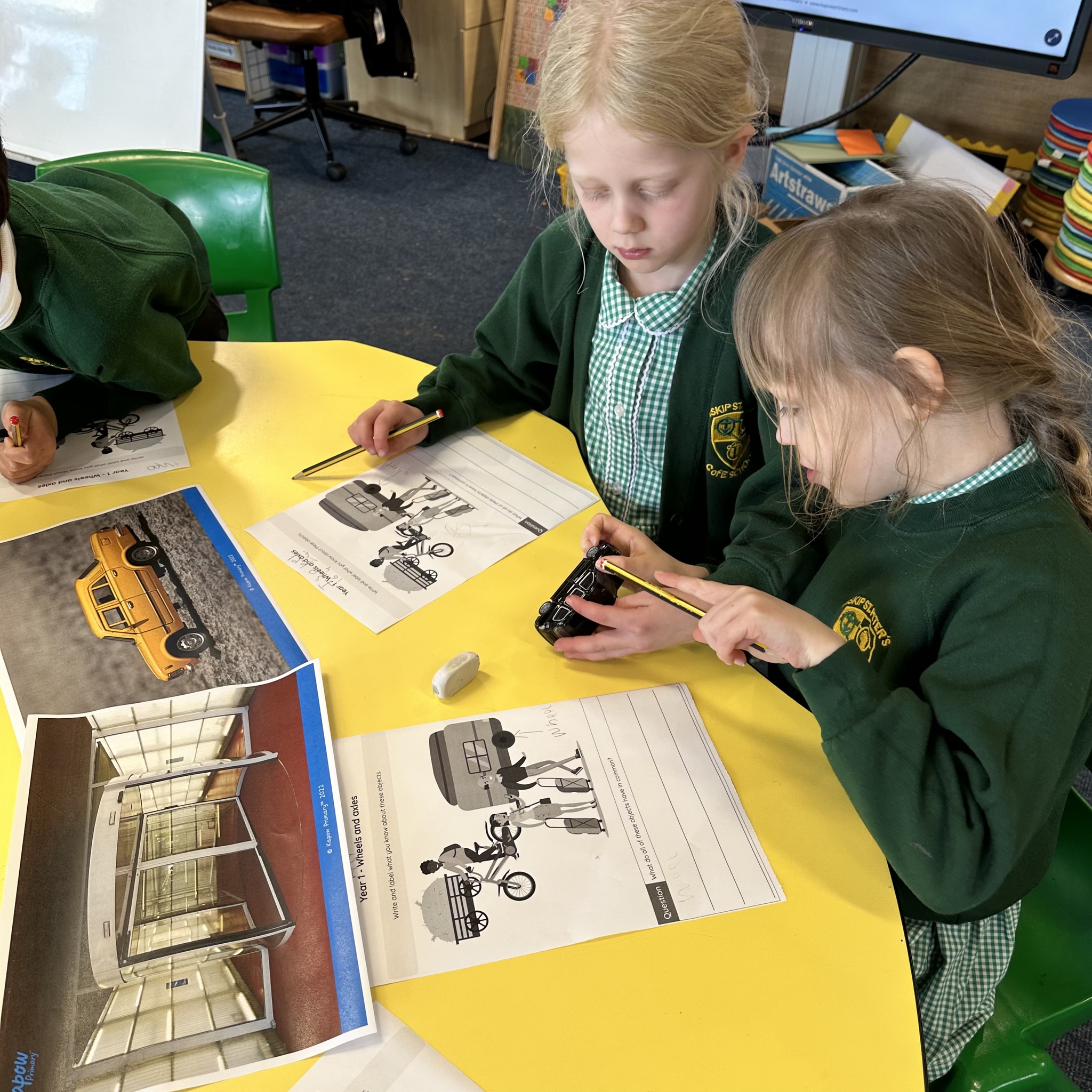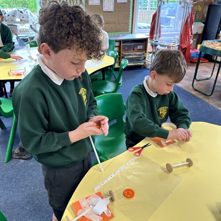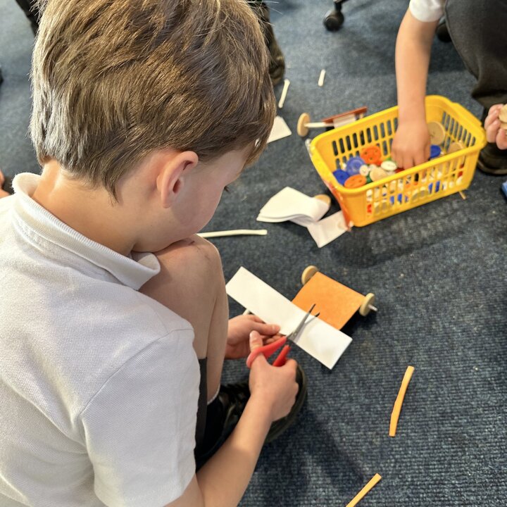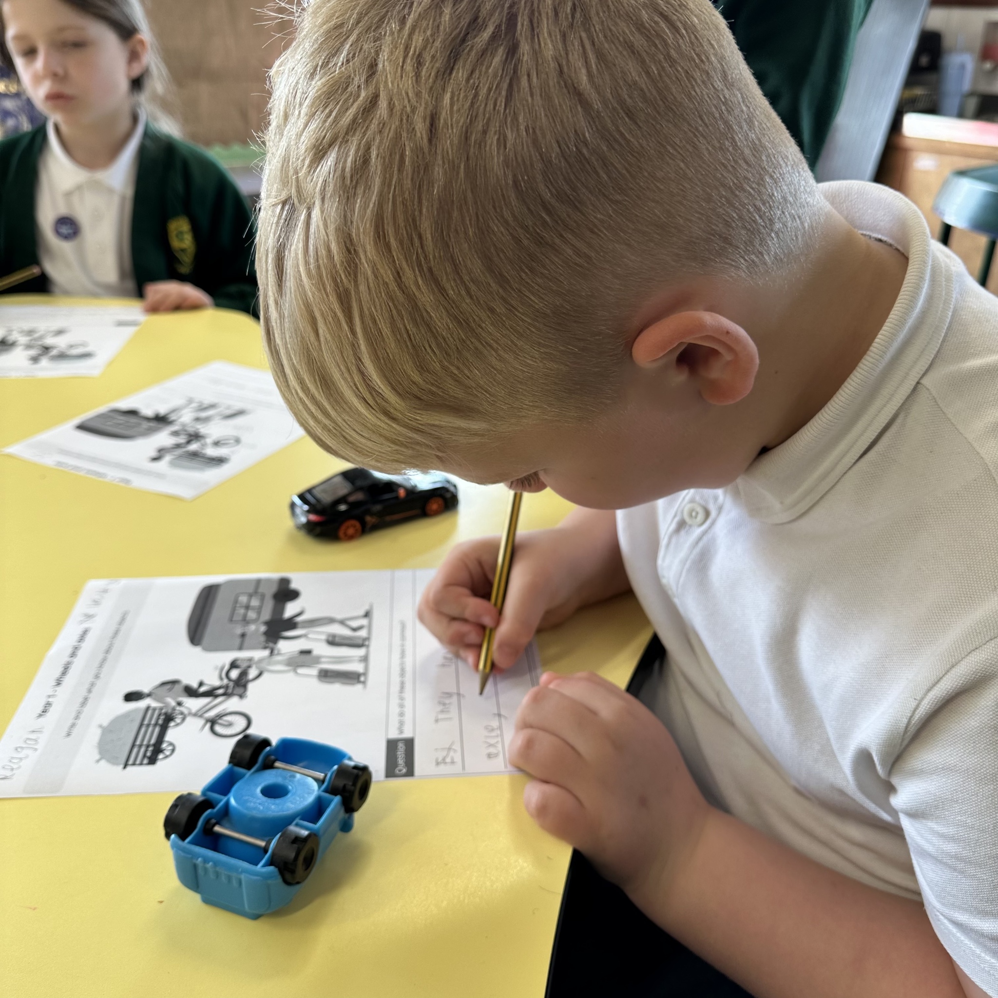 We began our design and technology project this week and in our first two sessions the children investigated wheels and axles. The children looked closely at wheels before having a go at attaching wheels to an axle and a basic chassis to deepen their understanding. In our next sessions the children will be making their own moving vehicles.