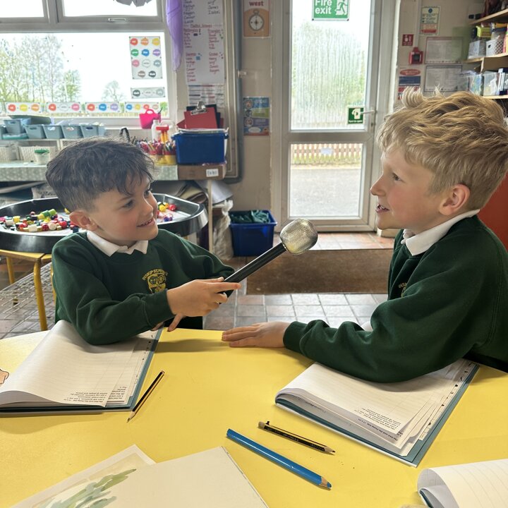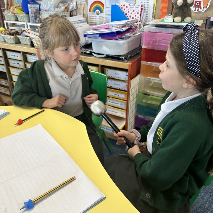 We have been studying the poem “The Owl and The Pussy-Cat” written by Edward Lear. The children have been learning the poem and they have done lots of great writing inspired by the poem. Take a look at these photos where the Year 2 children were taking the roles of an interviewer interviewing the Owl and the Pussy-Cat. The children created and asked the characters from the poem questions and then the characters answered. The children then wrote down their questions and answers.