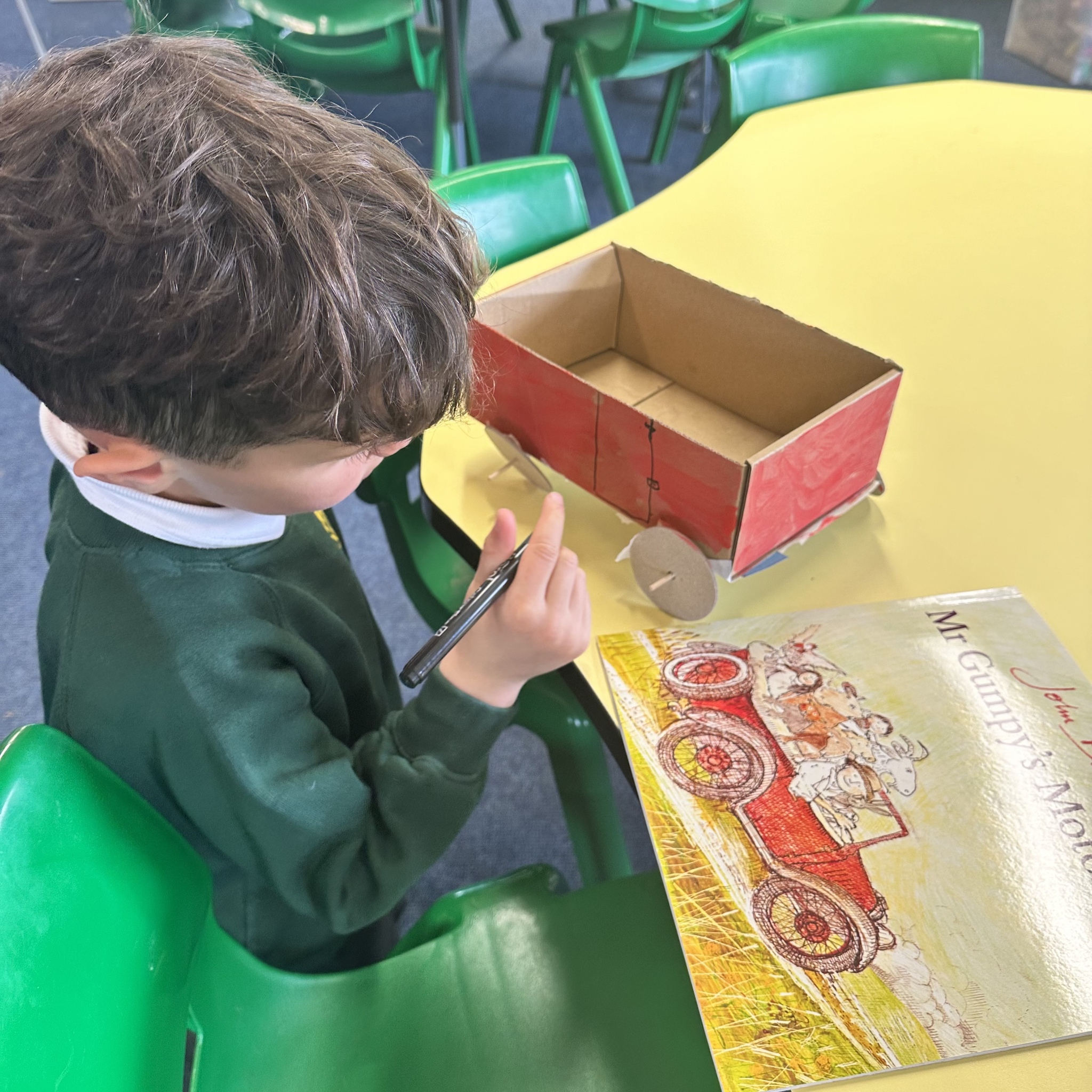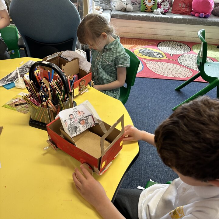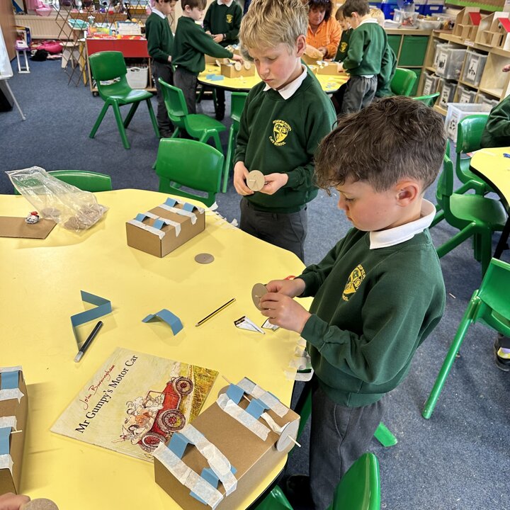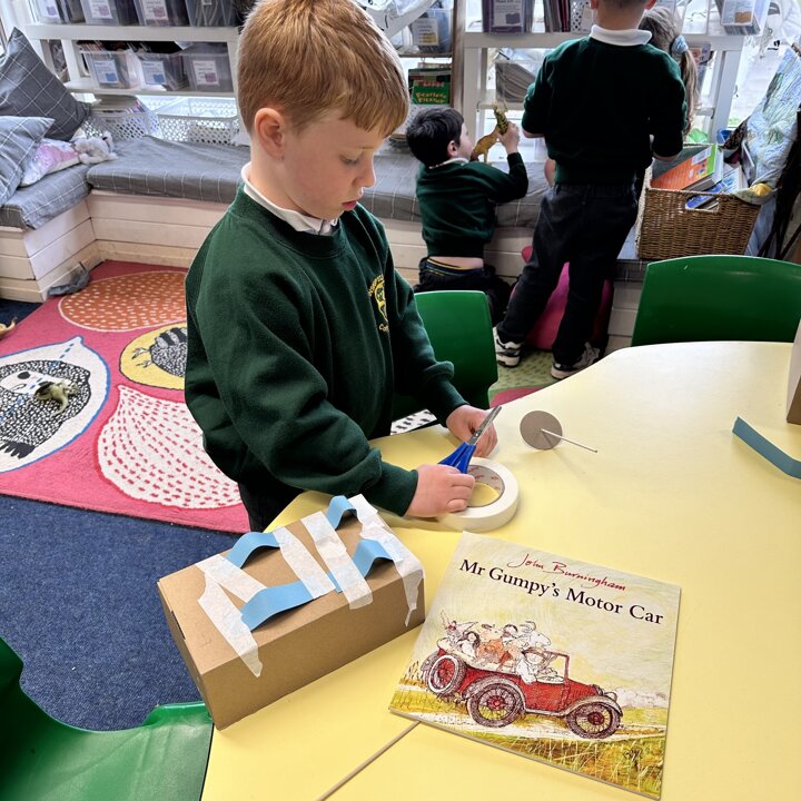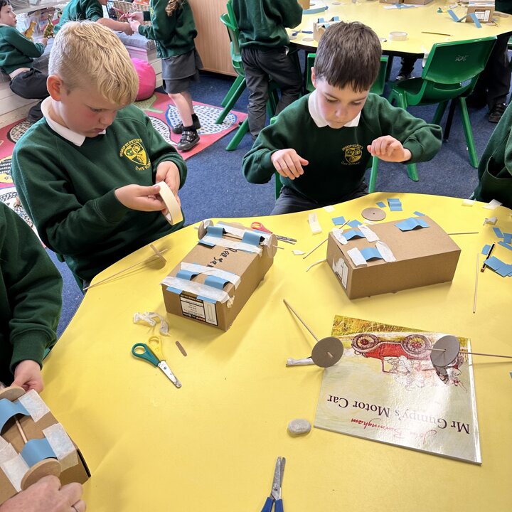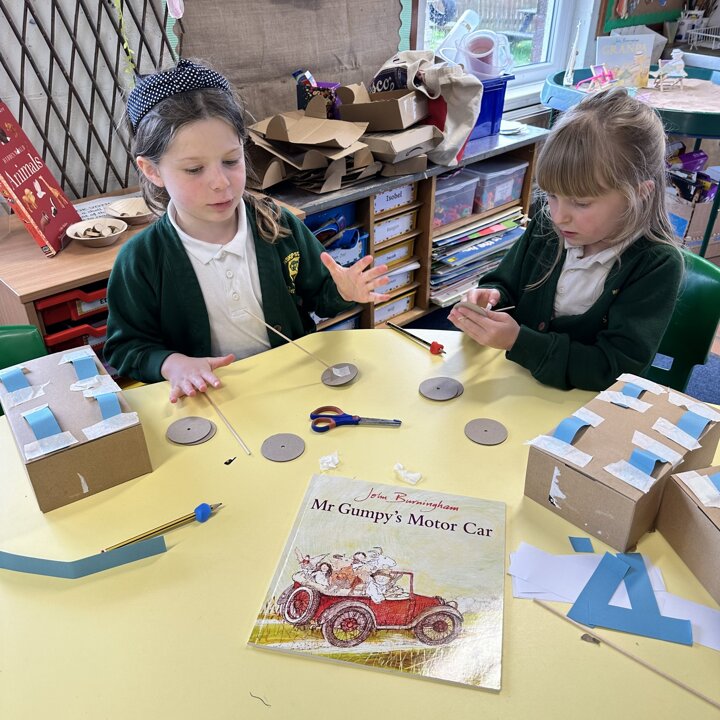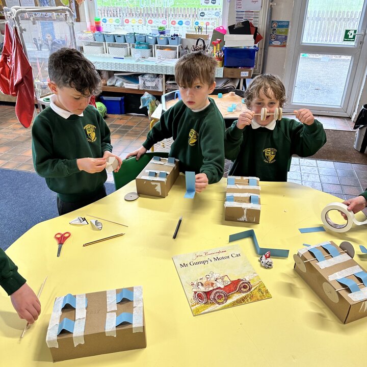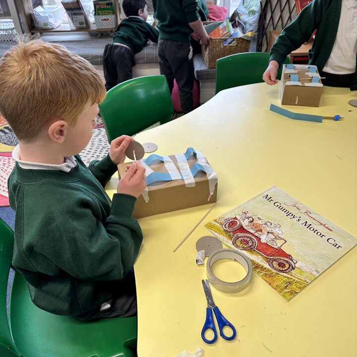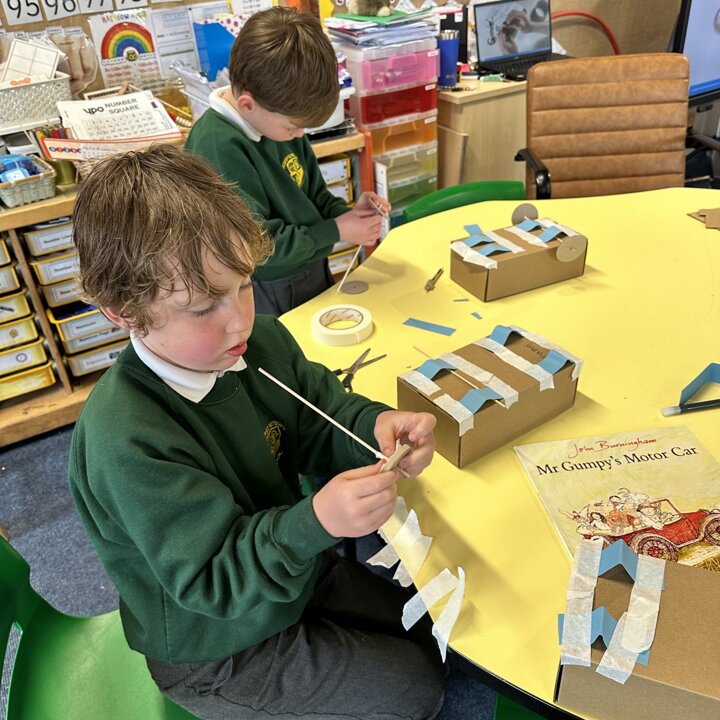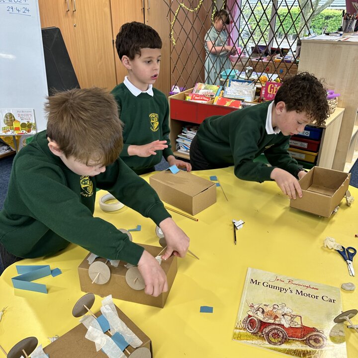 Over a number of lessons the children have designed and built some fantastic vehicles modelled on the car in the story ‘Mr Gumpy’s Motor Car’ by John Burningham.