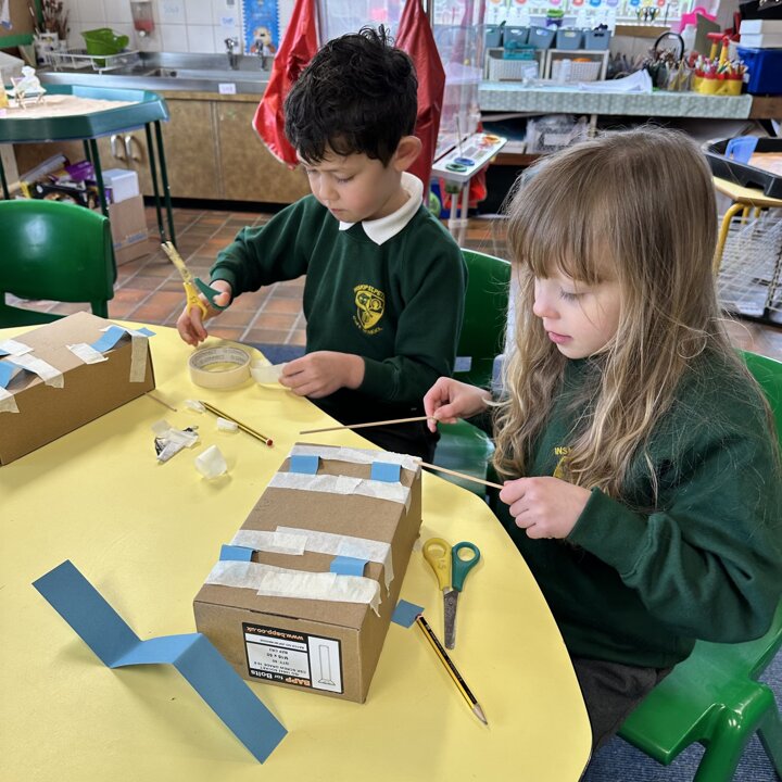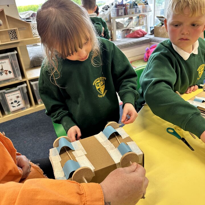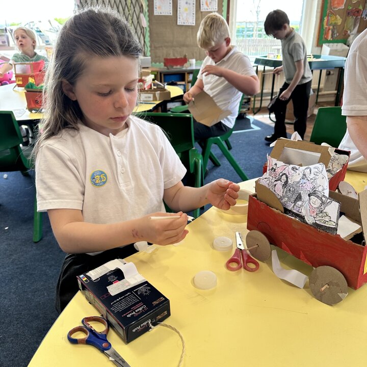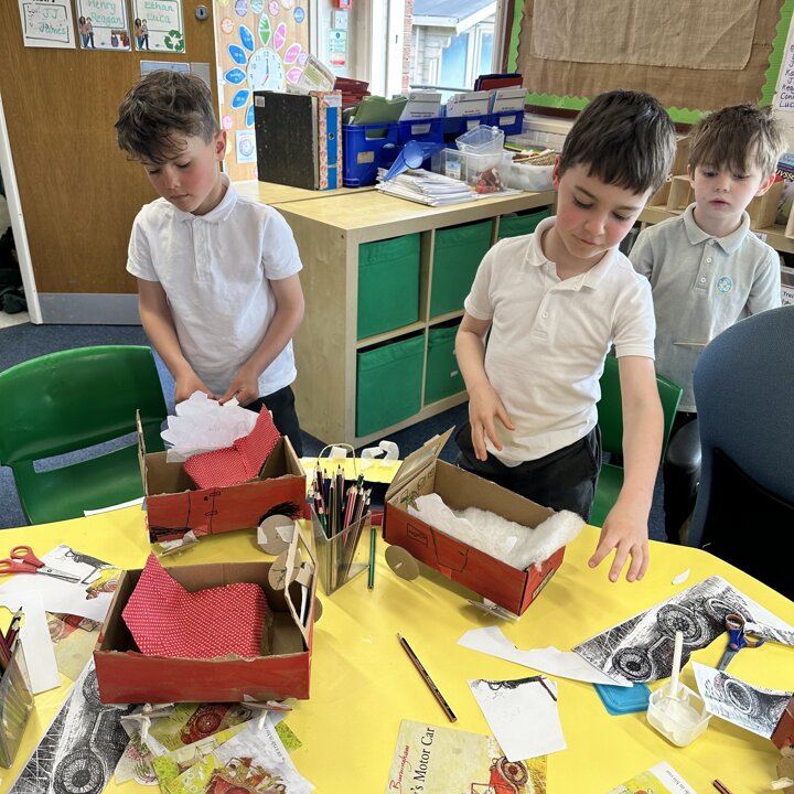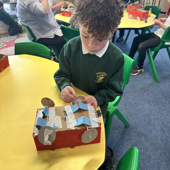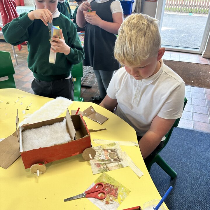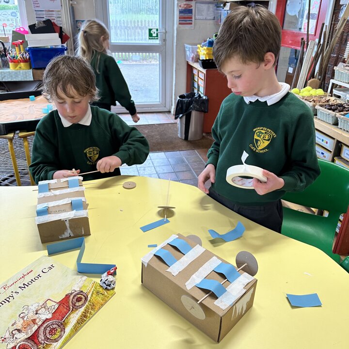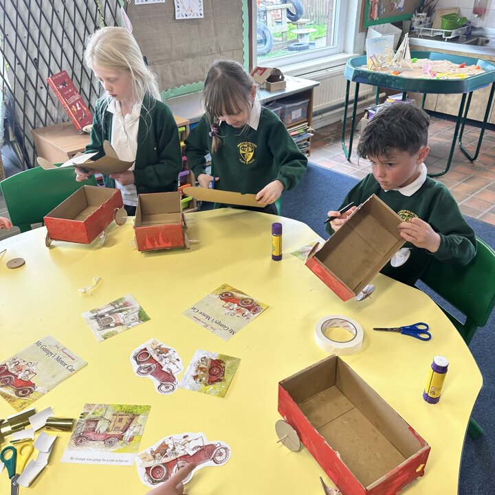 Over a number of lessons the children have designed and built some fantastic vehicles modelled on the car in the story ‘Mr Gumpy’s Motor Car’ by John Burningham.