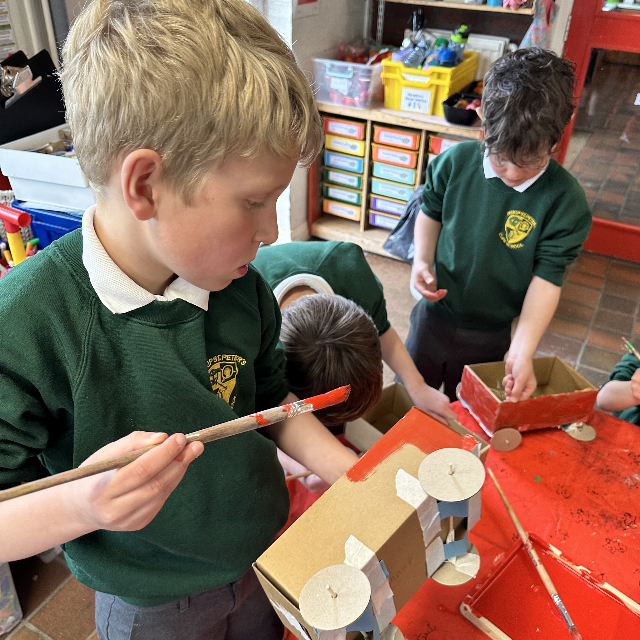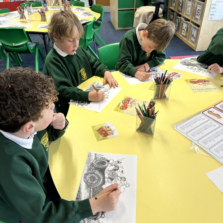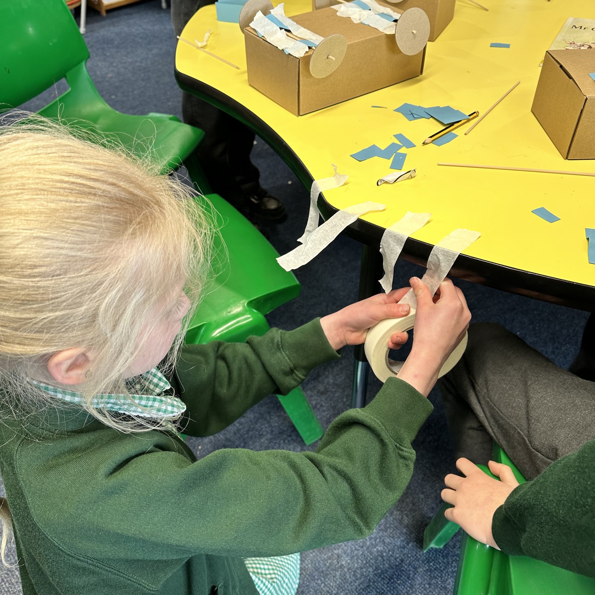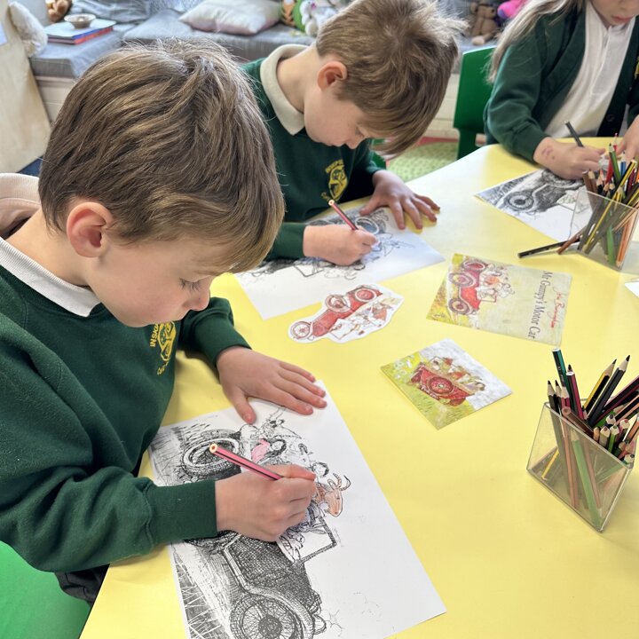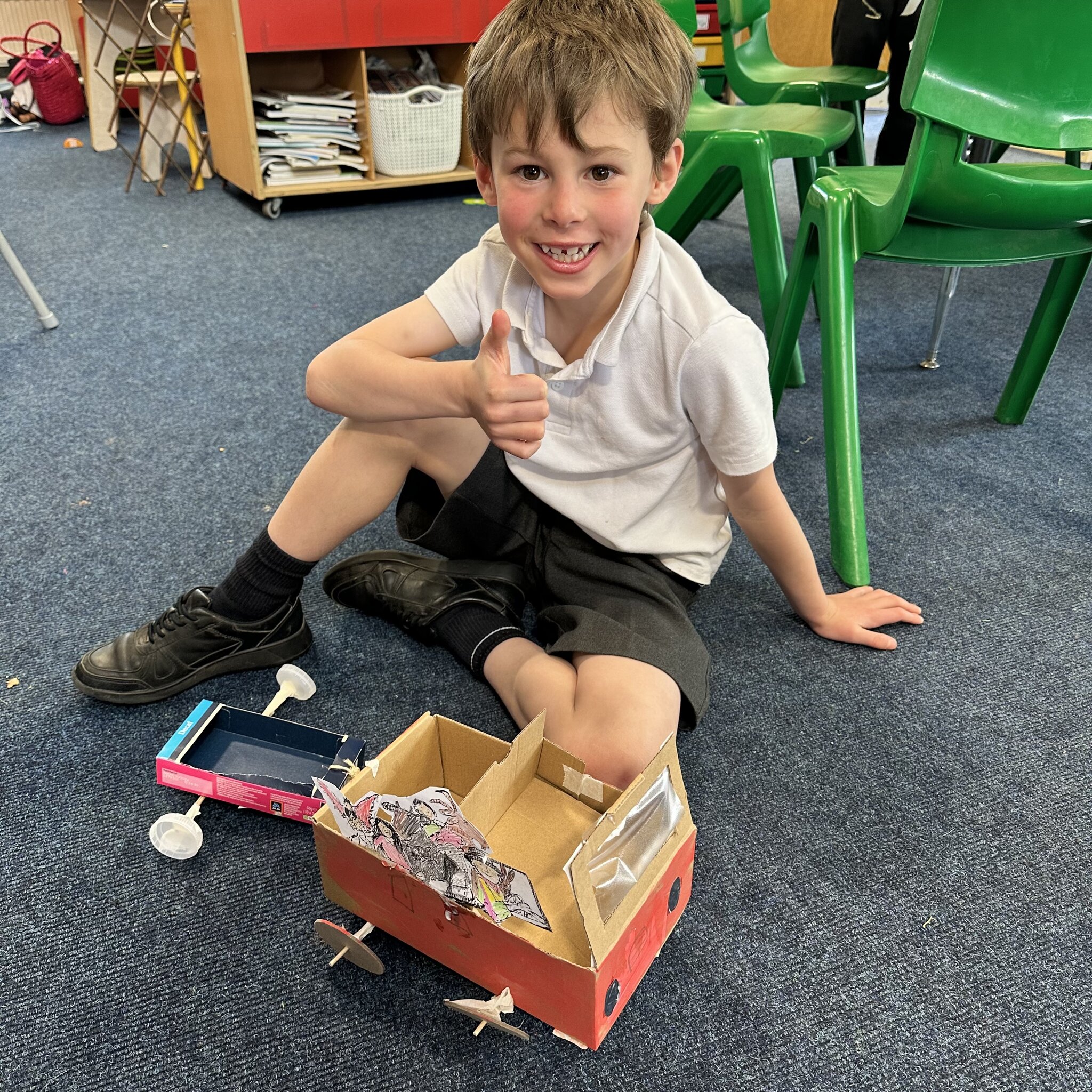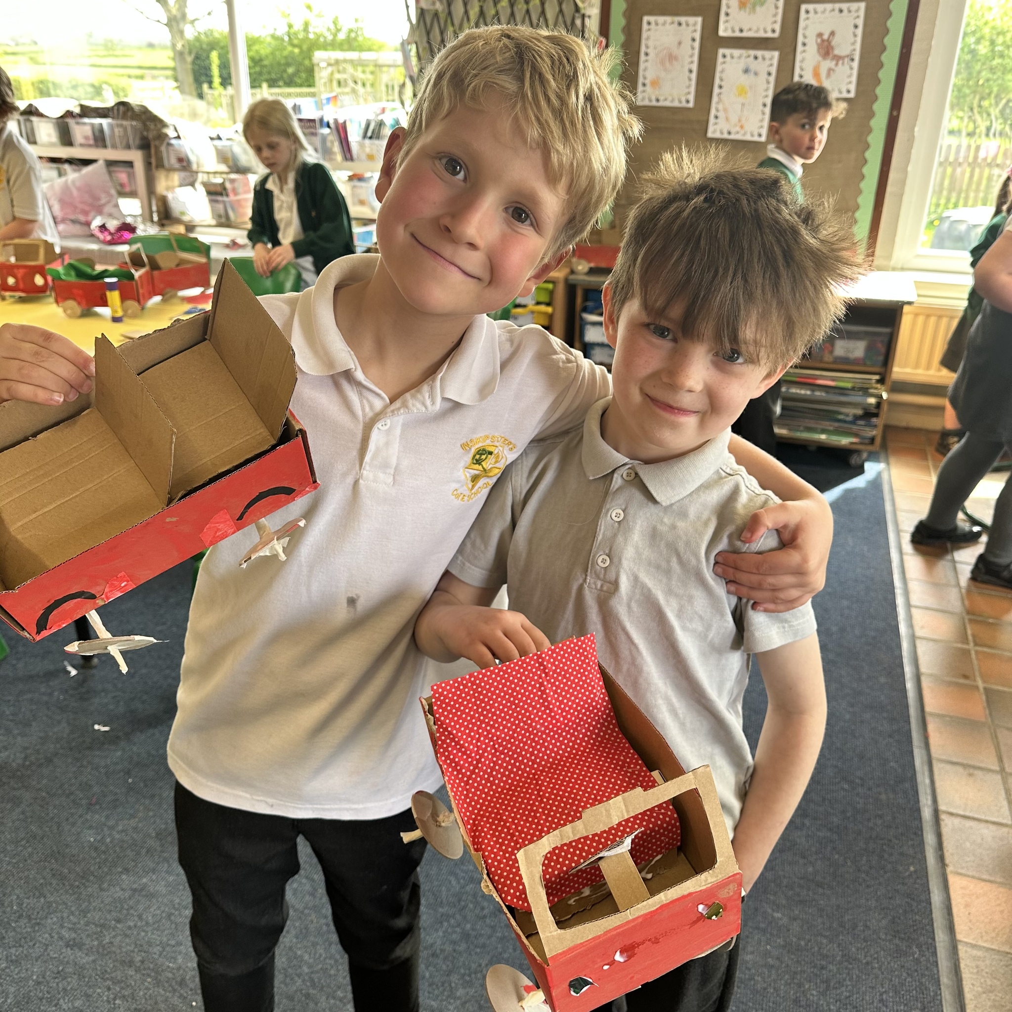 Over a number of lessons the children have designed and built some fantastic vehicles modelled on the car in the story ‘Mr Gumpy’s Motor Car’ by John Burningham.