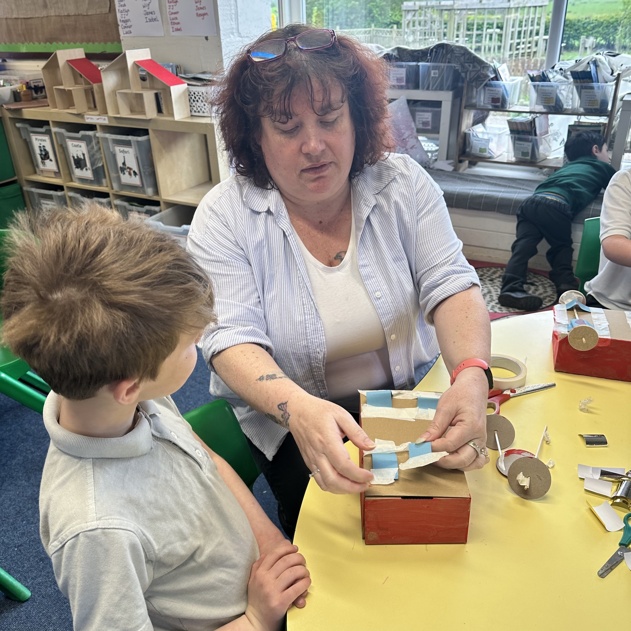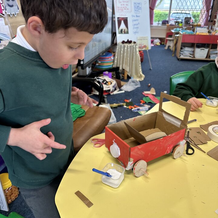 They have learnt so many new skills which they practised again and again as some decided to extend their original designs and build trailers and caravans for their cars to tow! We have also read the story ‘Mr Gumpy’s Outing’ by John Burningham in which they travel by boat. See the next blog post to see the learning that happened when the children made boats that fit into the trailers they made so that their cars could tow the boats to the water!