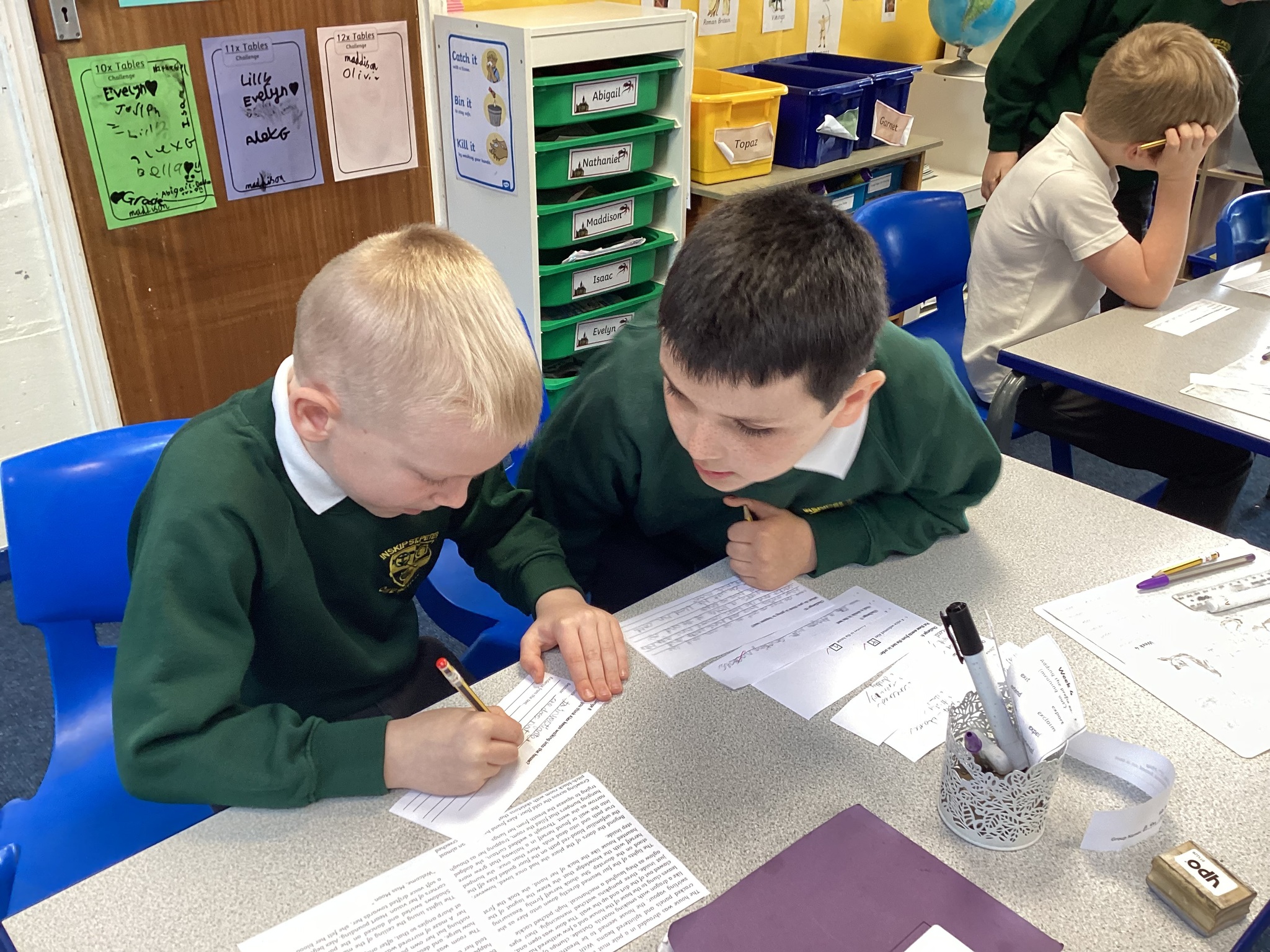 In our English, we have been thinking about texts and writing for a purpose. Our first purpose is to entertain with a story. Our second purpose was to build fear and suspense as our stories were horror! To help us with that, we worked together to analyse a horror description. Children worked in pairs to find linguistic features such as adjectives, adverbials, similes and more. They wrote their own responses to the text.
