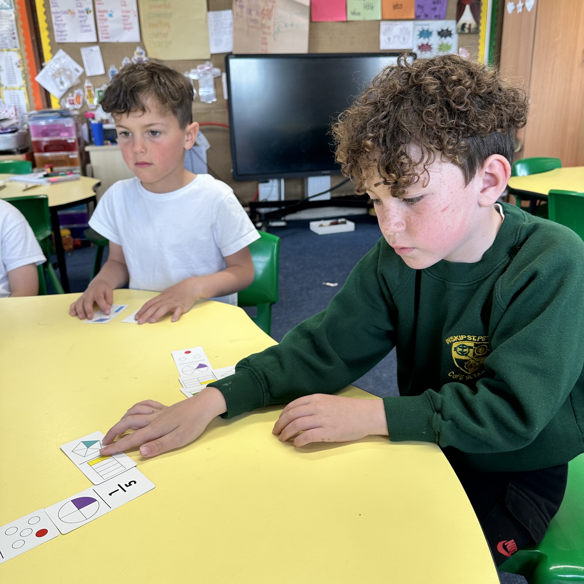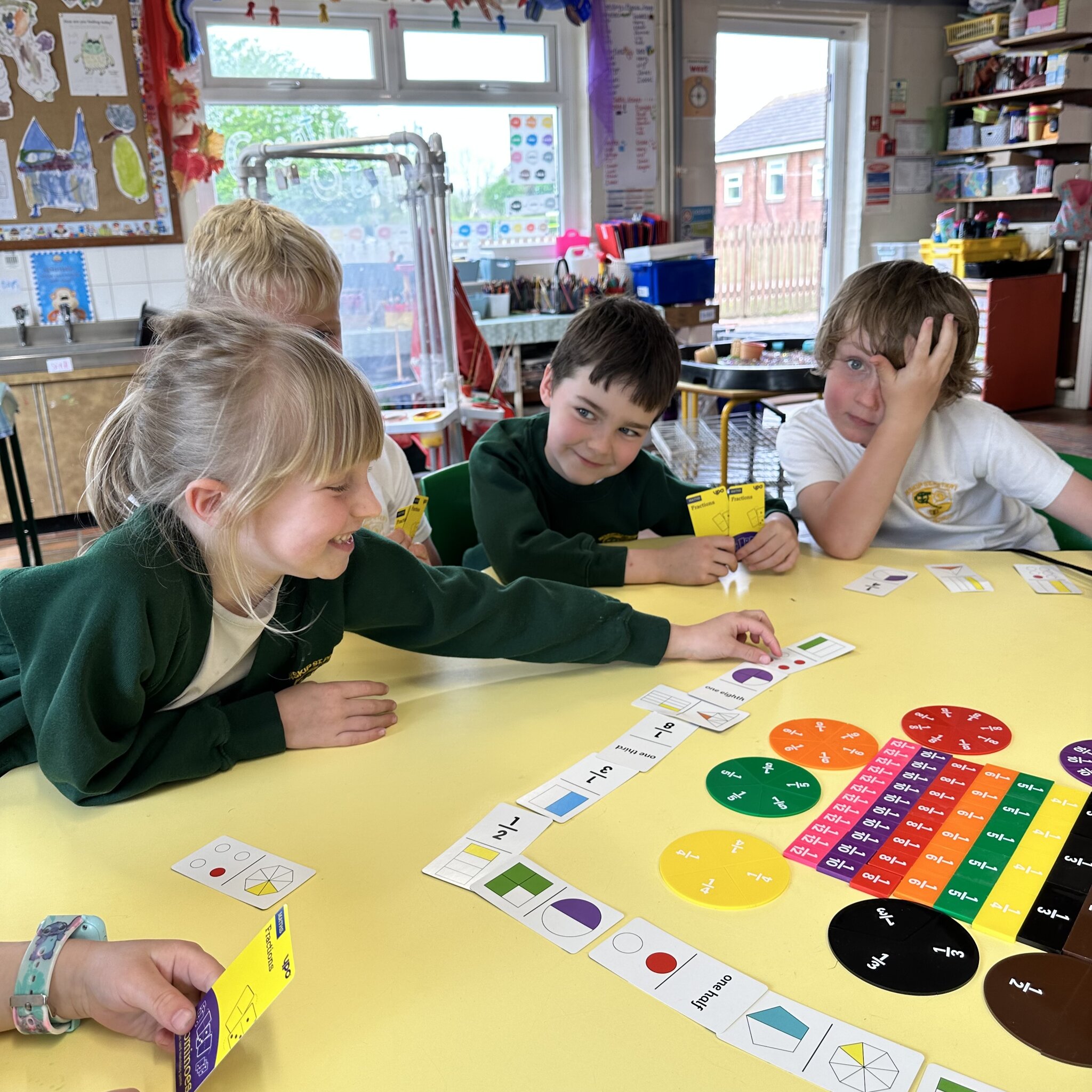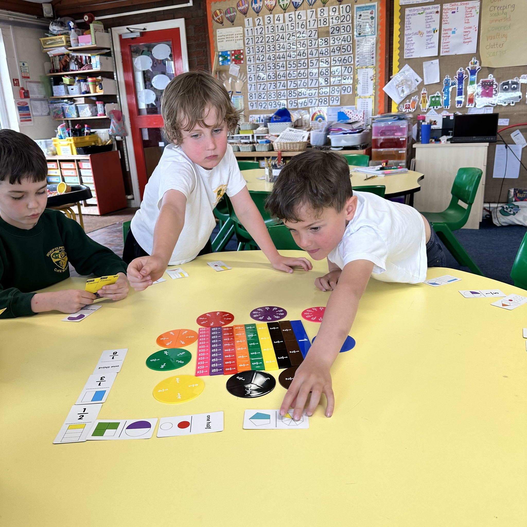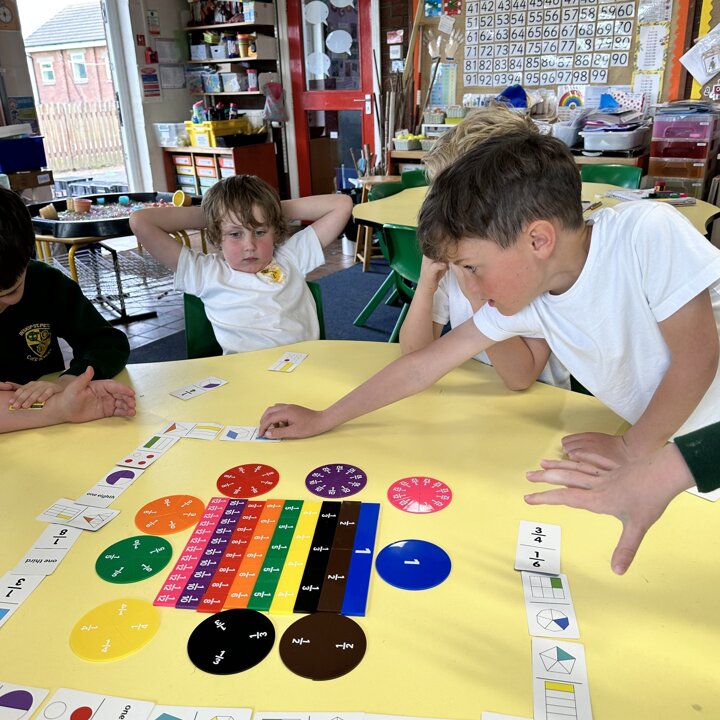 Year Two began investigating fractions this week. After revising parts and wholes we had some fun playing different games to develop their understanding before we look closer at fractions of shapes and amounts next week.