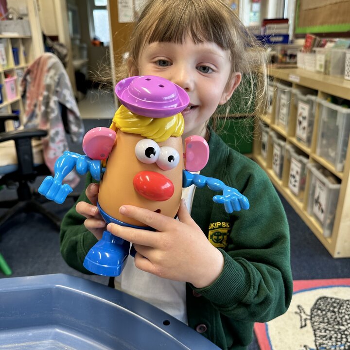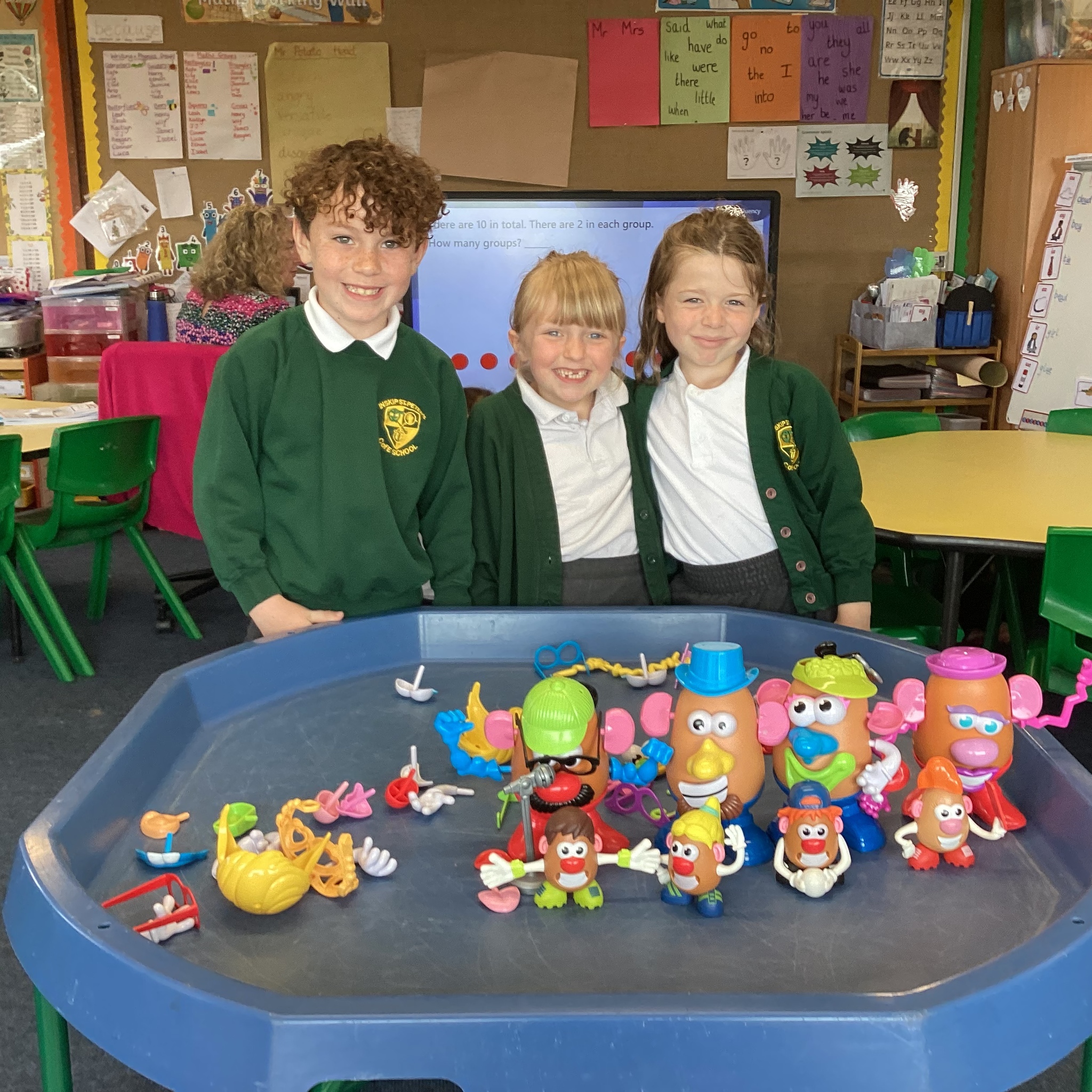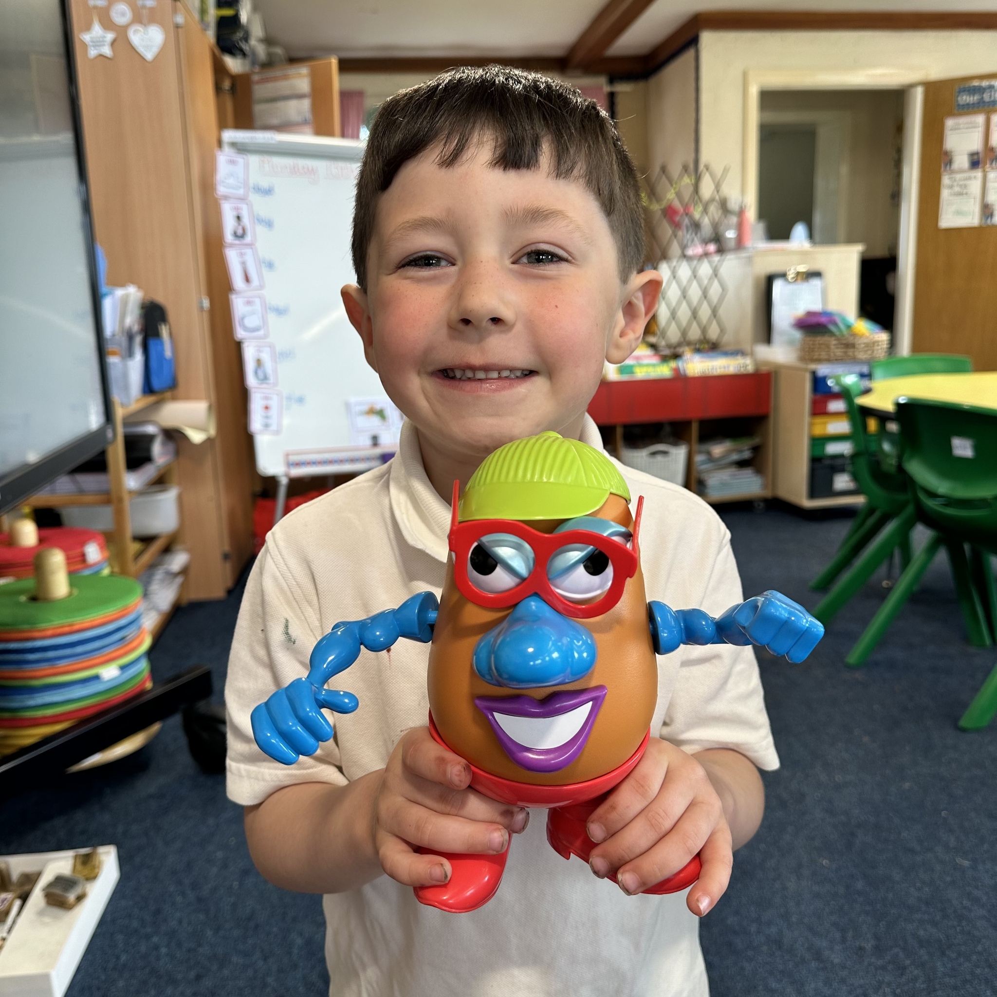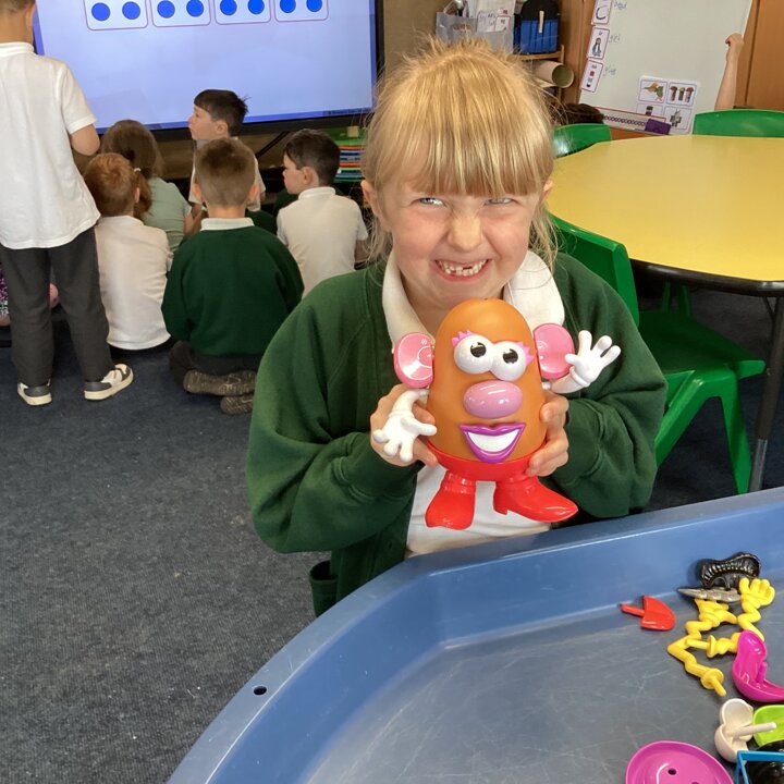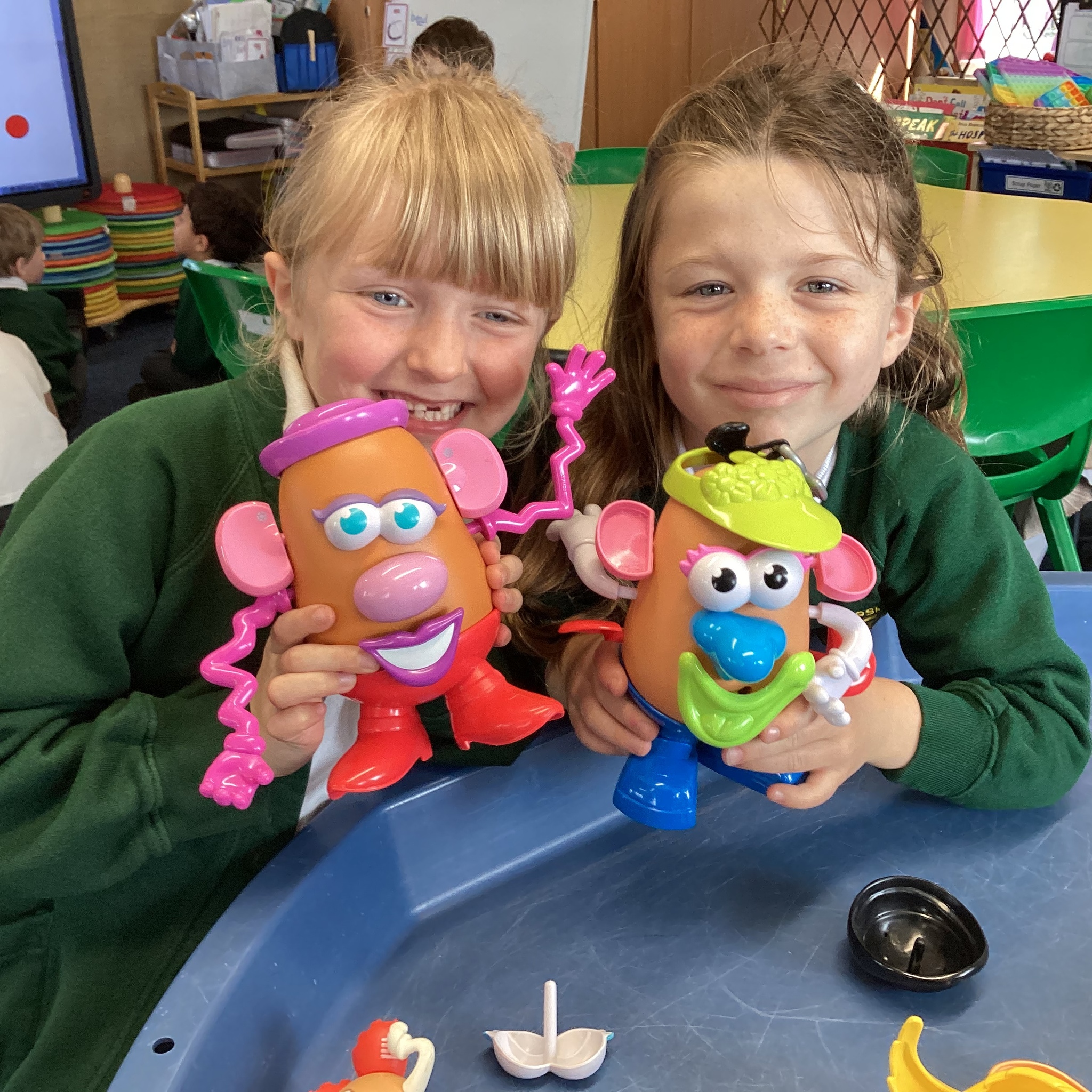 We’ve been have a lot of fun, learning whilst playing with our new Mr Potato Heads. Everyone has been creating characters, creating stories with them and having many conversations about their creations. Our Reception children have used them to learn about our senses, counted and talked about pairs and counting in twos.