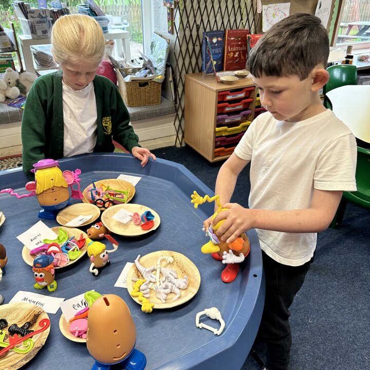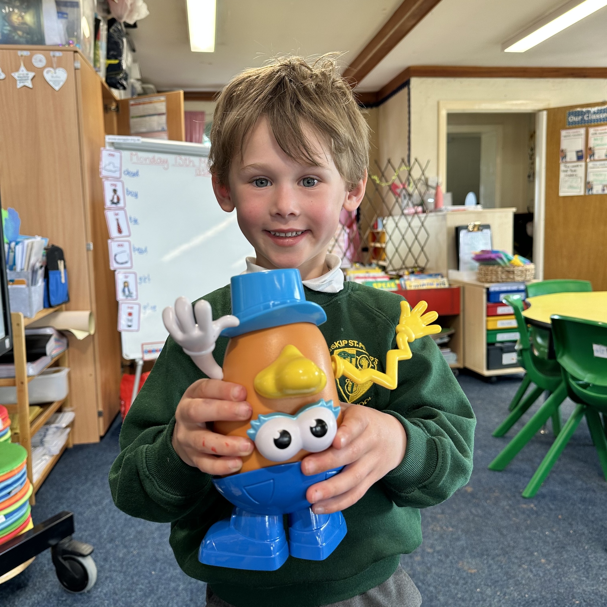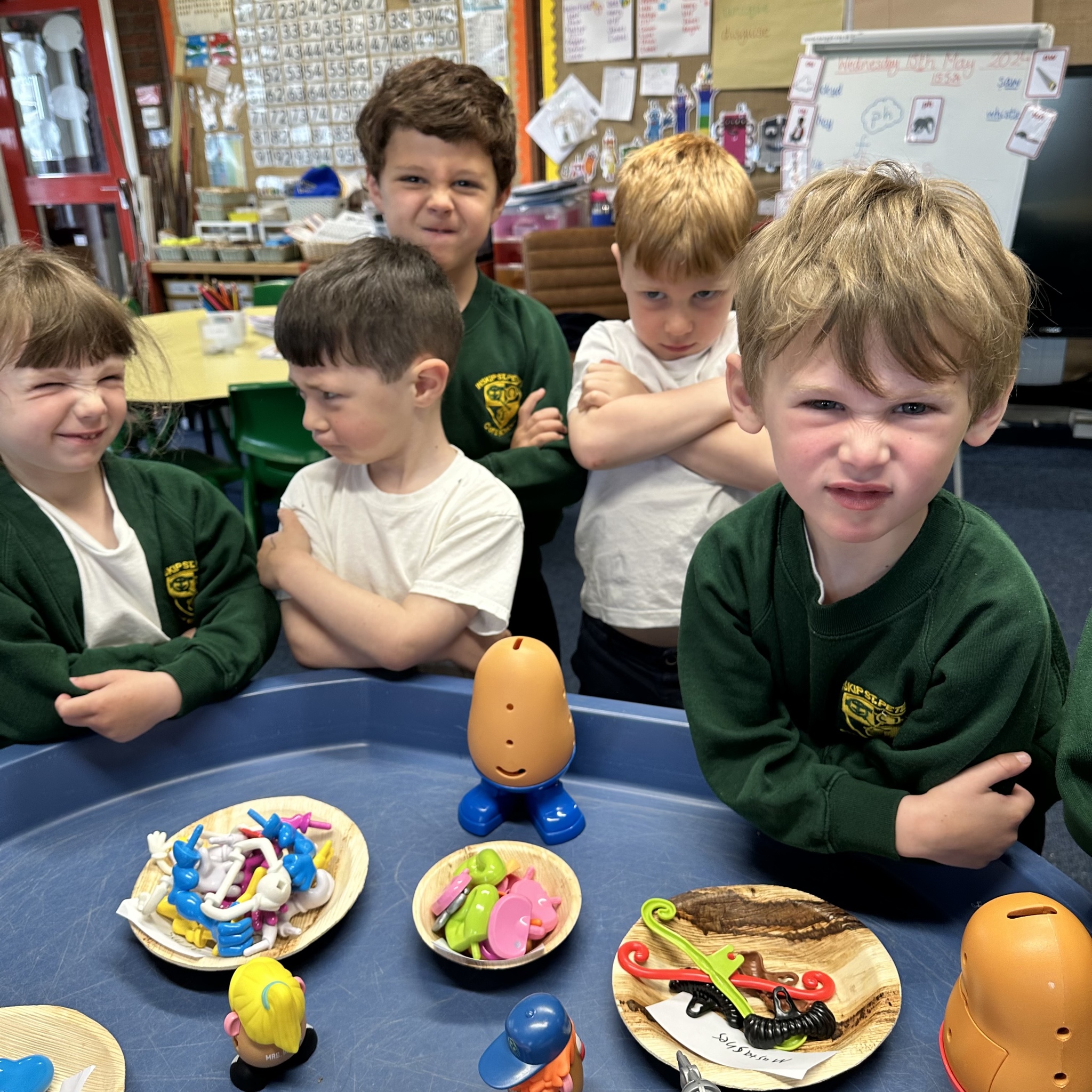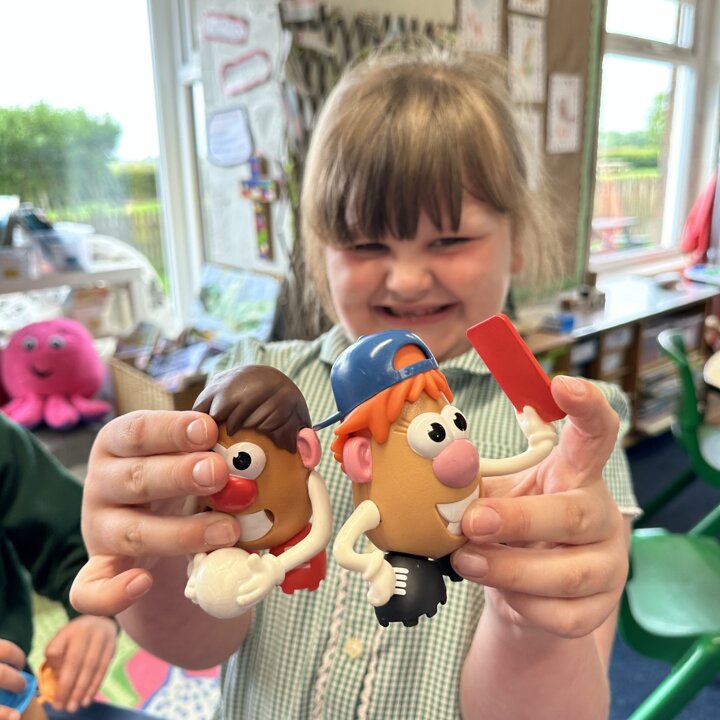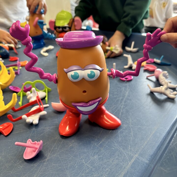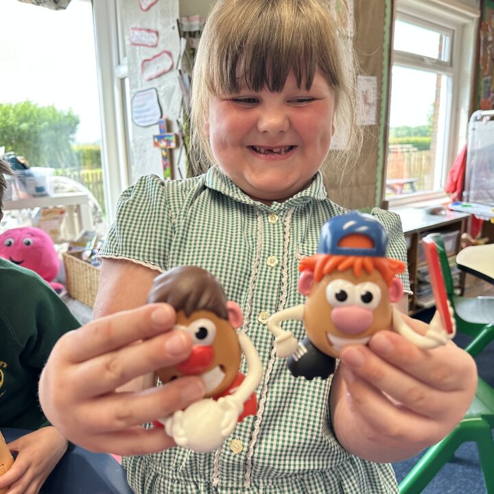 We’ve been have a lot of fun, learning whilst playing with our new Mr Potato Heads. Everyone has been creating characters, creating stories with them and having many conversations about their creations. Our Reception children have used them to learn about our senses, counted and talked about pairs and counting in twos.