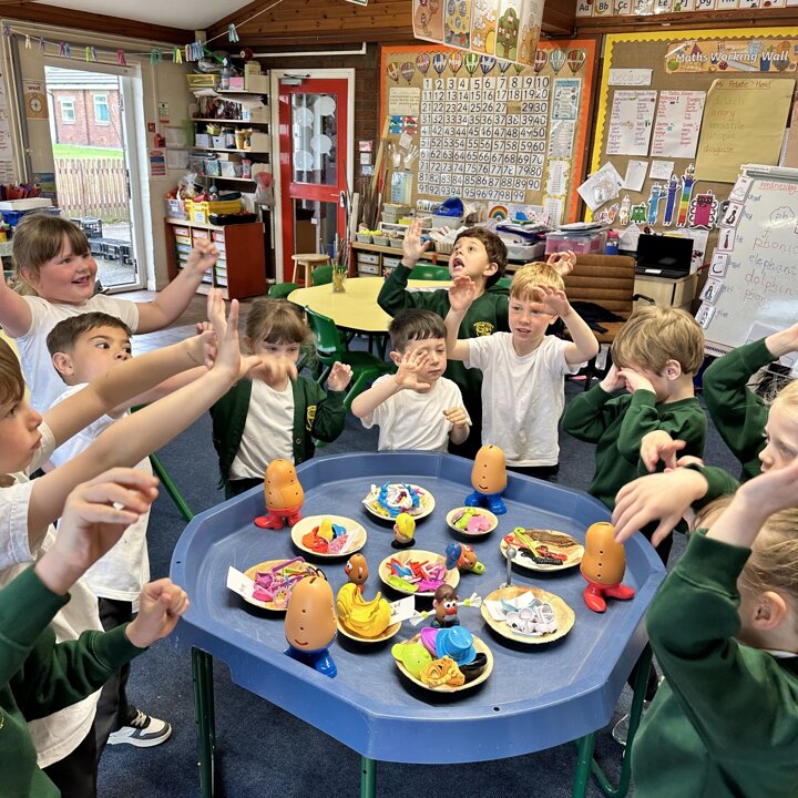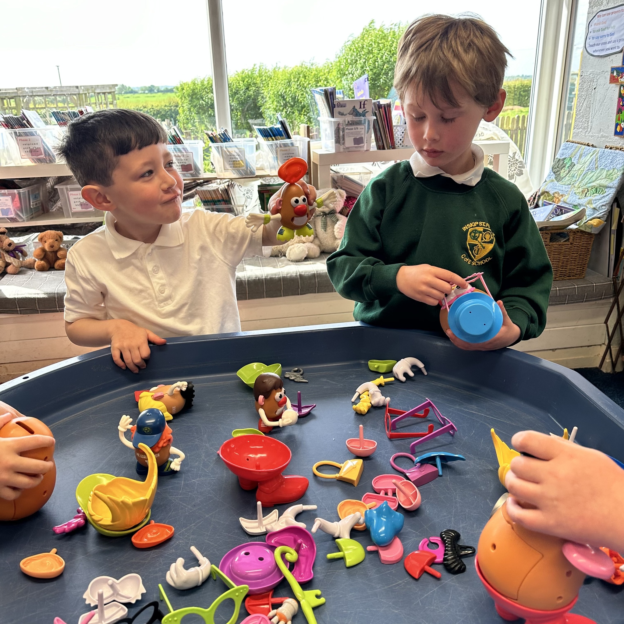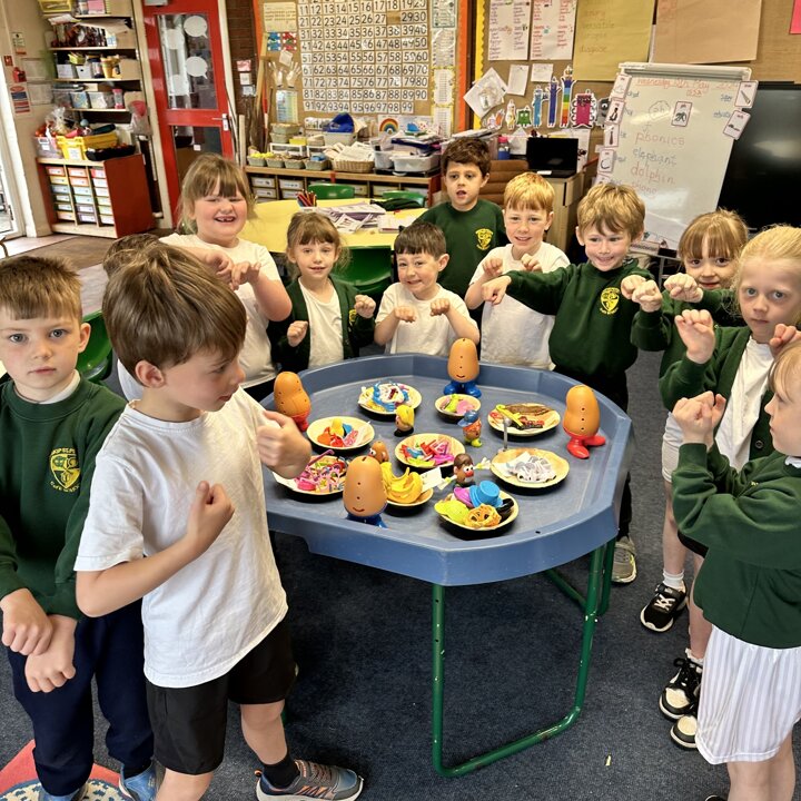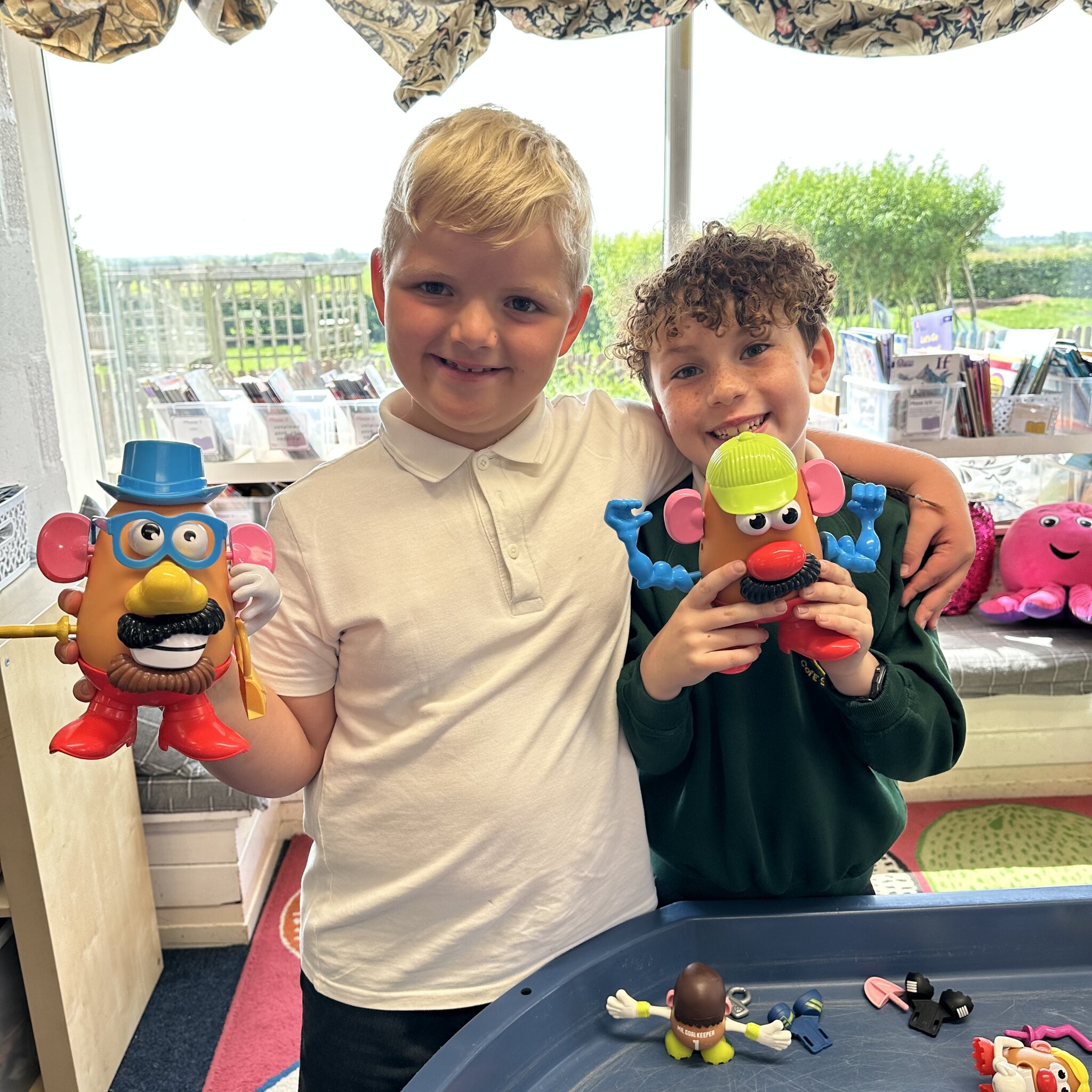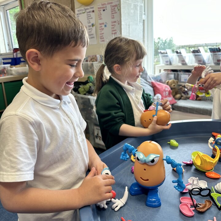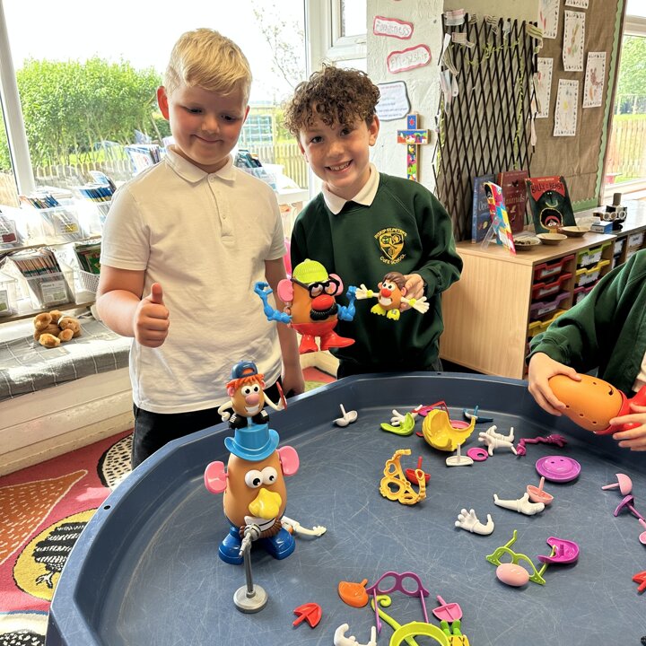 We’ve been have a lot of fun, learning whilst playing with our new Mr Potato Heads. Everyone has been creating characters, creating stories with them and having many conversations about their creations. Our Reception children have used them to learn about our senses, counted and talked about pairs and counting in twos.