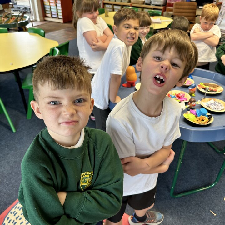 Year One and Reception have been using them as inspiration for our writing through Drawing Club. Take a look at these photos below which show the children acting out the ambitious vocabulary we have been learning to use to describe.