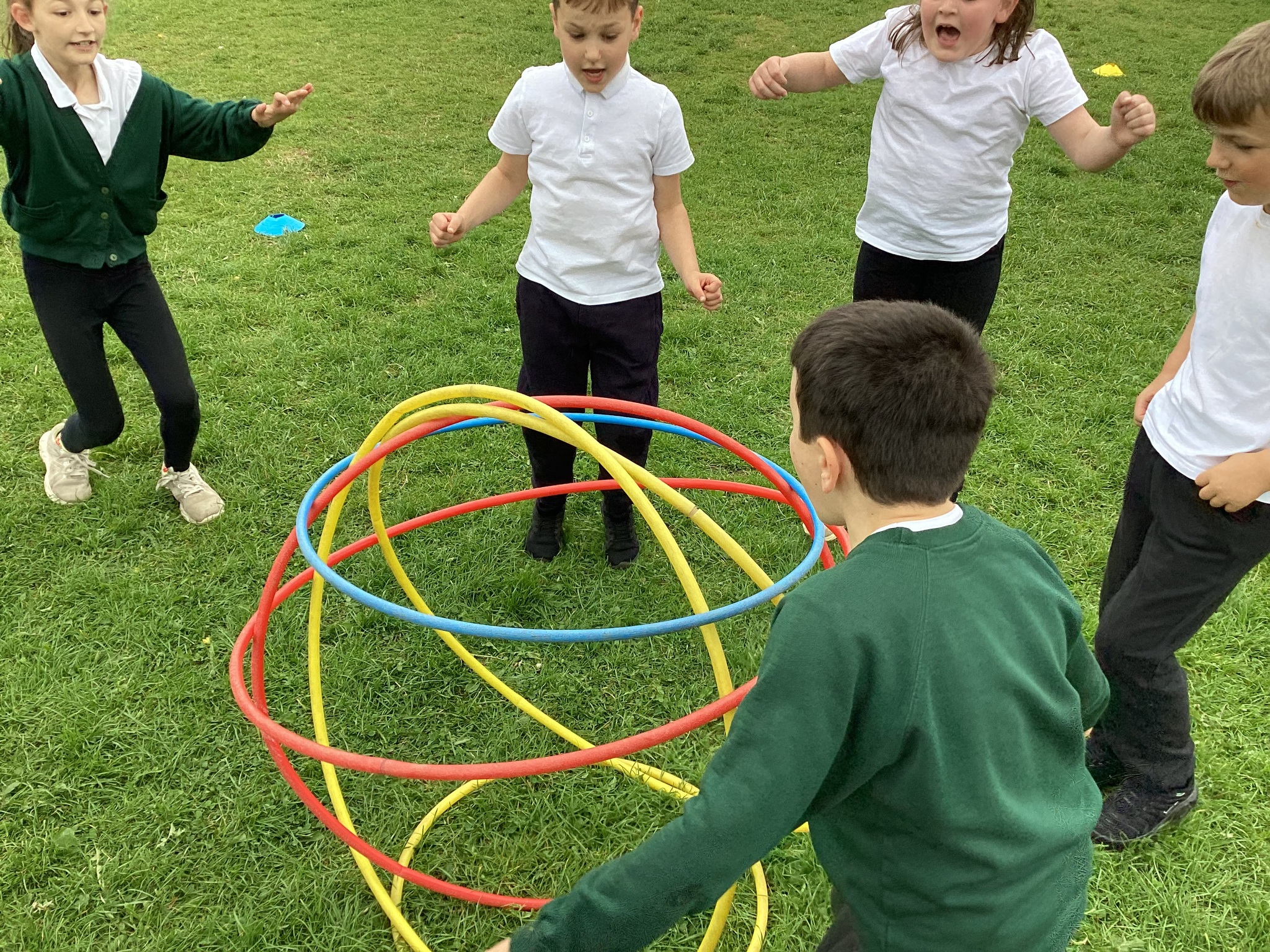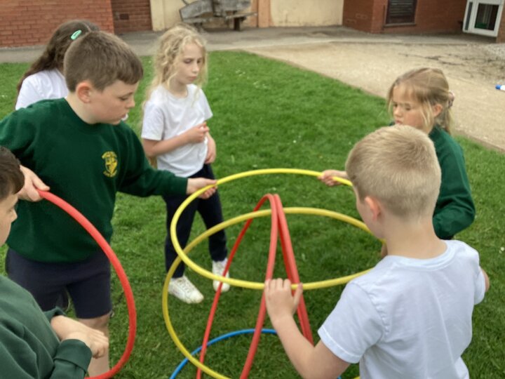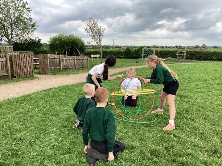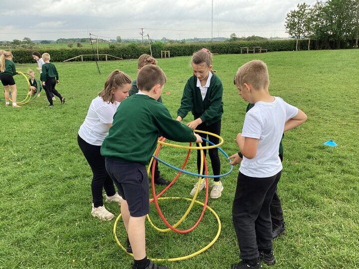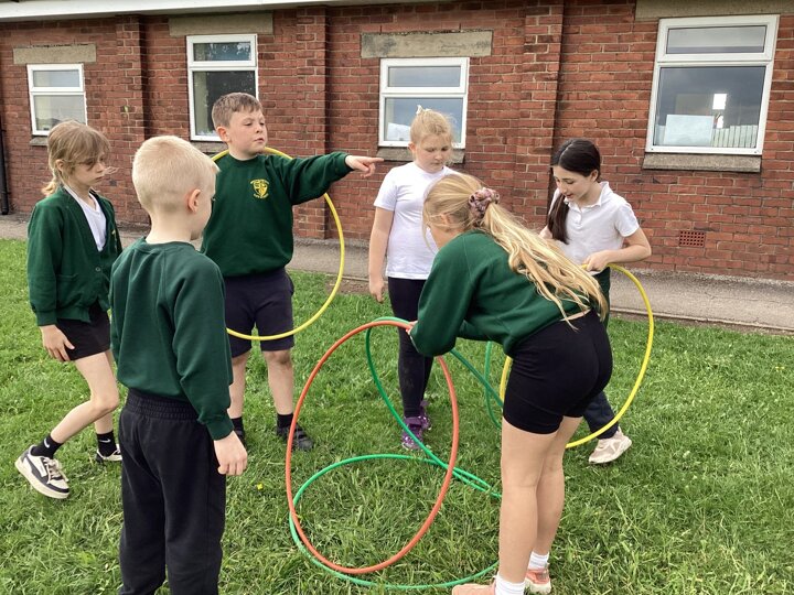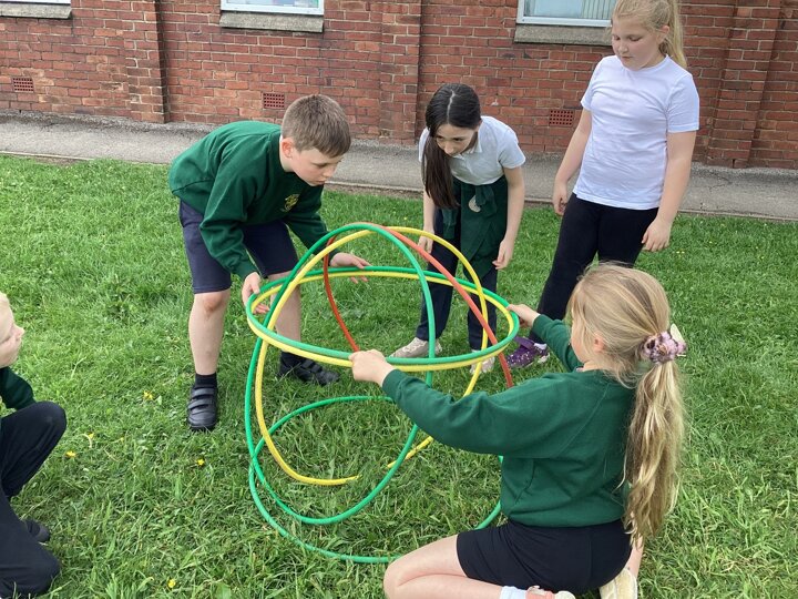 To finish up our PE topic of outdoor teamwork games, we played a variety of games that would really put our teams to the test! Our favourite was hula hut. This involved groups working together to collect hoops and build them into a spherical structure. We worked out there were different methods to build our hula huts, and different people took on different roles within the team.