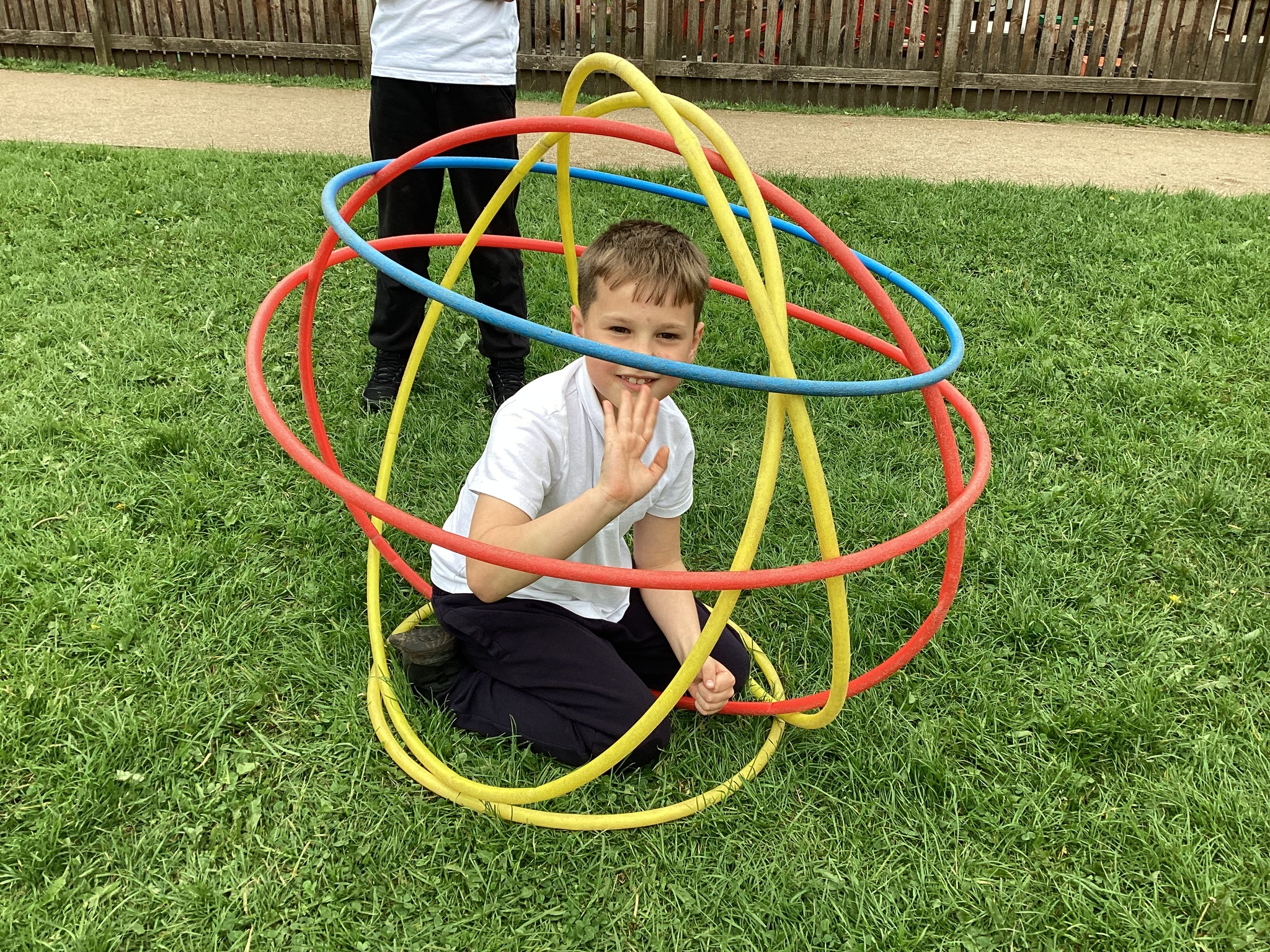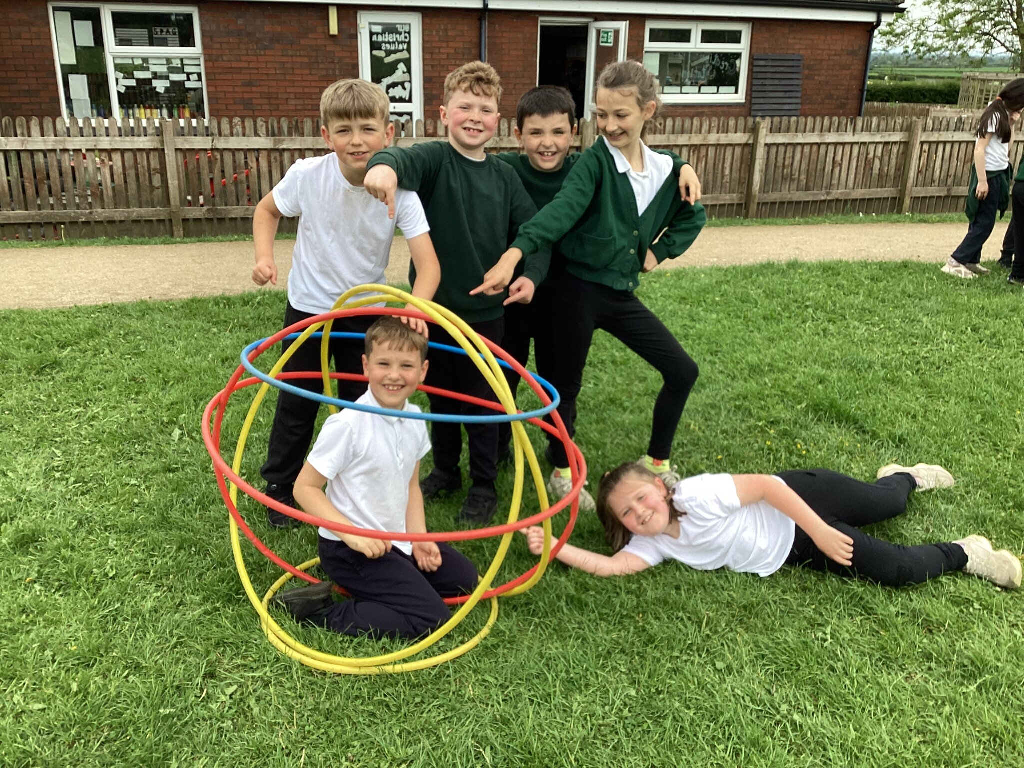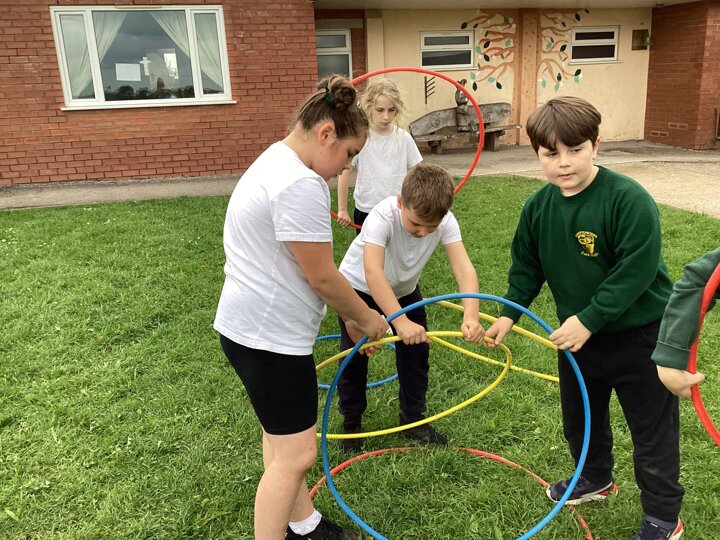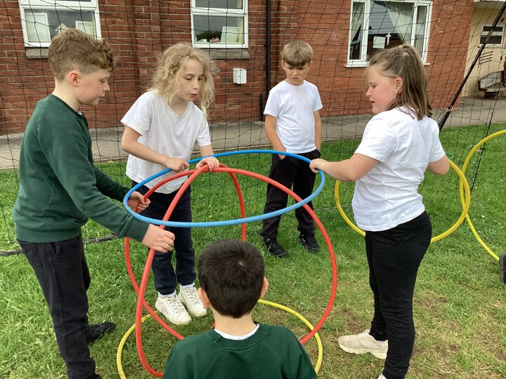 To finish up our PE topic of outdoor teamwork games, we played a variety of games that would really put our teams to the test! Our favourite was hula hut. This involved groups working together to collect hoops and build them into a spherical structure. We worked out there were different methods to build our hula huts, and different people took on different roles within the team.
