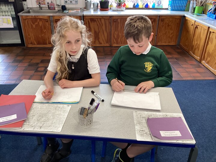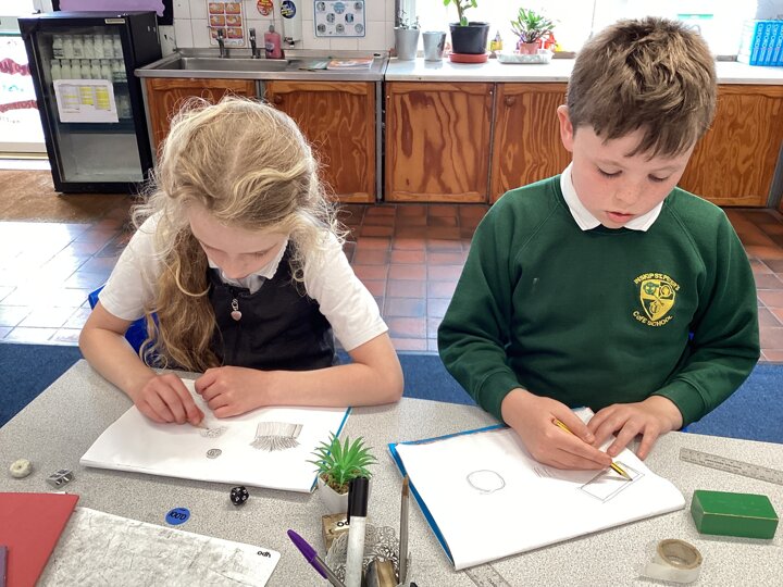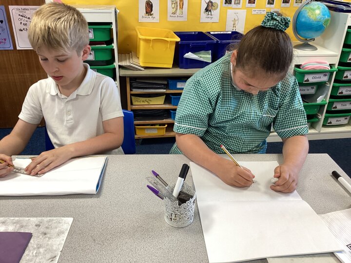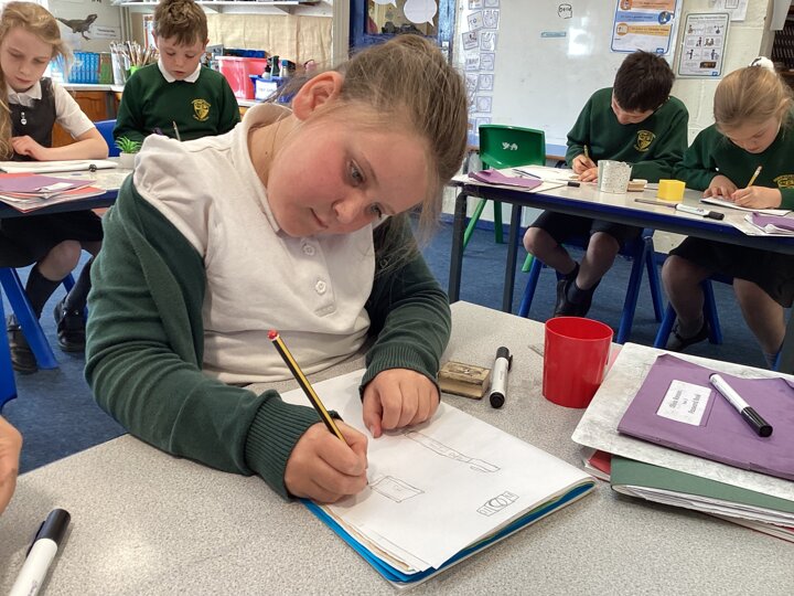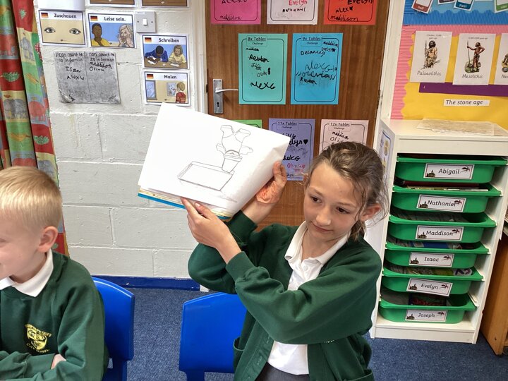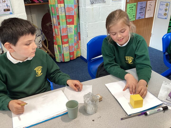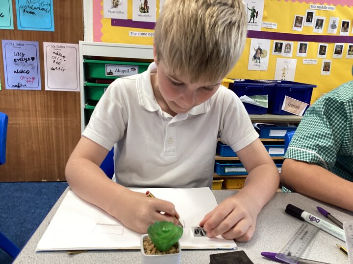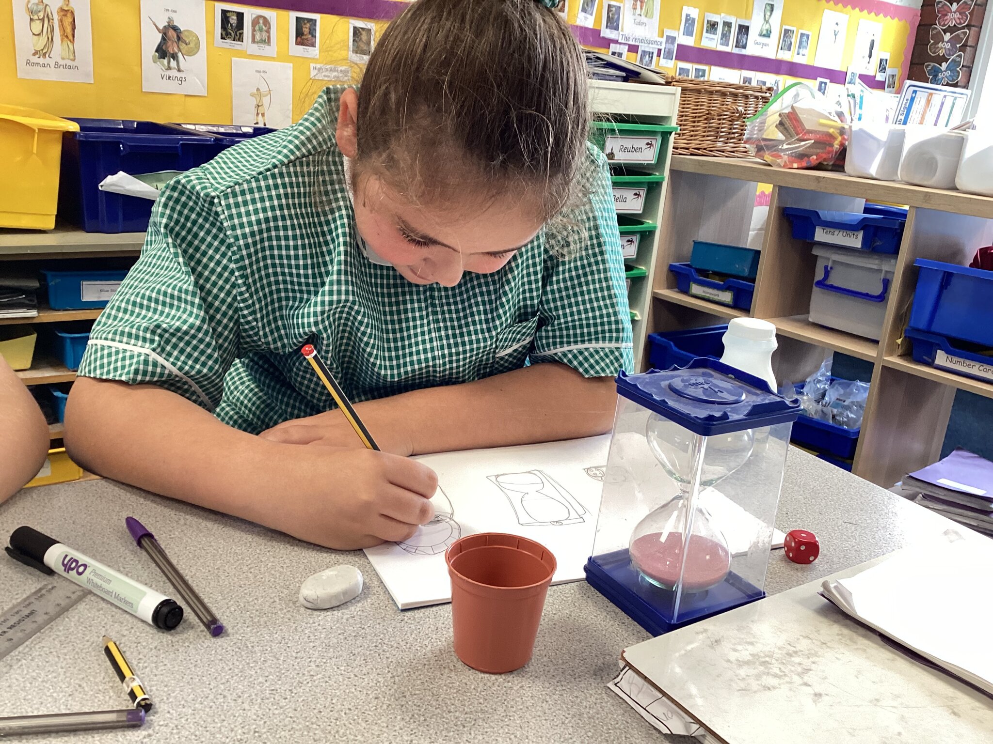 Our art topic this half term is focusing on improving our drawing skills. To start this off, we began looking at breaking down what we see into geometric shapes - rectangles, ovals and triangles. Children have tried copying classroom objects that they could see, firstly drawing them as geometric shapes and then adding details and shading.
