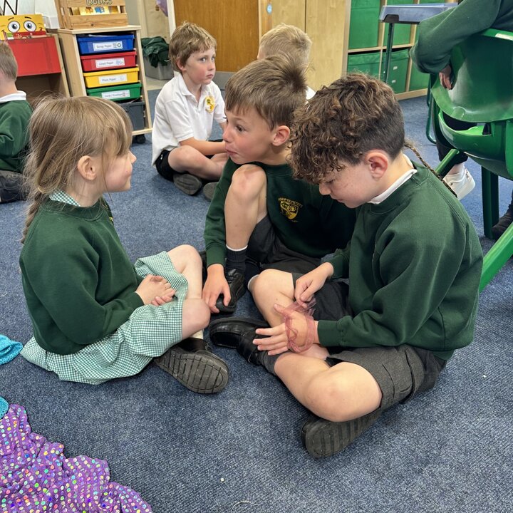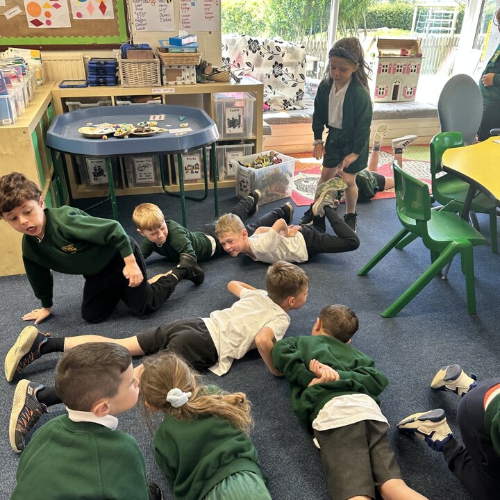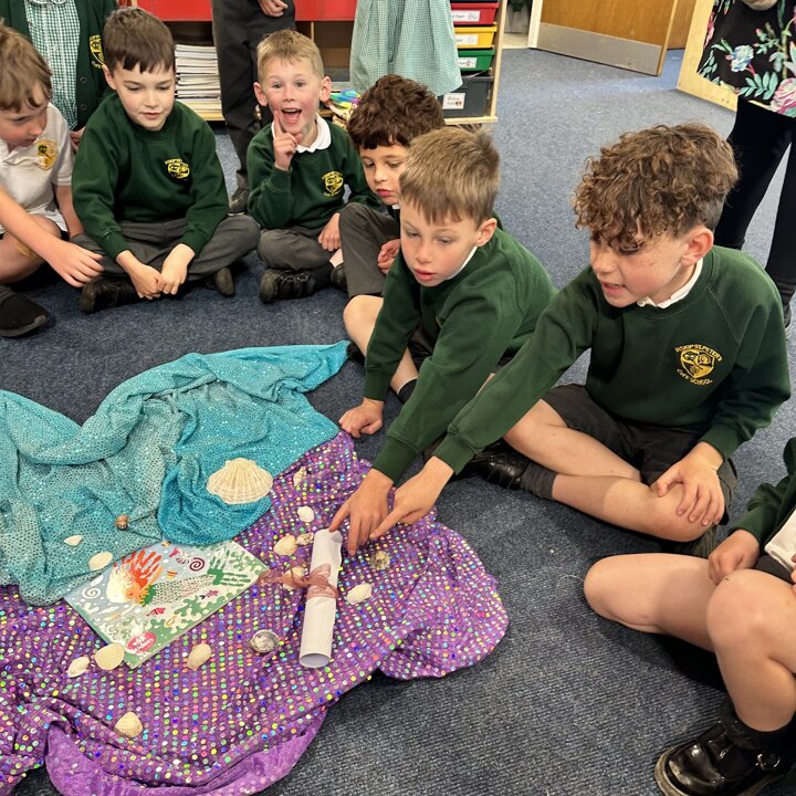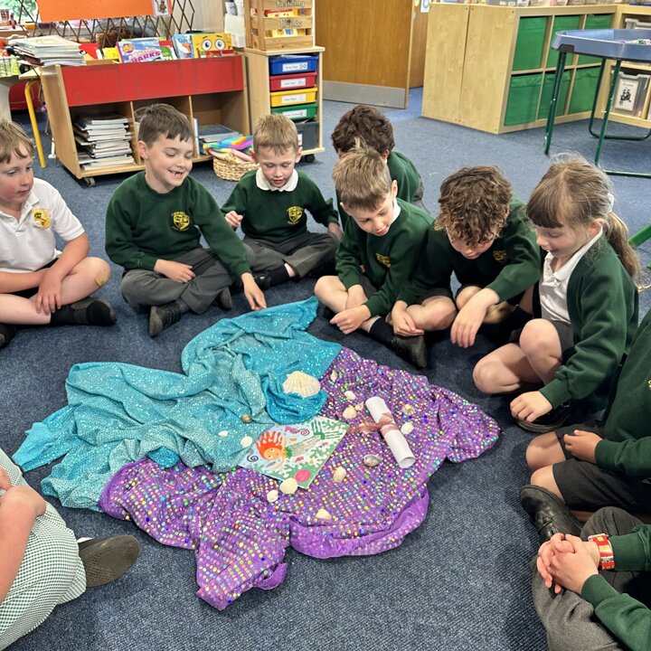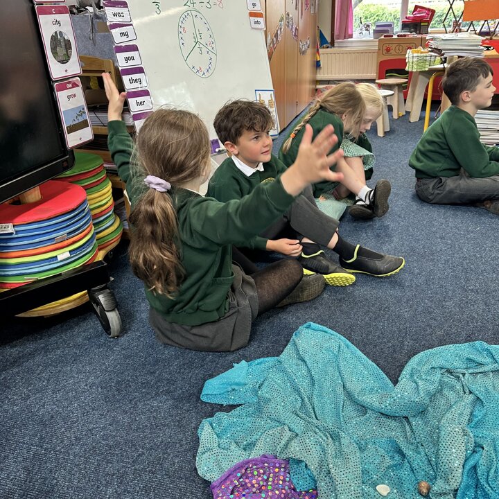 Later in the week we listened to some music called The Aquarium from Saint-Saens's Carnival of the Animals suite and the children moved and danced around the room being different sea creatures they might see under water. This inspired the children to write some great descriptive sentences when they wrote a postcard to Julian's Nana telling her of their adventures under the sea.