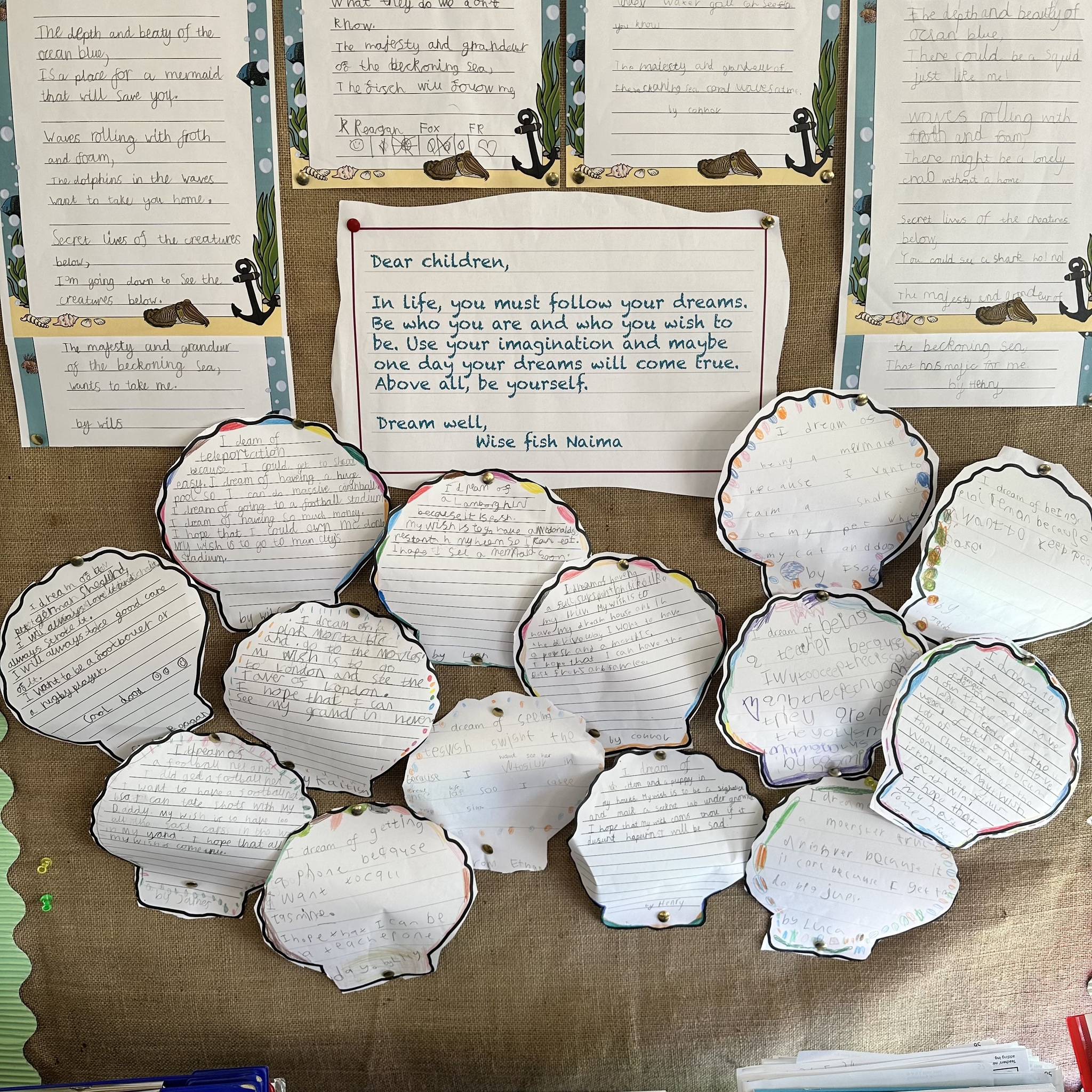 This week a lot of our writing has been inspired by the fabulous picture book 'Julian Is A Mermaid' by Jessica Love. we came into the classroom one morning to find a letter for us telling us to follow our dreams.