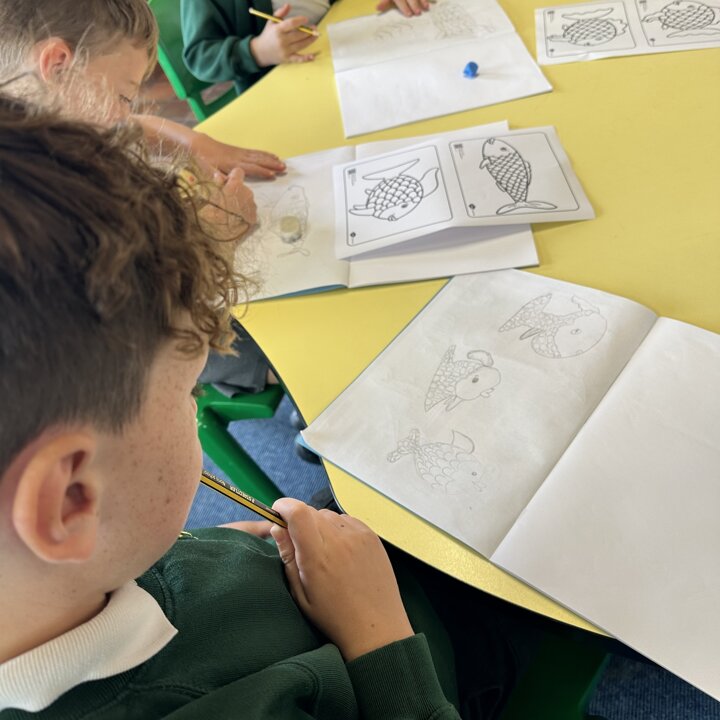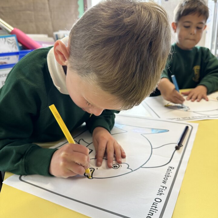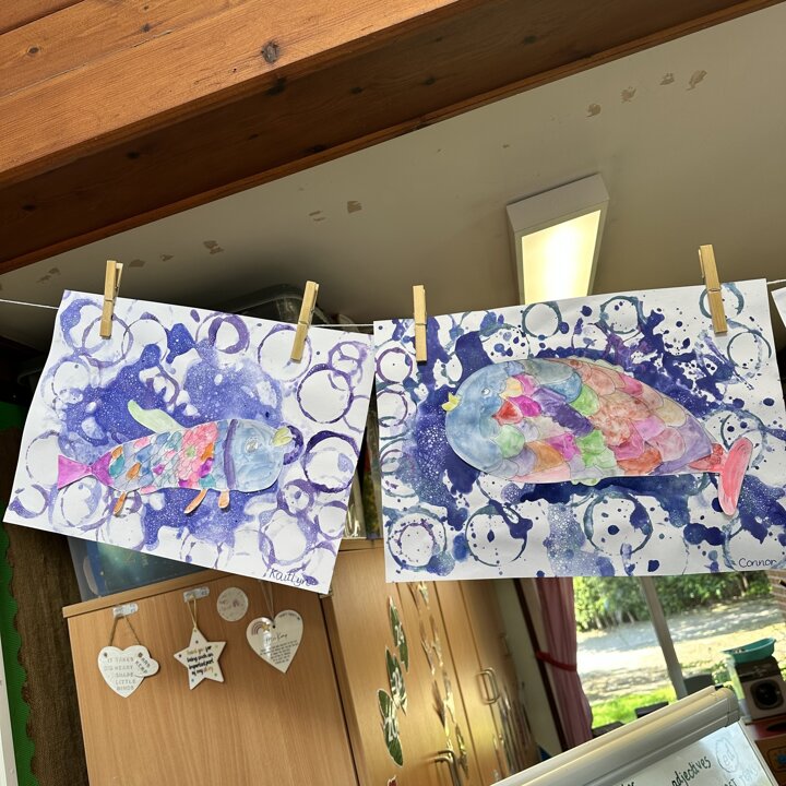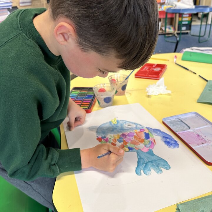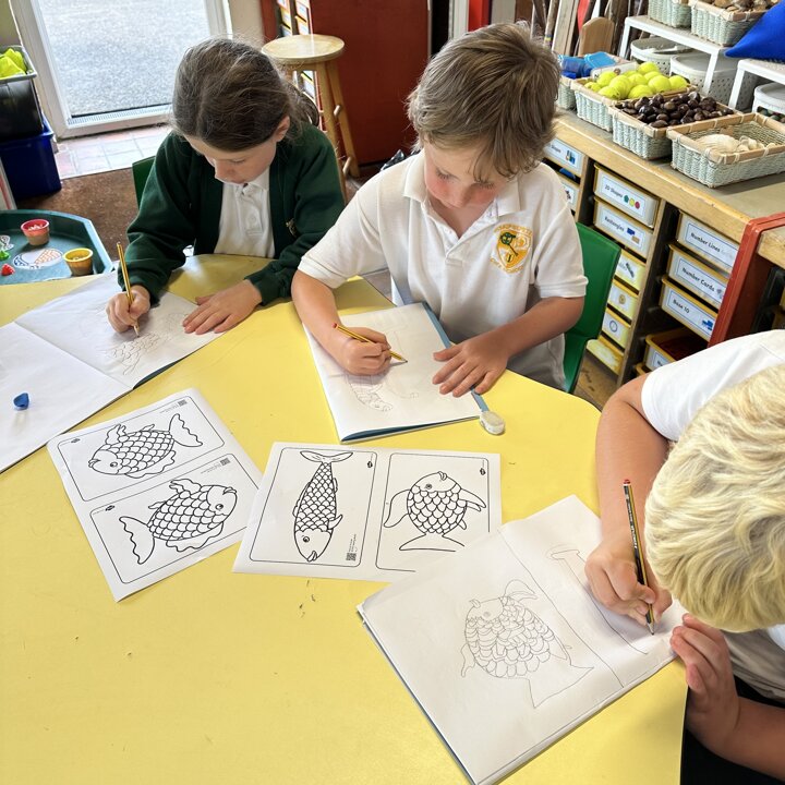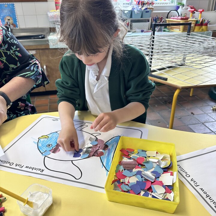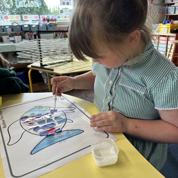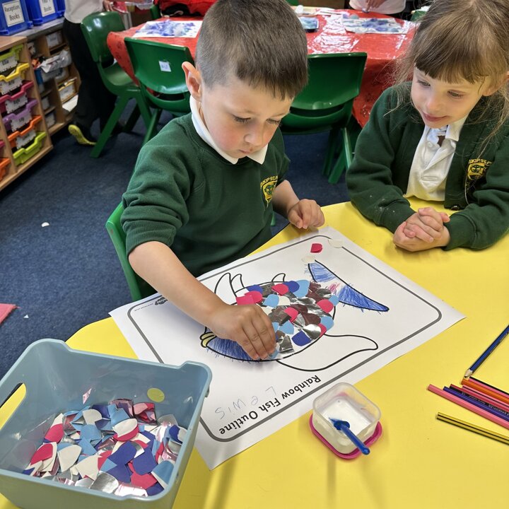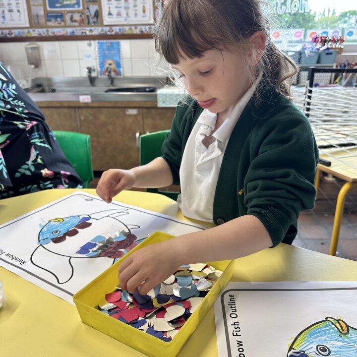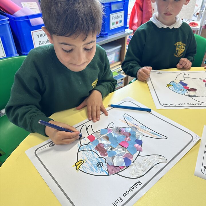 Take a look at these photographs to see all the different skills the children learnt when they created their own Rainbow Fish.