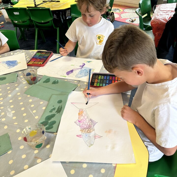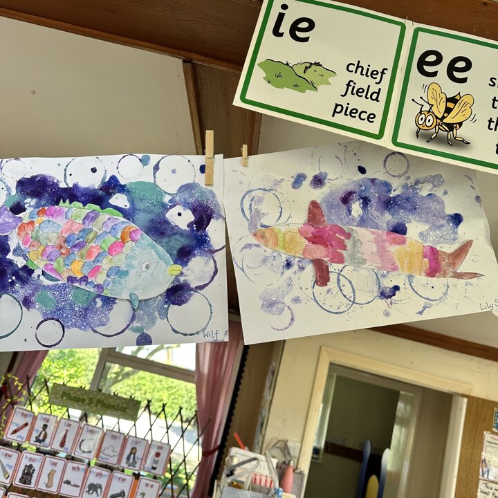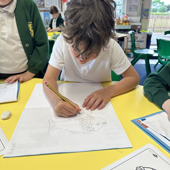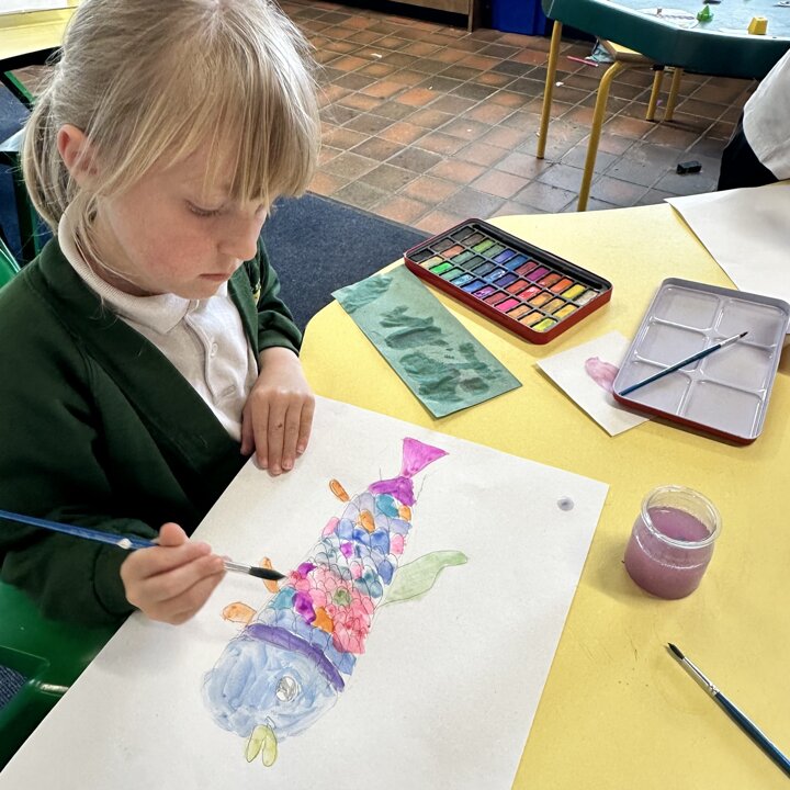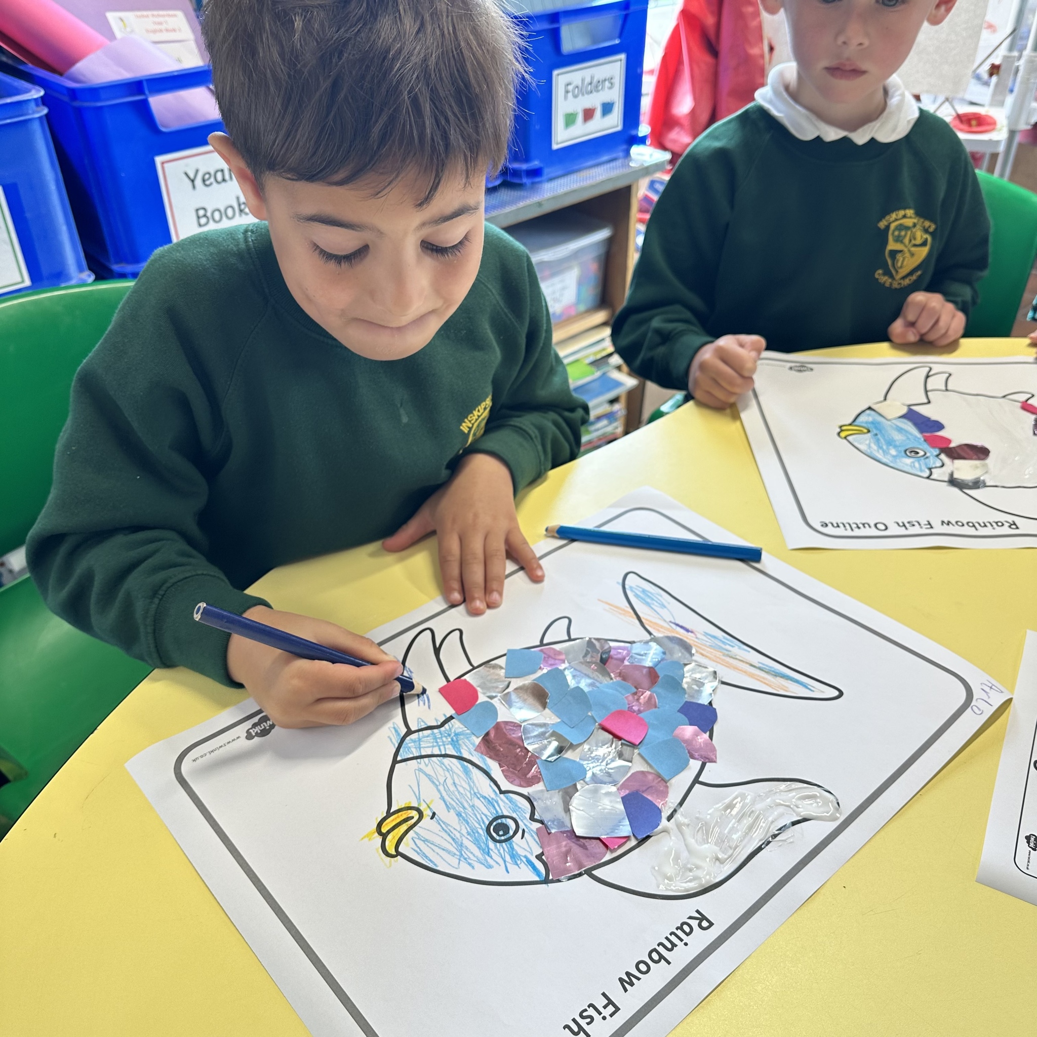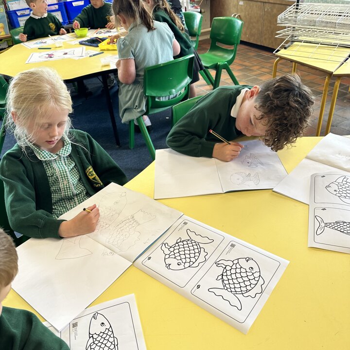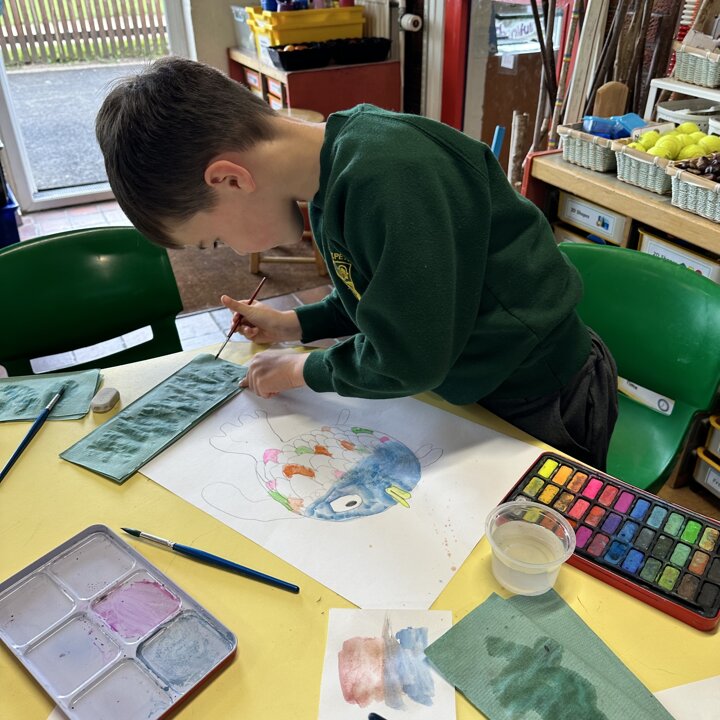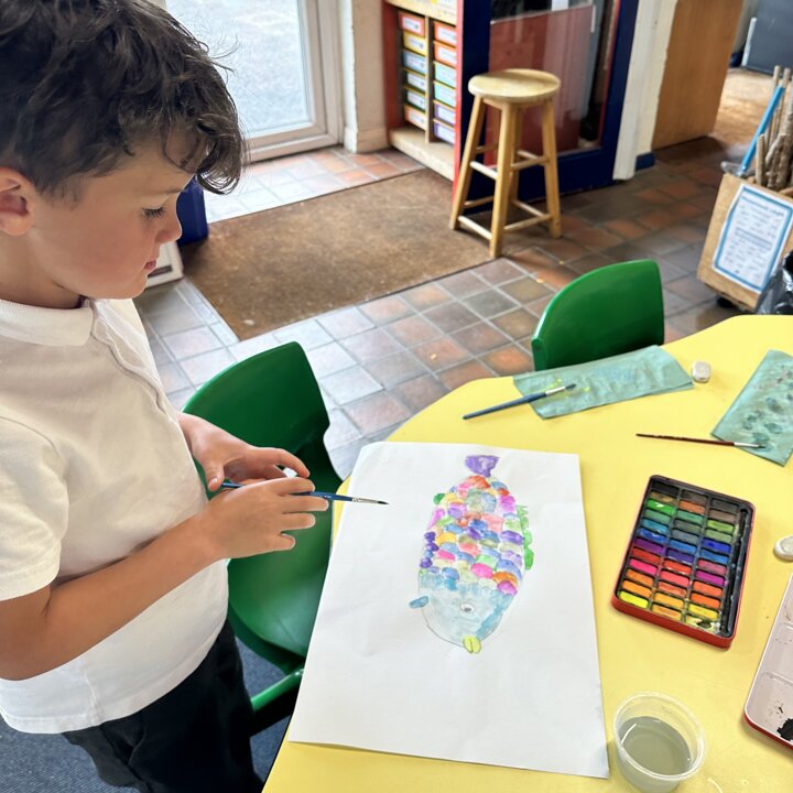 Take a look at these photographs to see all the different skills the children learnt when they created their own Rainbow Fish.