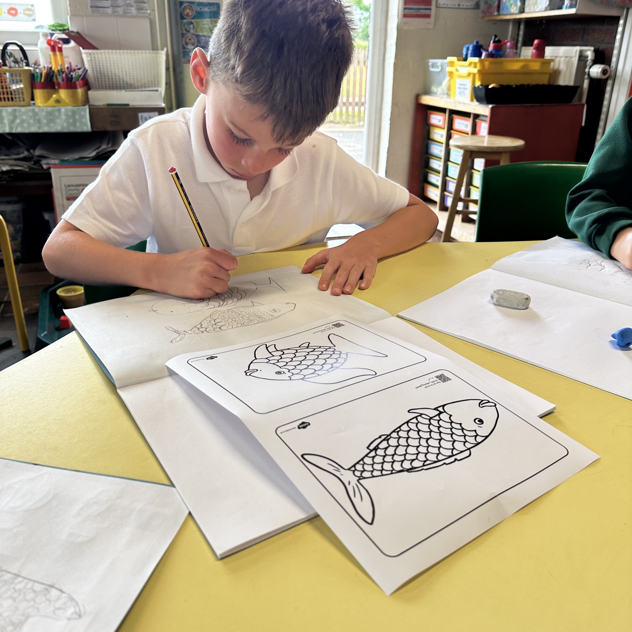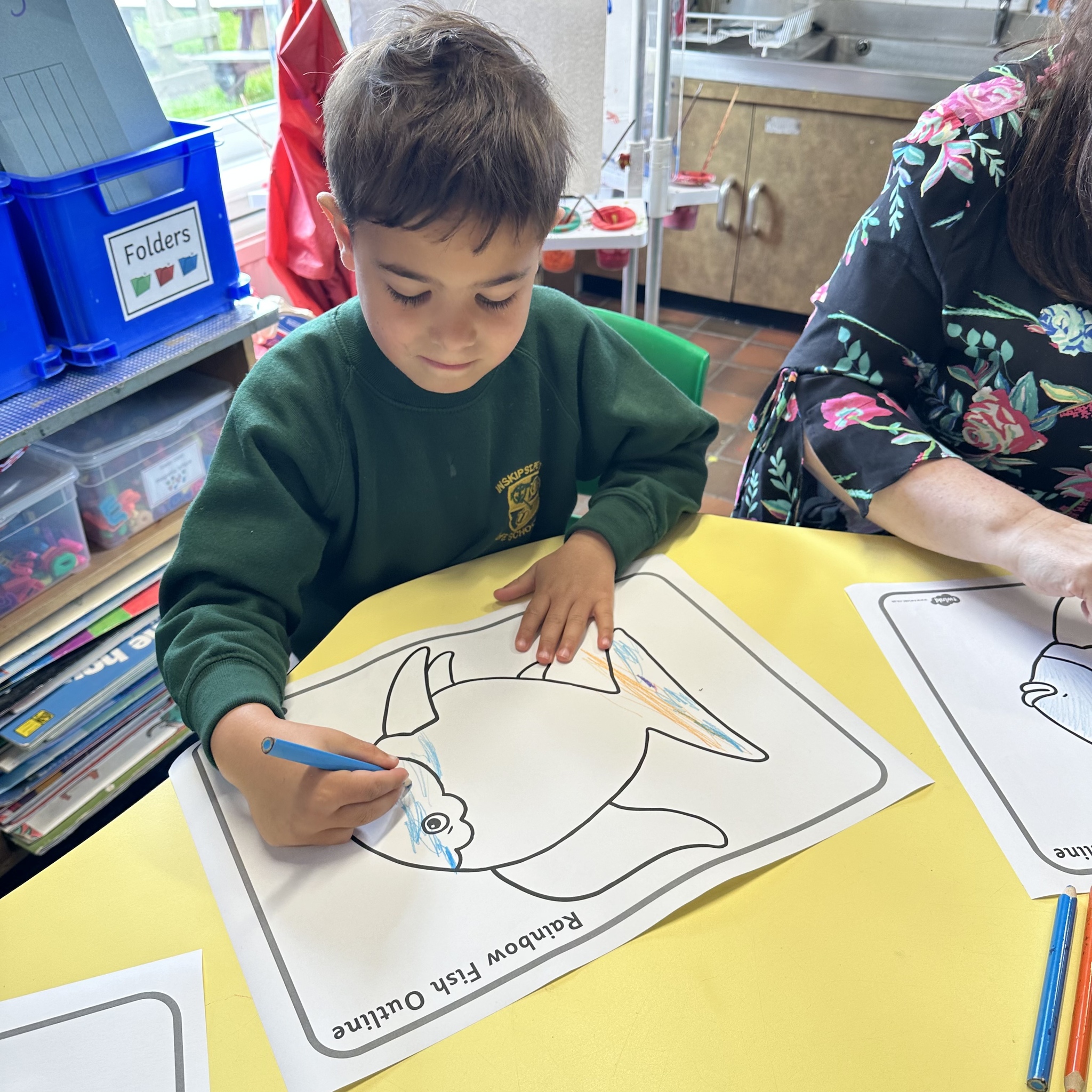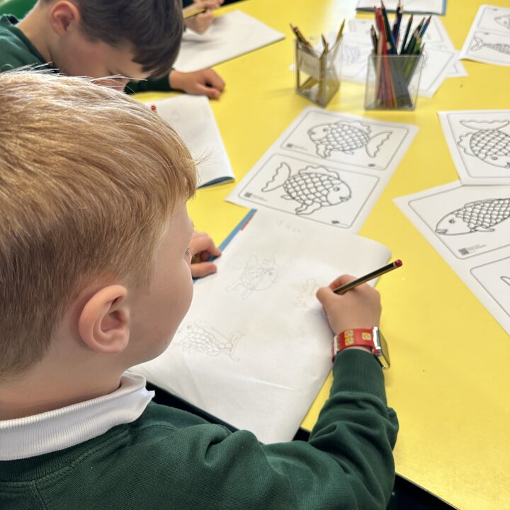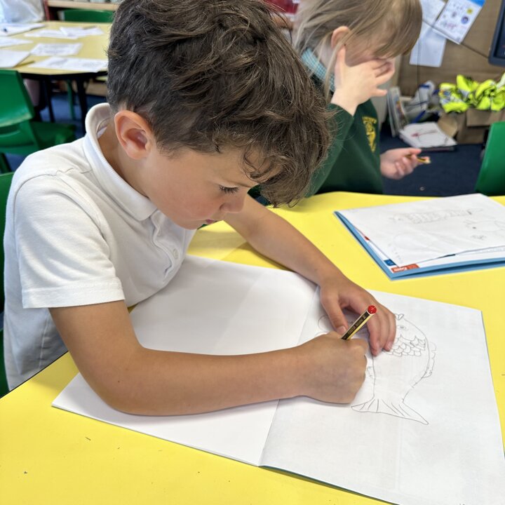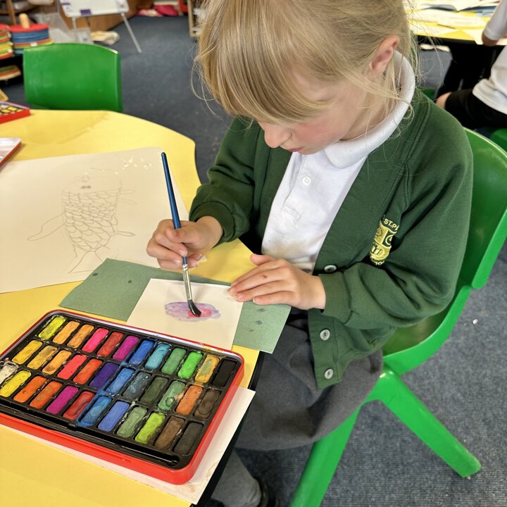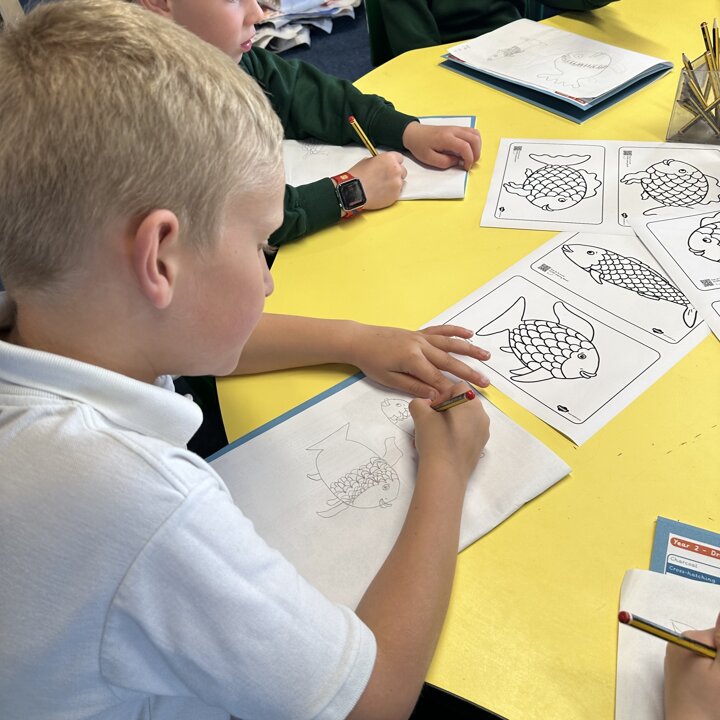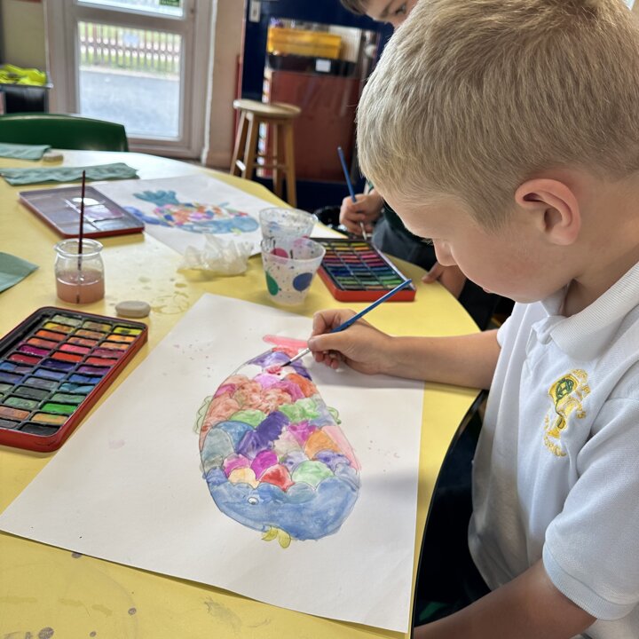 Take a look at these photographs to see all the different skills the children learnt when they created their own Rainbow Fish.