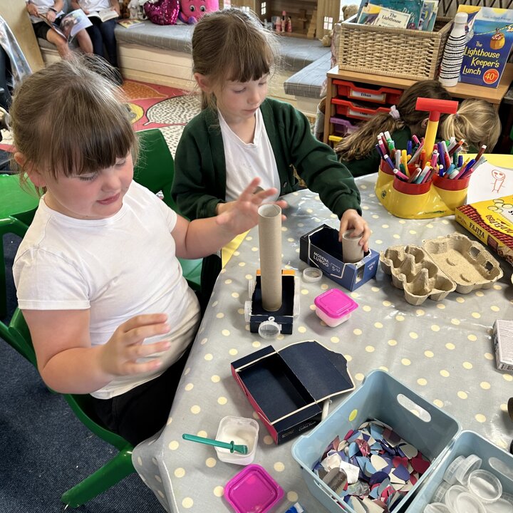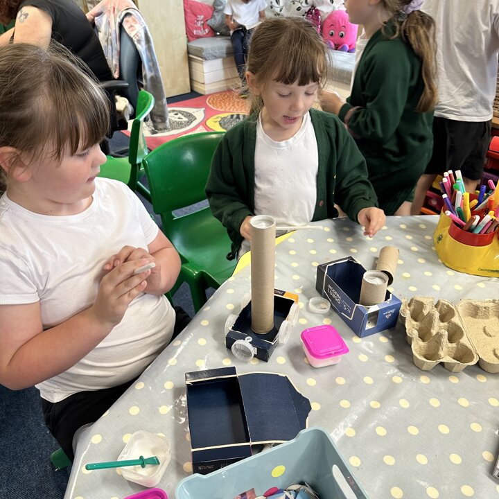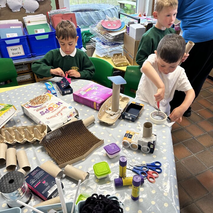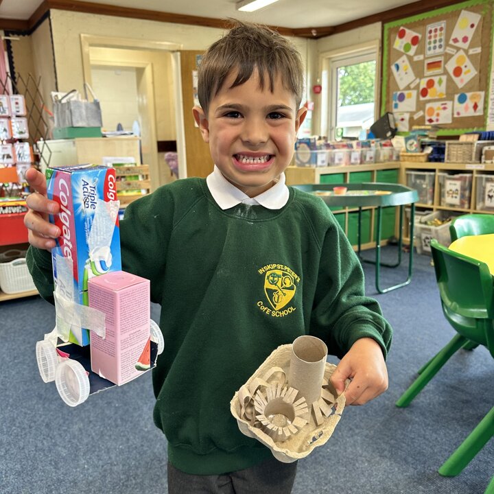 Our Reception children have been having fun creating some awesome models, they chat so animatedly whislt they are creating and when they describe their inventions to you. They applied lots of great design and making skills as they worked, making decisions, trying things out and improving their designs as they went along.