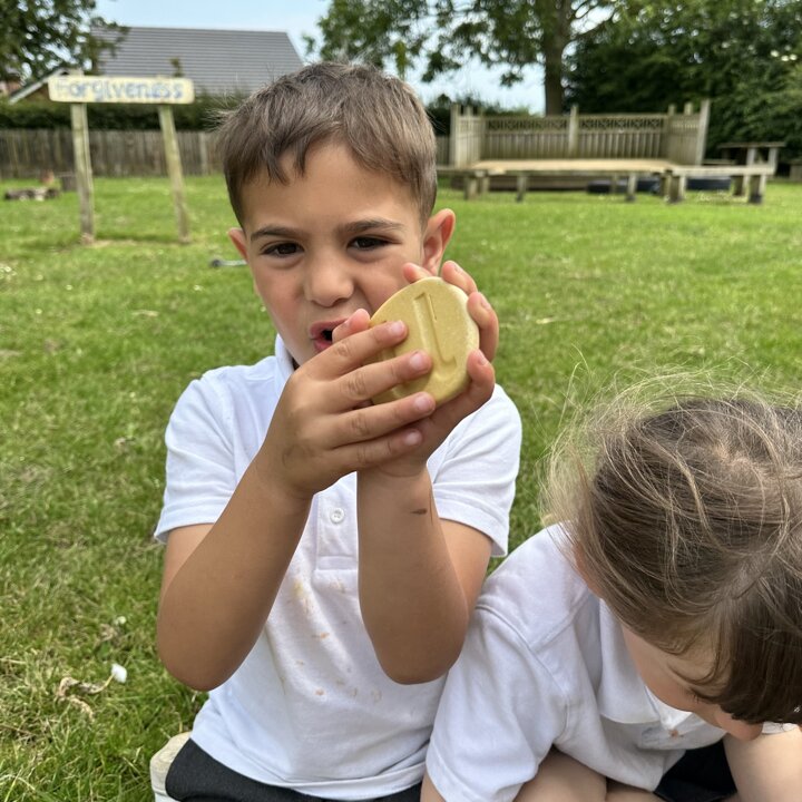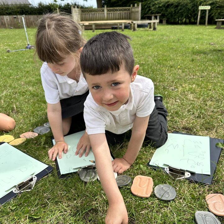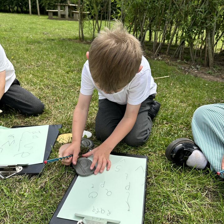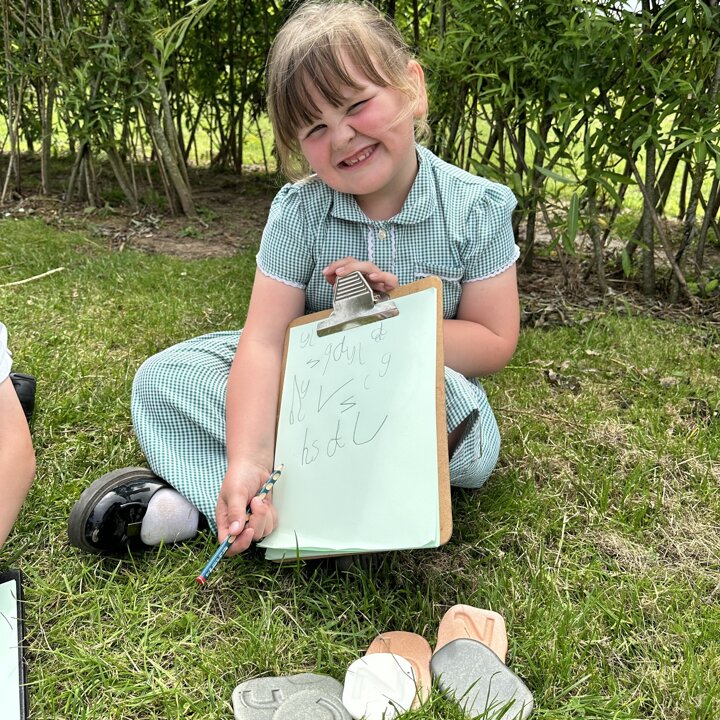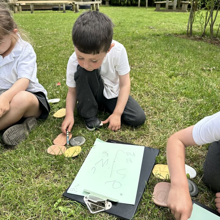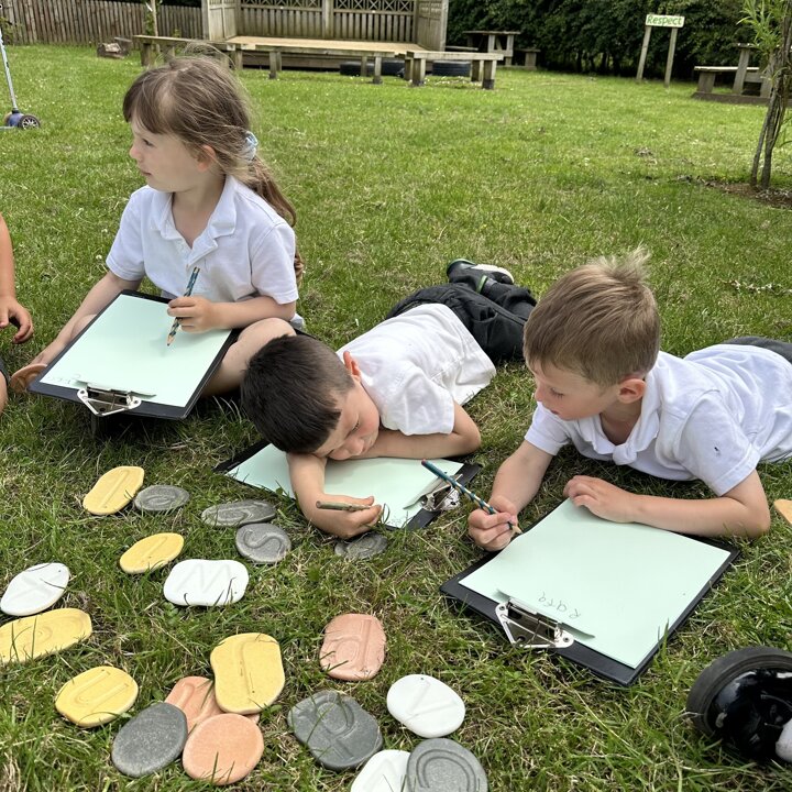 25 June 2024 Penny Kemp Lower School (KS1) Our Reception children have been practising forming letters correctly and building words outside today.