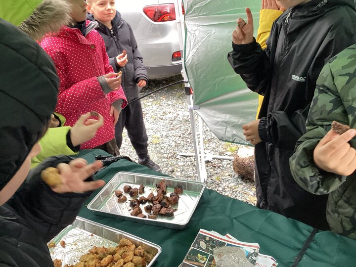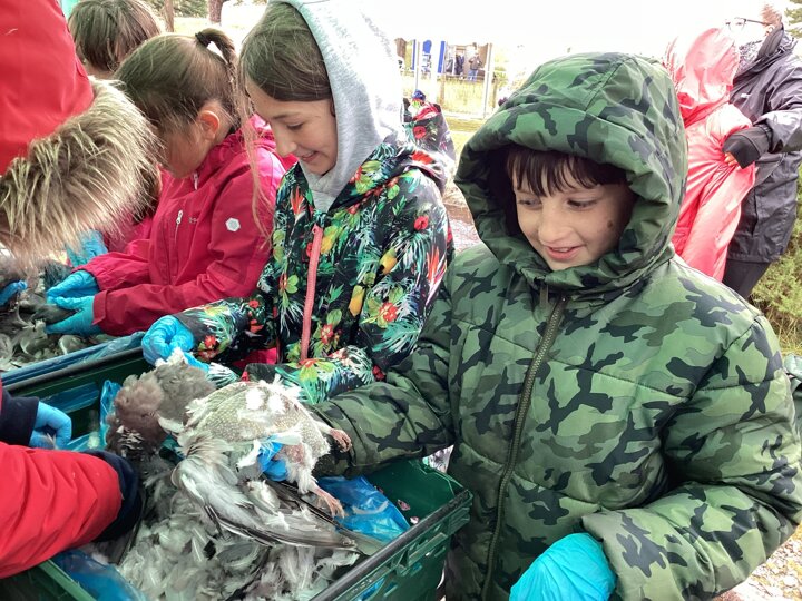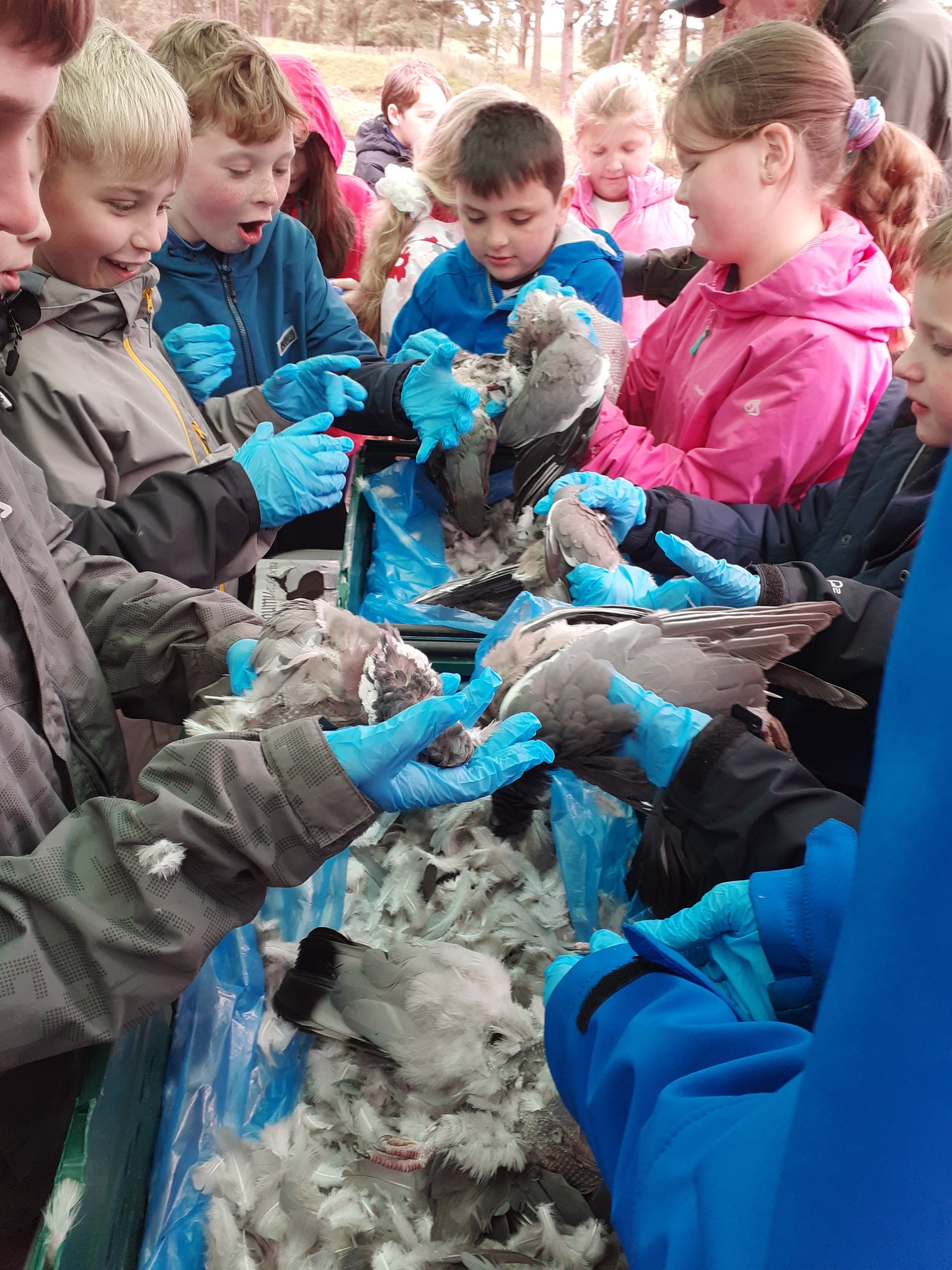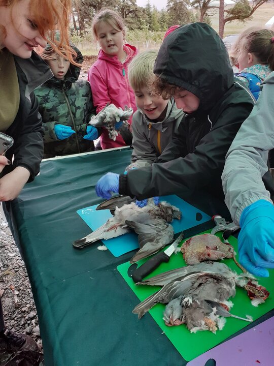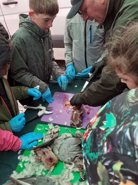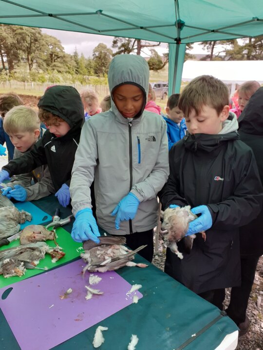 After a lunch break, some of the children chose to have a try at plucking feathers from pigeons to prepare them for eating. One or two even had a try at dressing the pigeons! Once the hard work had been done, some children opted to try a bit of cooked partridge, grouse or duck as a reward for their efforts.