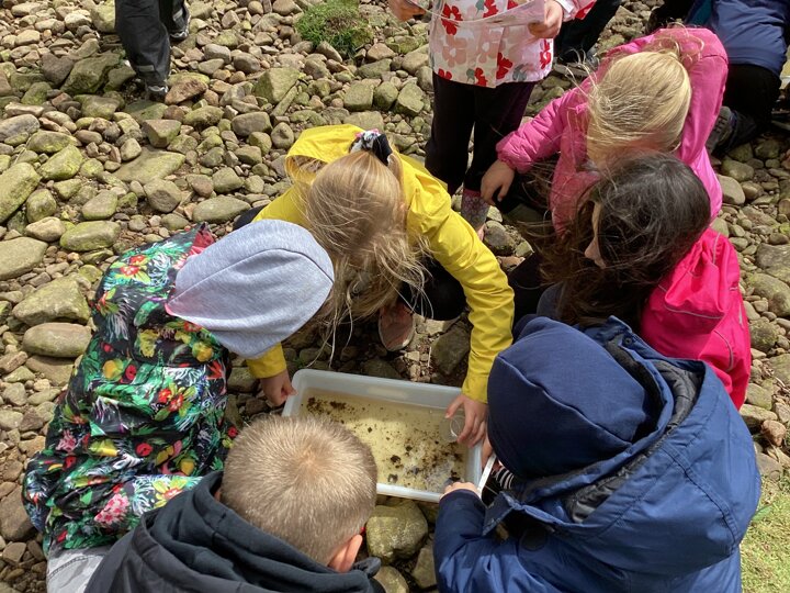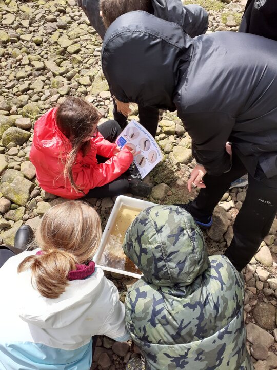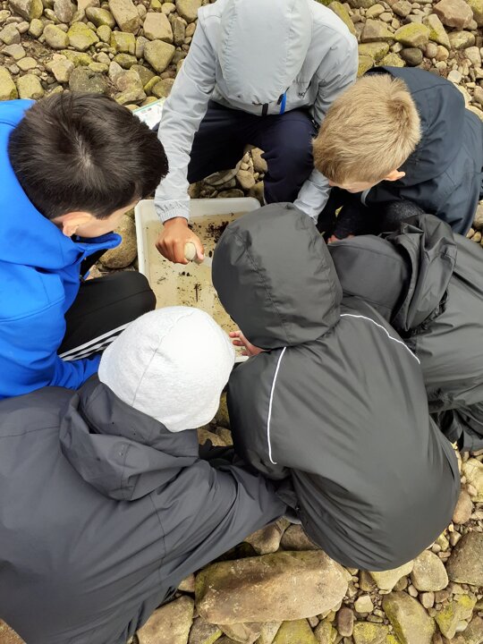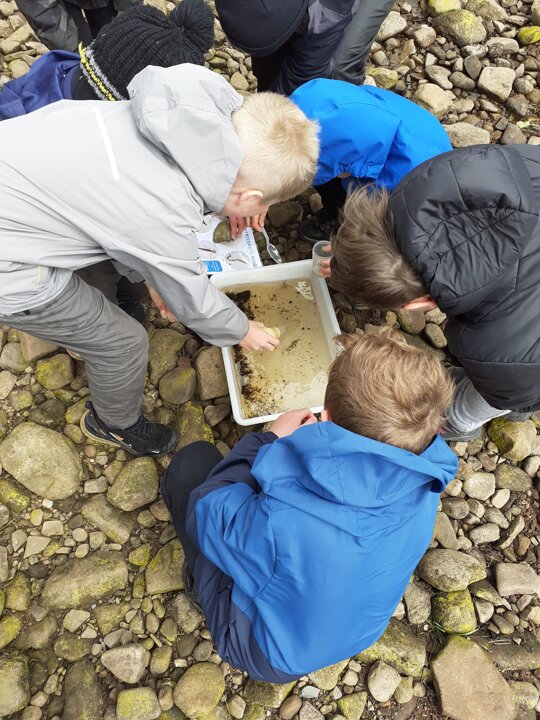 The final activity of the day was discovering some of the ecology of the river. Children looked at 'kick samples' taken from the river and explored to see which creatures were found. They really enjoyed using their charts to identify the different animals!