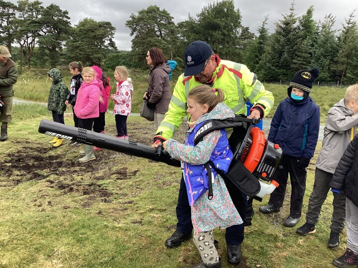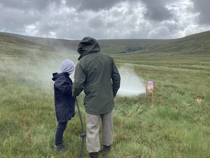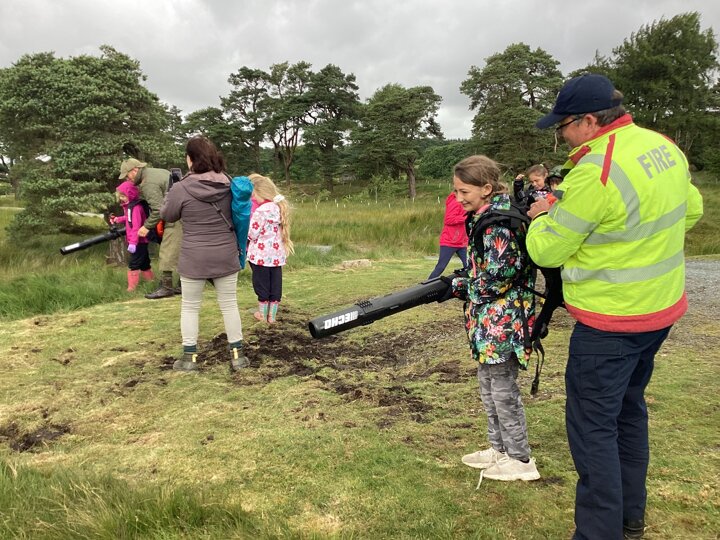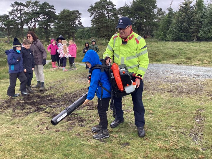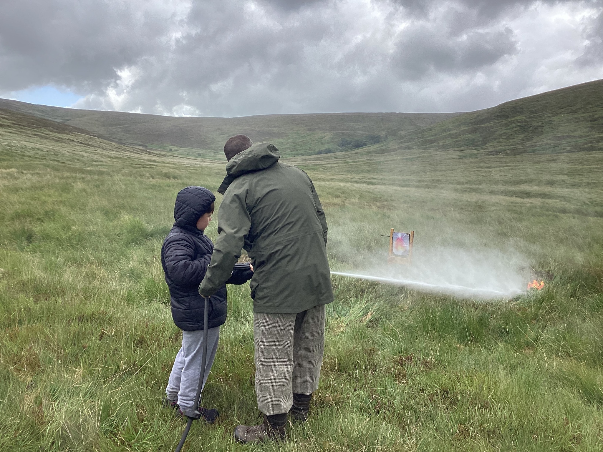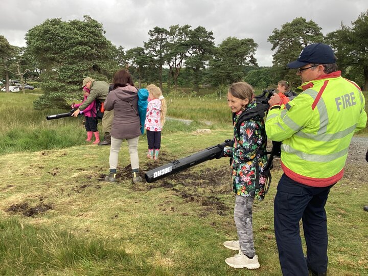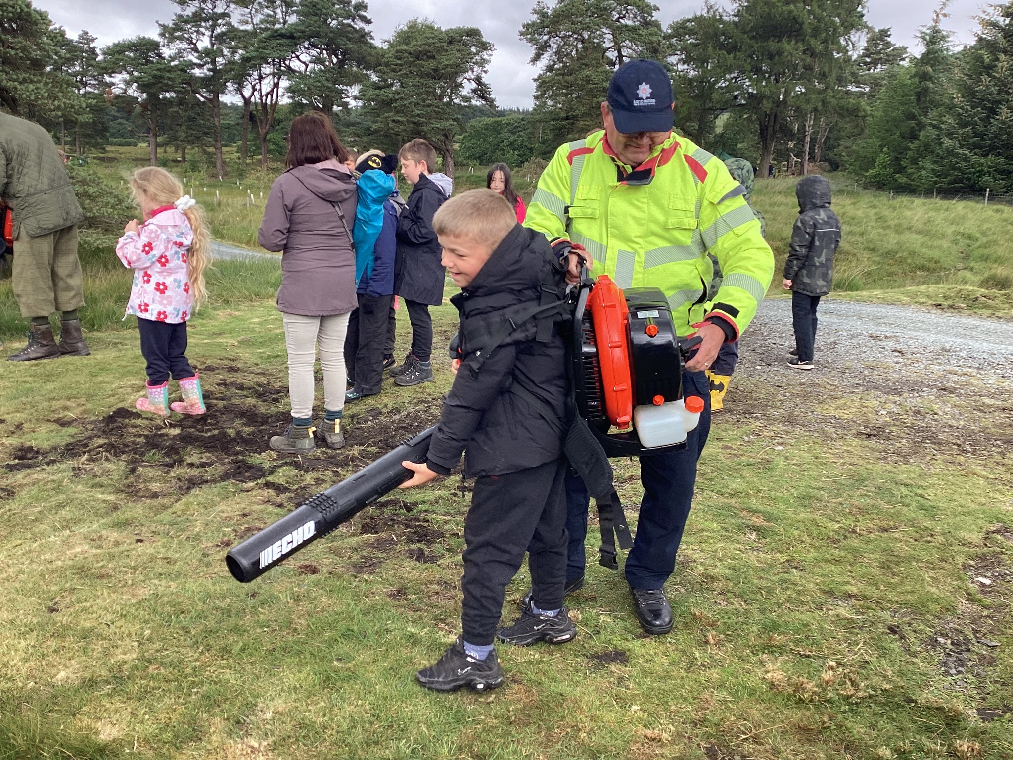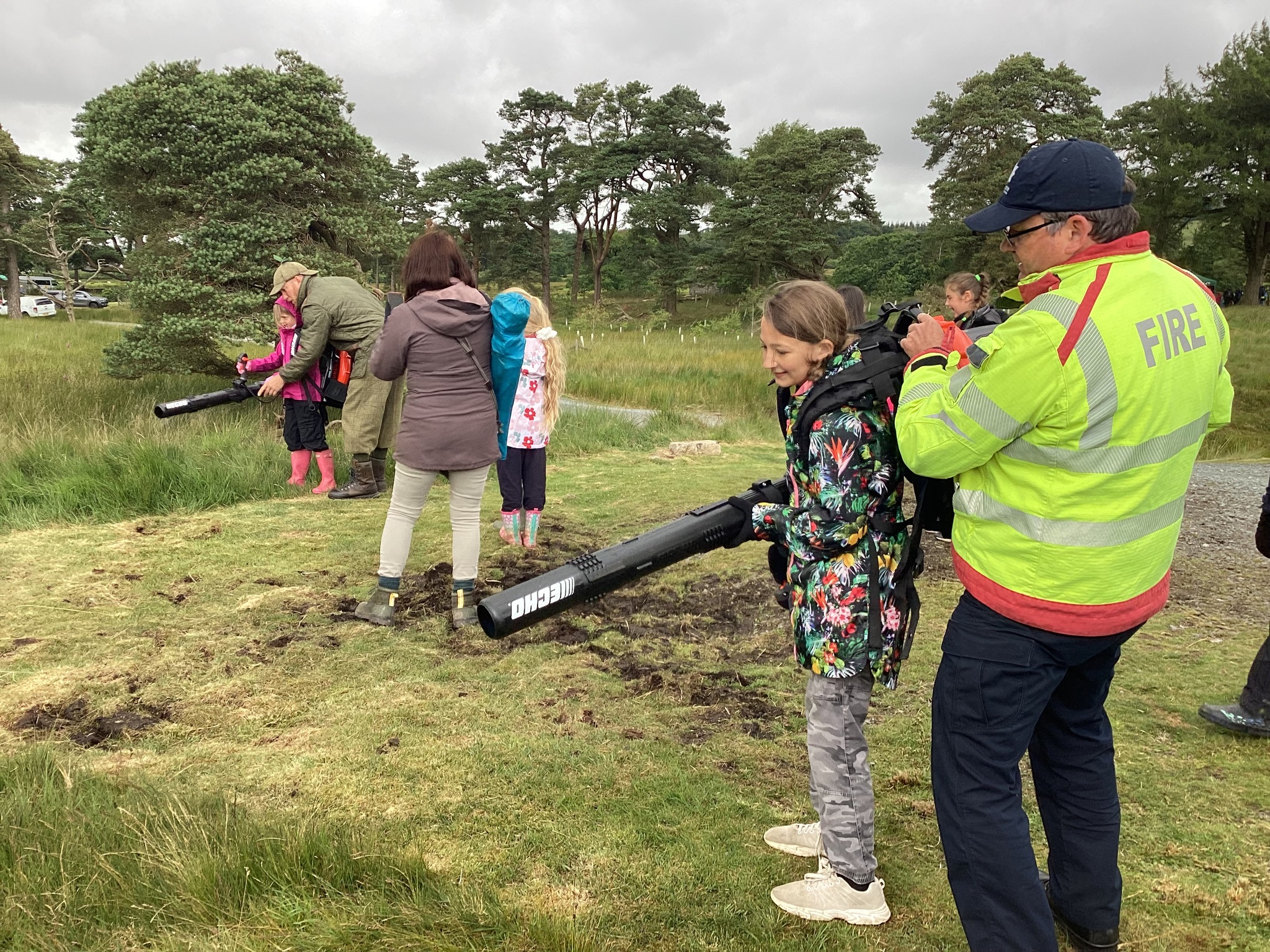 After this, the children met with firefighters who showed them how they would tackle a wildfire blaze on the moor. The children learned about preventing wildfires and some of the techniques used once a fire needed to be extinguished. We tried using leaf blowers - which are used to redirect the flames. We tried a heather beater, which can be used to stomp down flames. Finally, we had a go at squirting the hose!