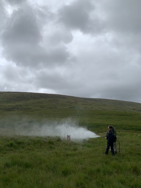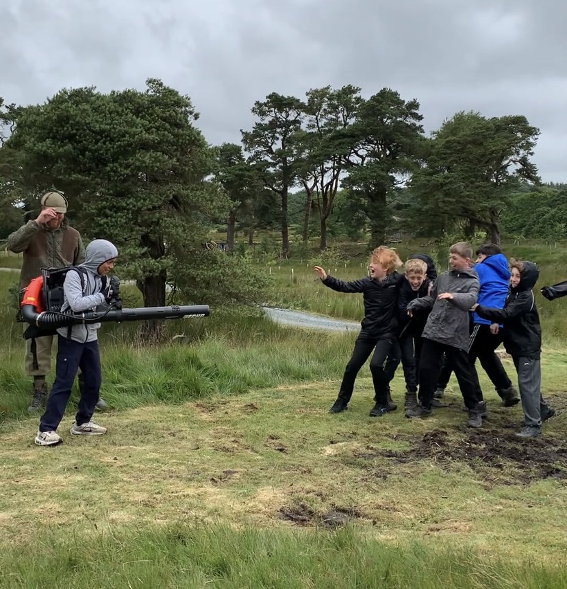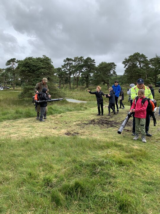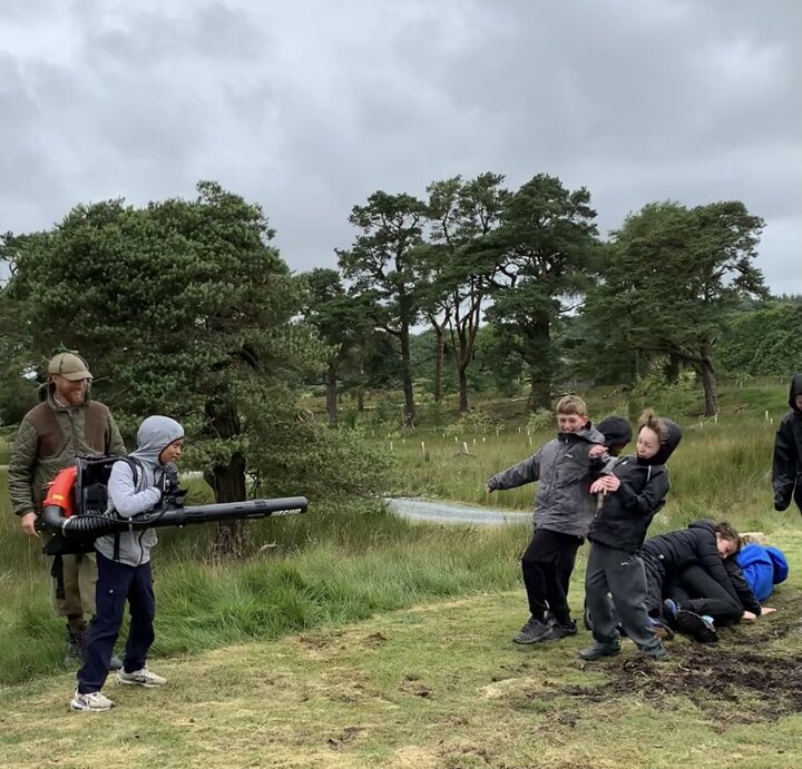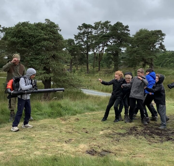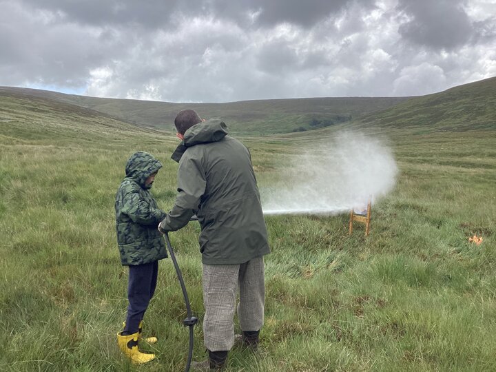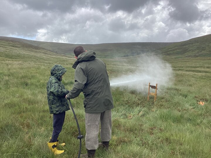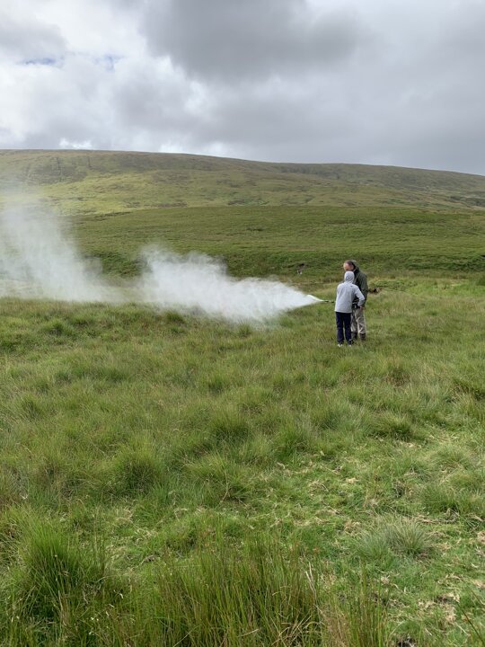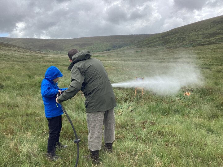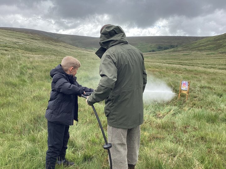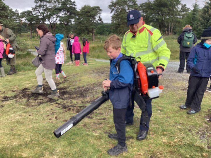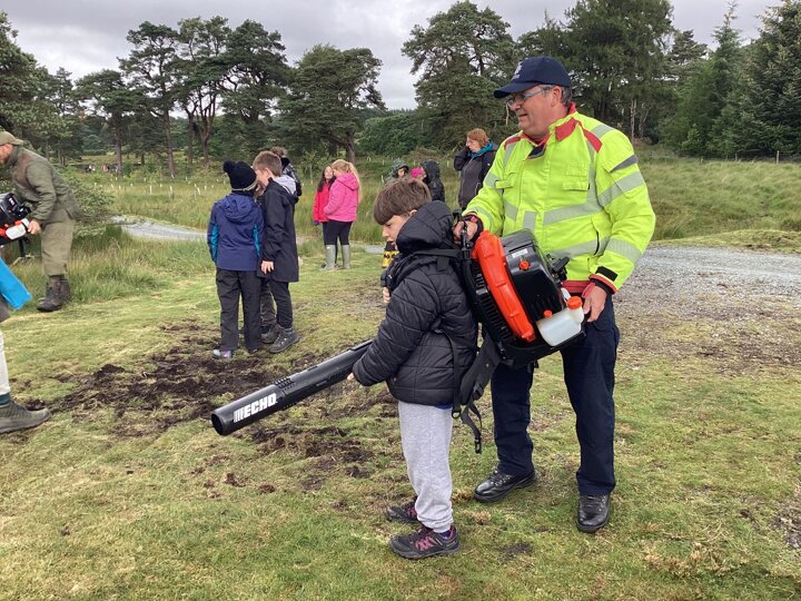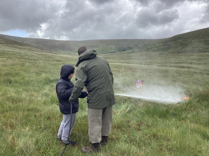 After this, the children met with firefighters who showed them how they would tackle a wildfire blaze on the moor. The children learned about preventing wildfires and some of the techniques used once a fire needed to be extinguished. We tried using leaf blowers - which are used to redirect the flames. We tried a heather beater, which can be used to stomp down flames. Finally, we had a go at squirting the hose!