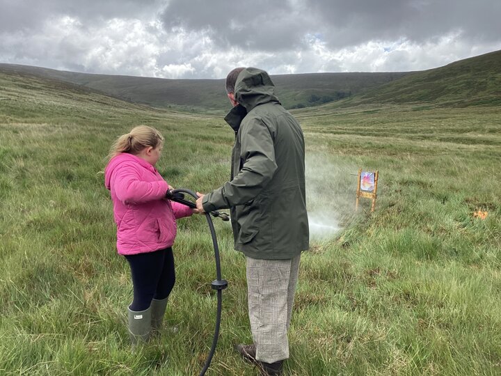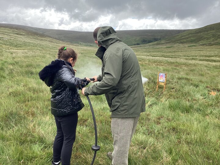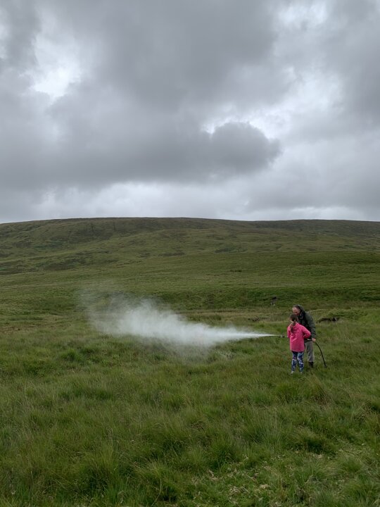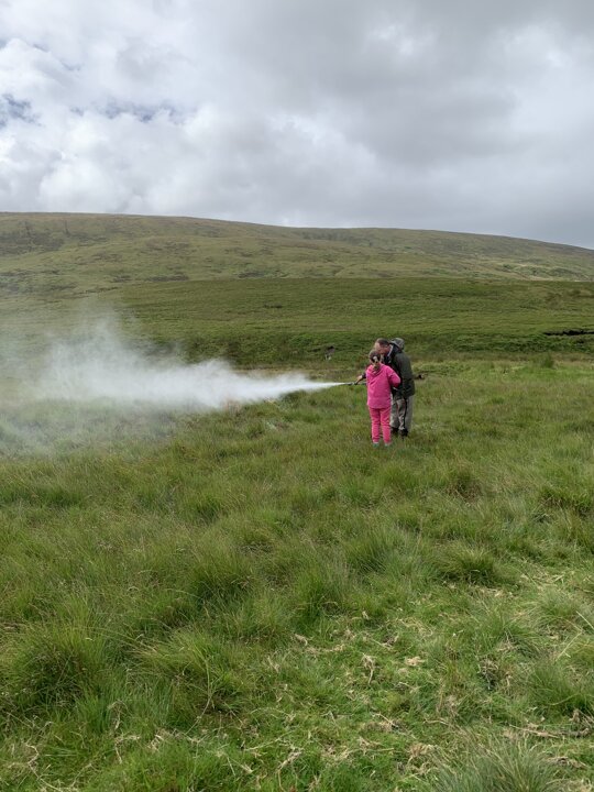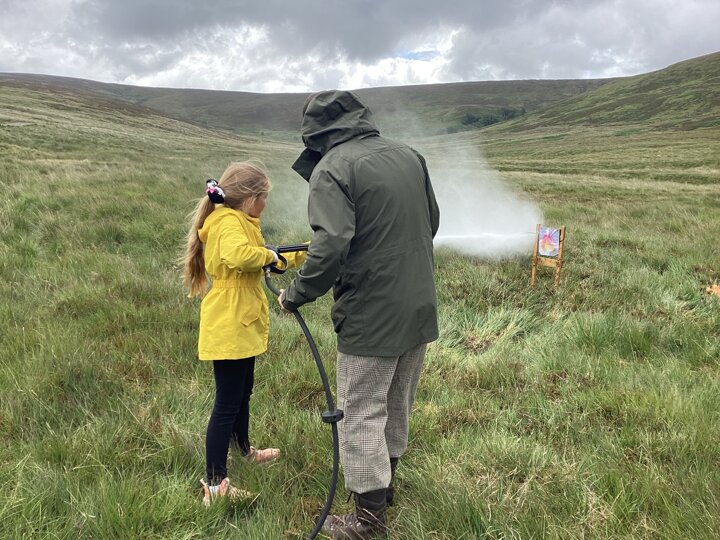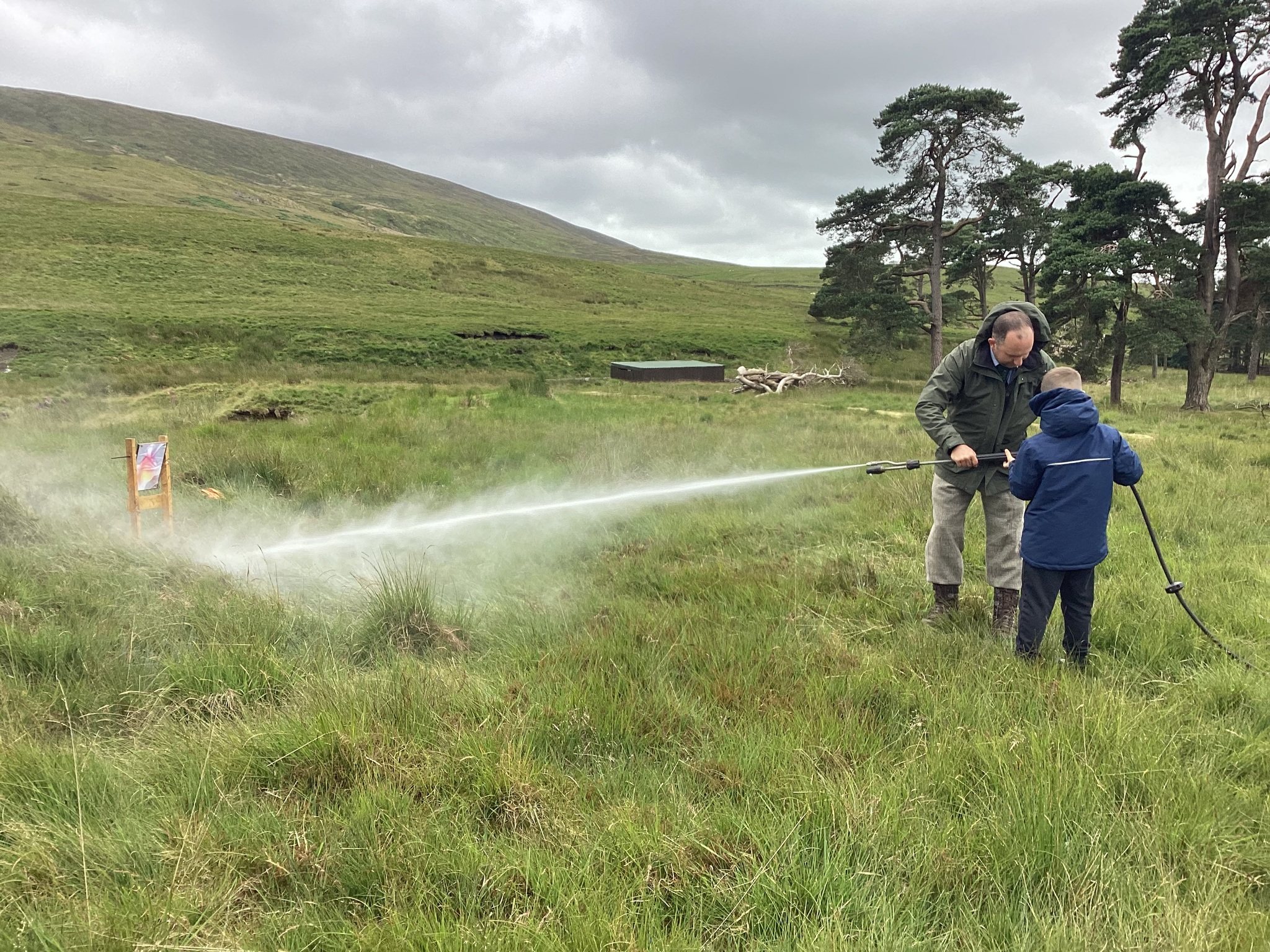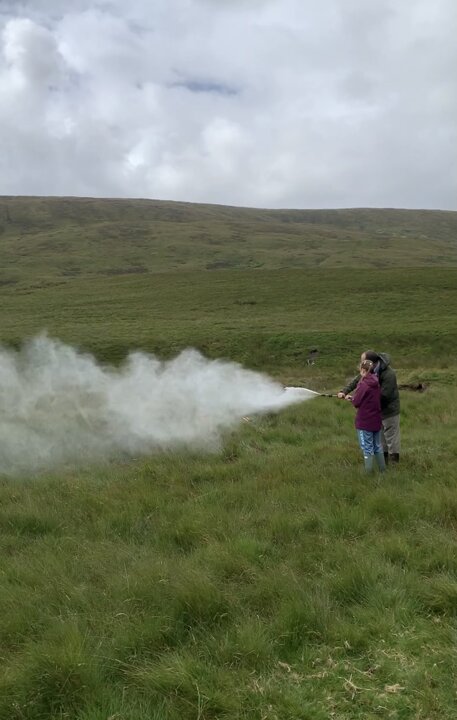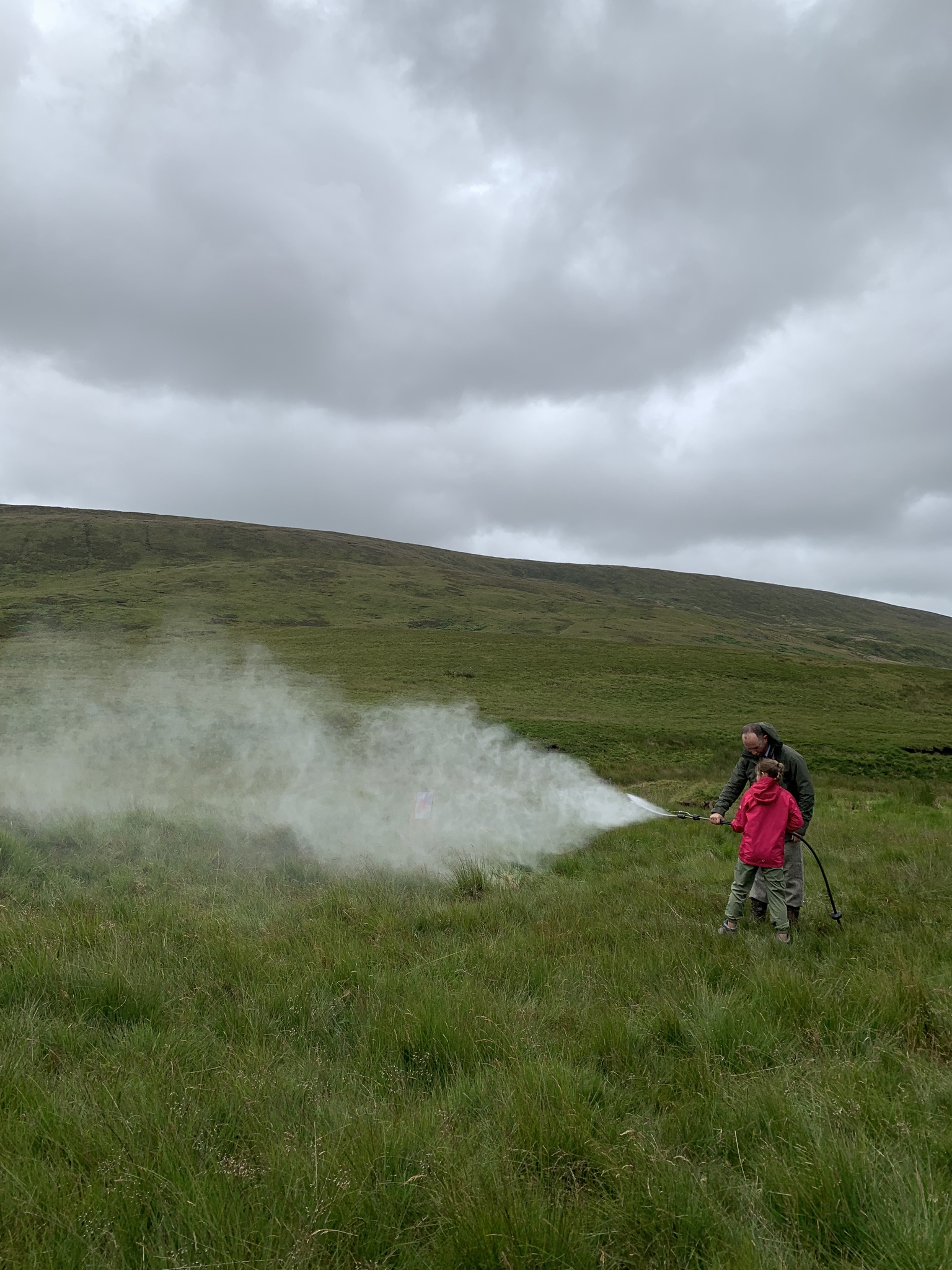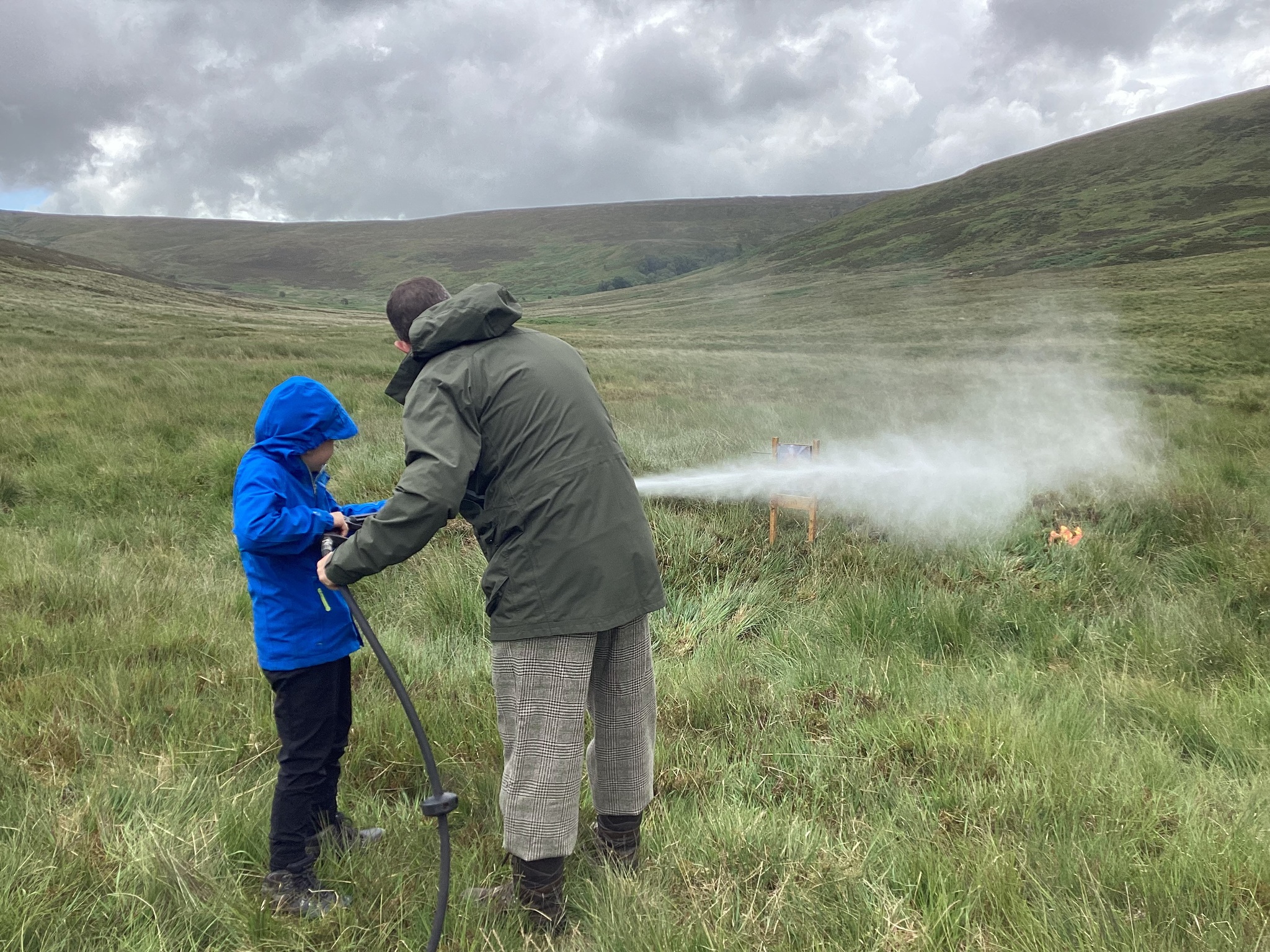 After this, the children met with firefighters who showed them how they would tackle a wildfire blaze on the moor. The children learned about preventing wildfires and some of the techniques used once a fire needed to be extinguished. We tried using leaf blowers - which are used to redirect the flames. We tried a heather beater, which can be used to stomp down flames. Finally, we had a go at squirting the hose!