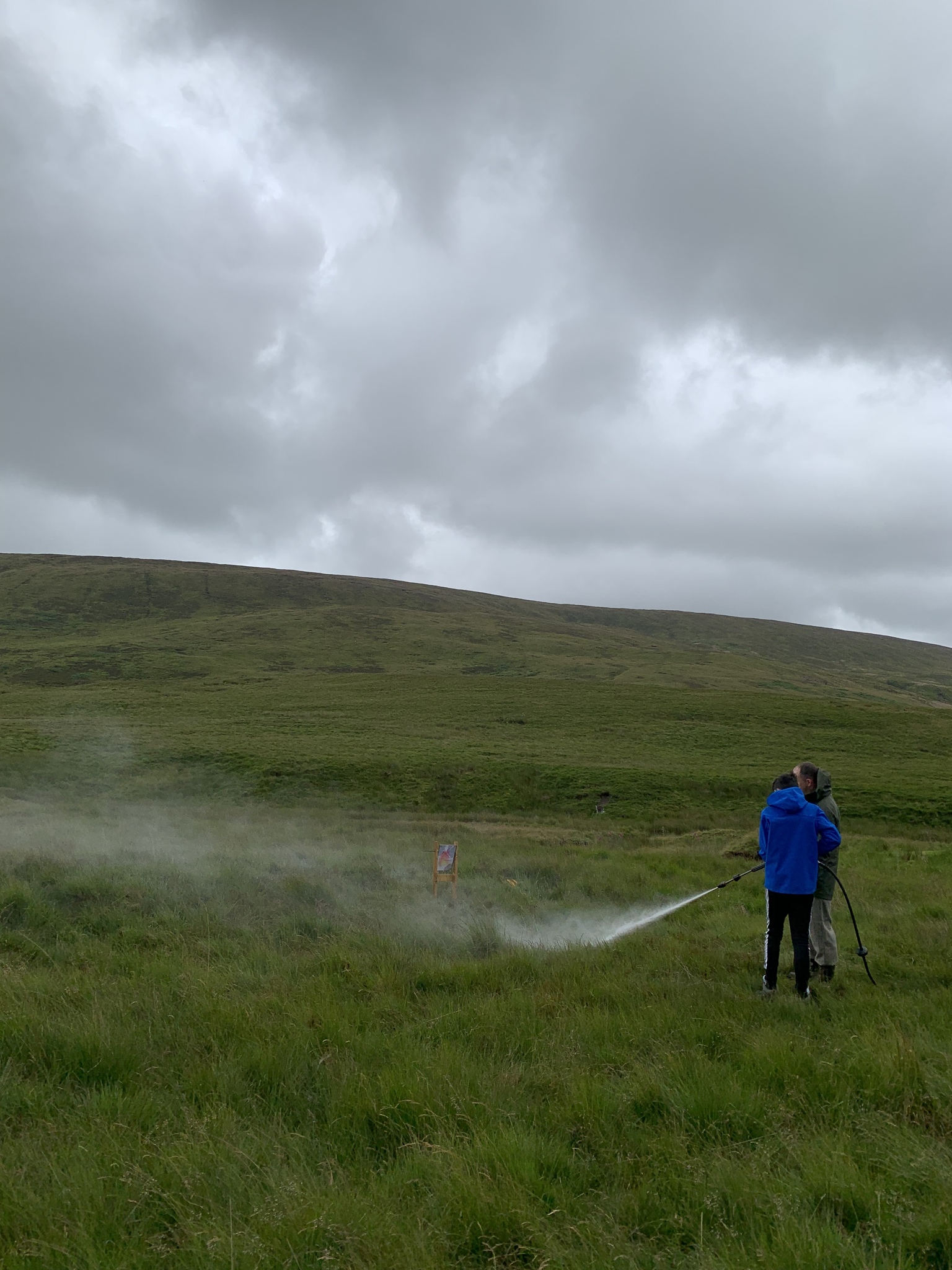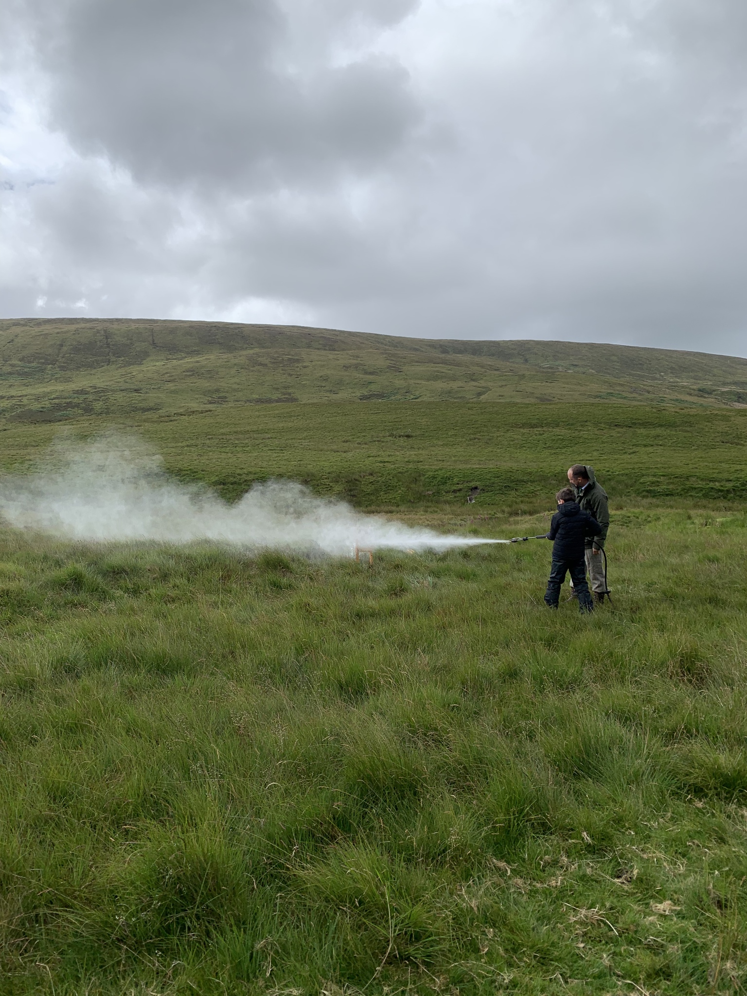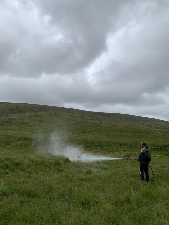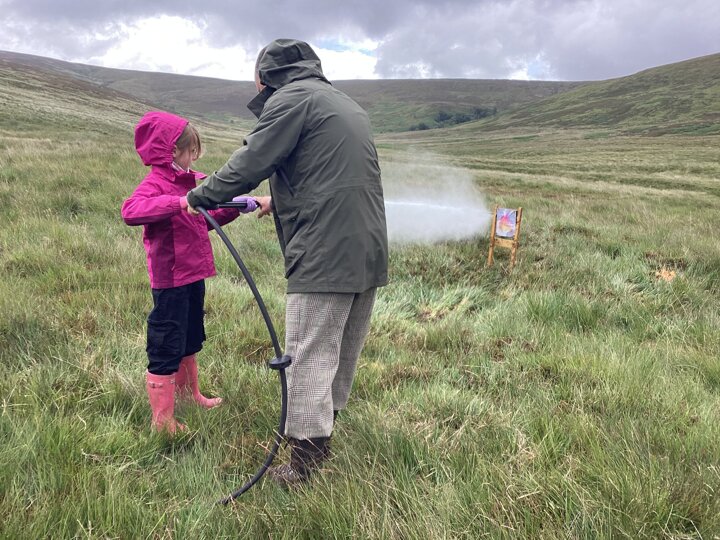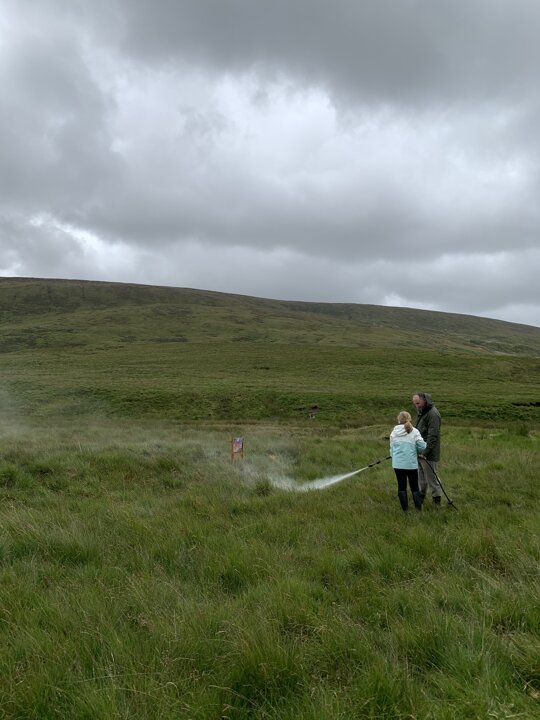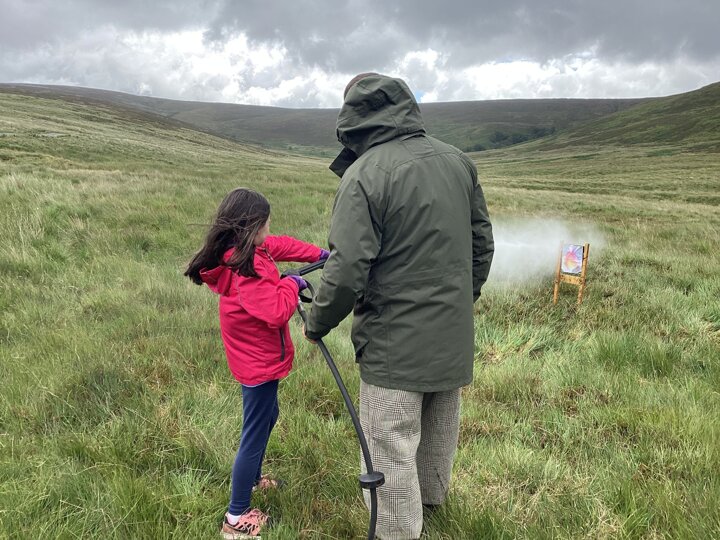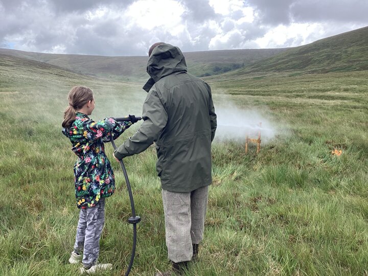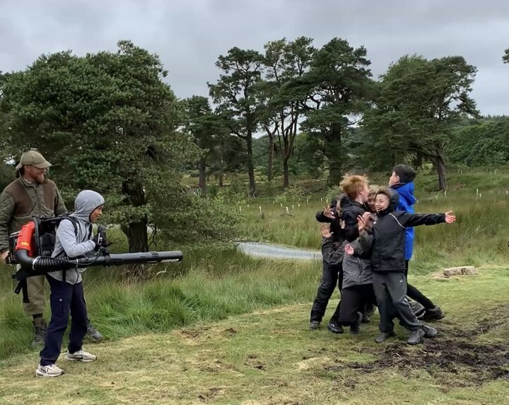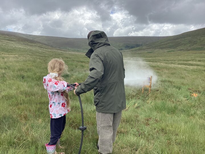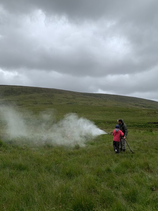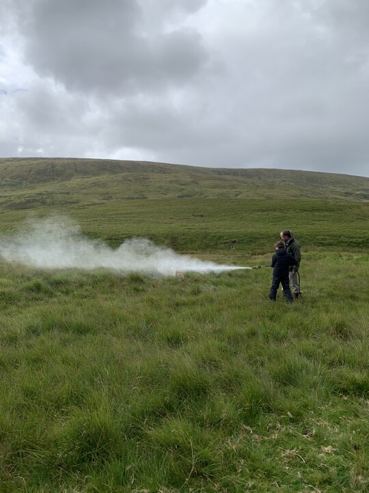 After this, the children met with firefighters who showed them how they would tackle a wildfire blaze on the moor. The children learned about preventing wildfires and some of the techniques used once a fire needed to be extinguished. We tried using leaf blowers - which are used to redirect the flames. We tried a heather beater, which can be used to stomp down flames. Finally, we had a go at squirting the hose!