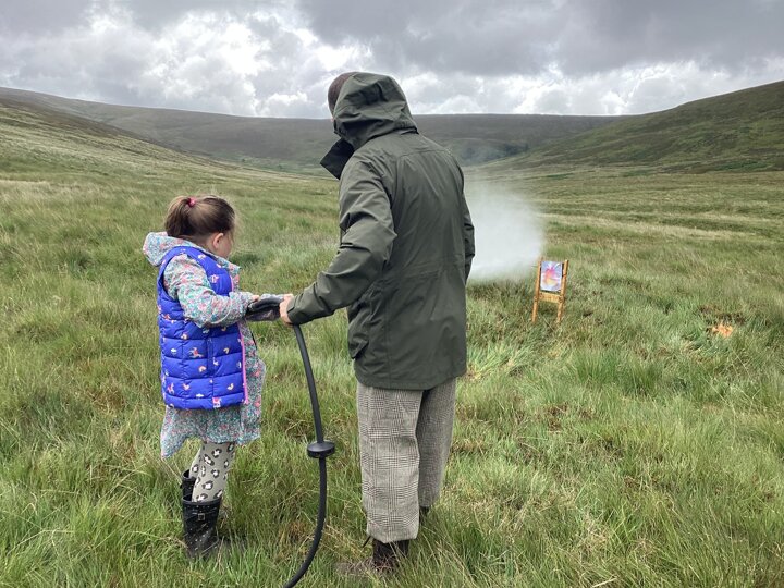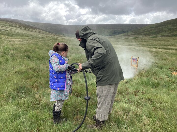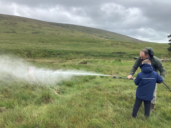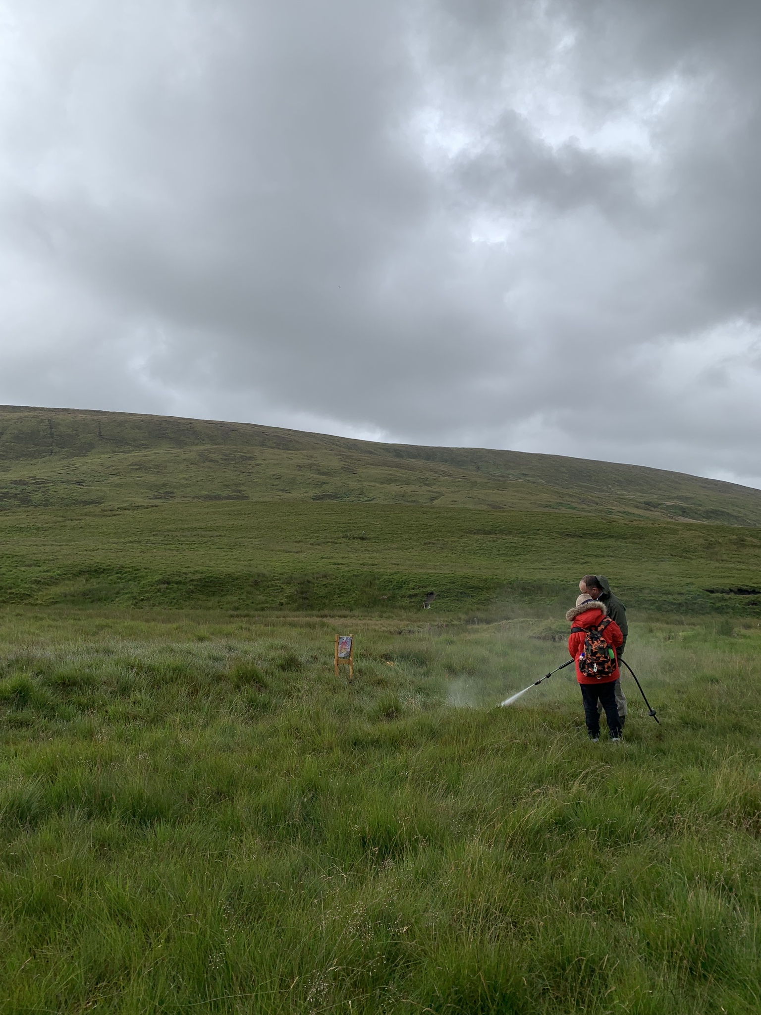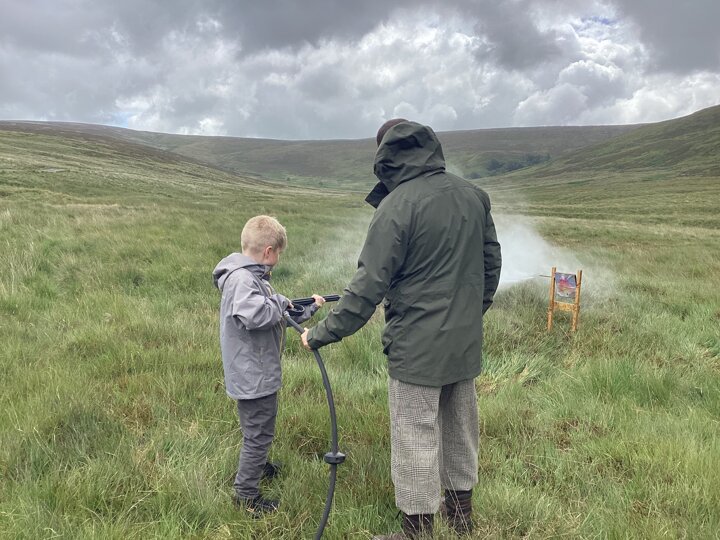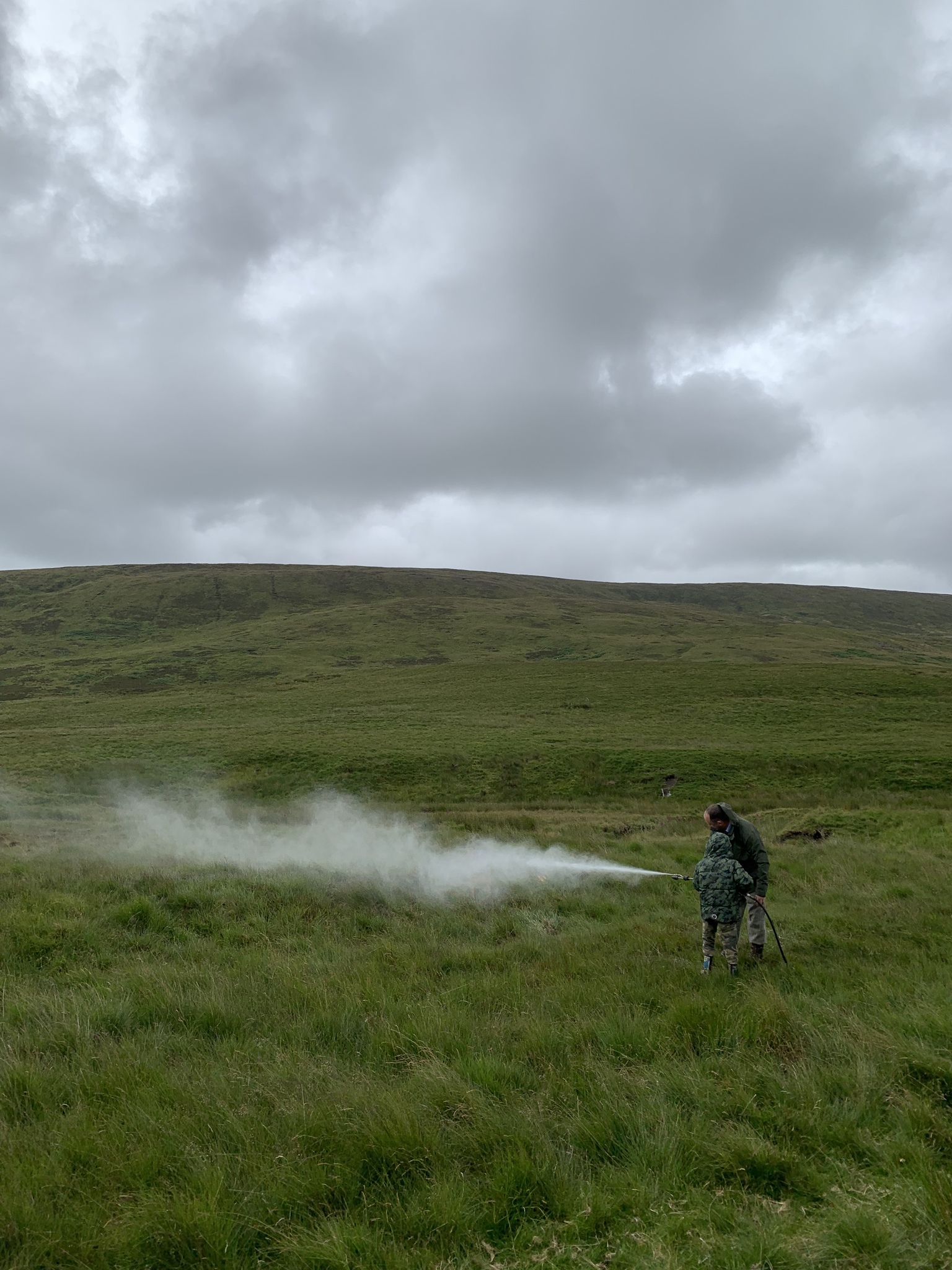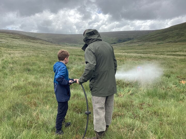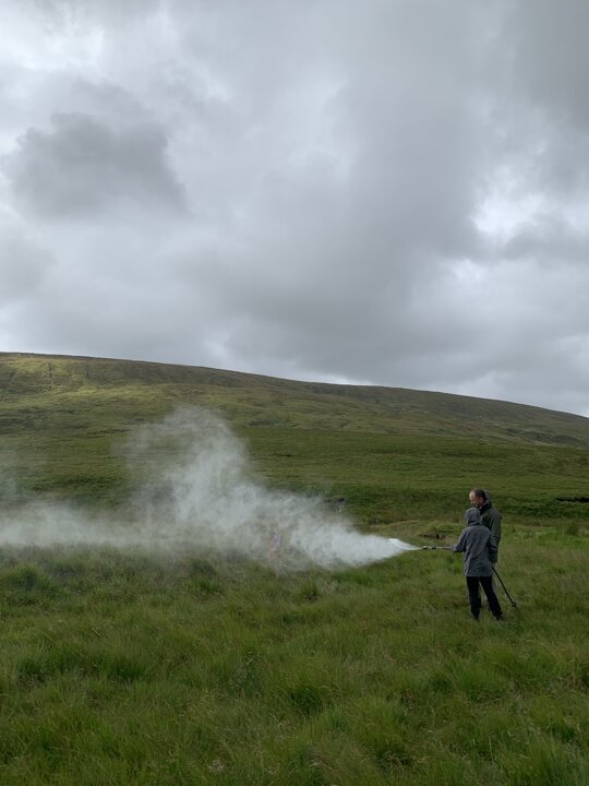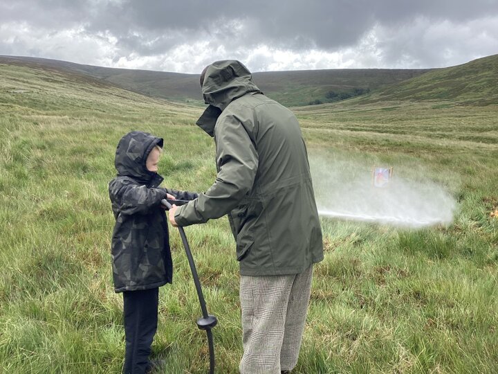 After this, the children met with firefighters who showed them how they would tackle a wildfire blaze on the moor. The children learned about preventing wildfires and some of the techniques used once a fire needed to be extinguished. We tried using leaf blowers - which are used to redirect the flames. We tried a heather beater, which can be used to stomp down flames. Finally, we had a go at squirting the hose!