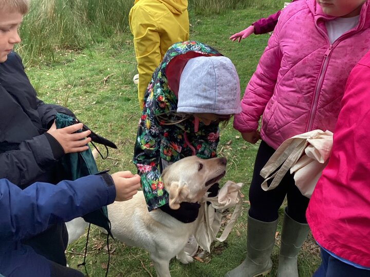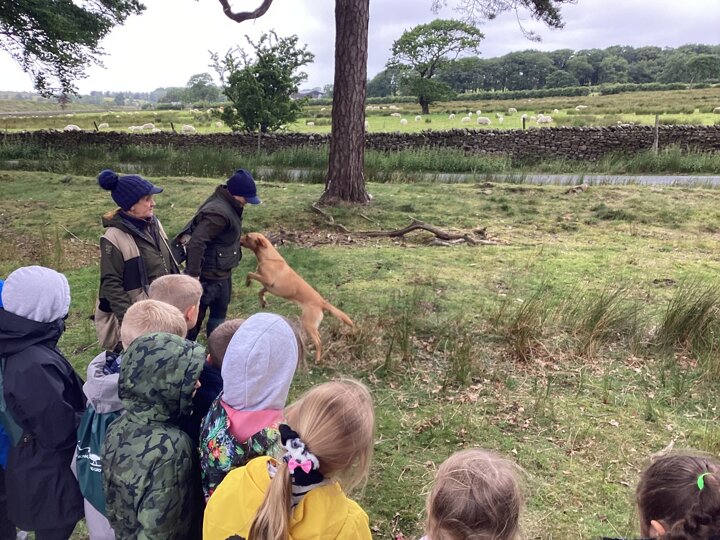 Our third activity was learning about how gamekeepers do their jobs. The gamekeeper we met had lots of stuffed animals to talk to us about so we could learn the roles they play in the moors ecosystem. After this, we went to see the gundogs. The children loved meeting the dogs and seeing how clever they were to follow instructions so well!