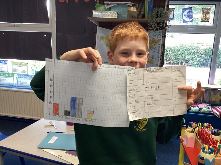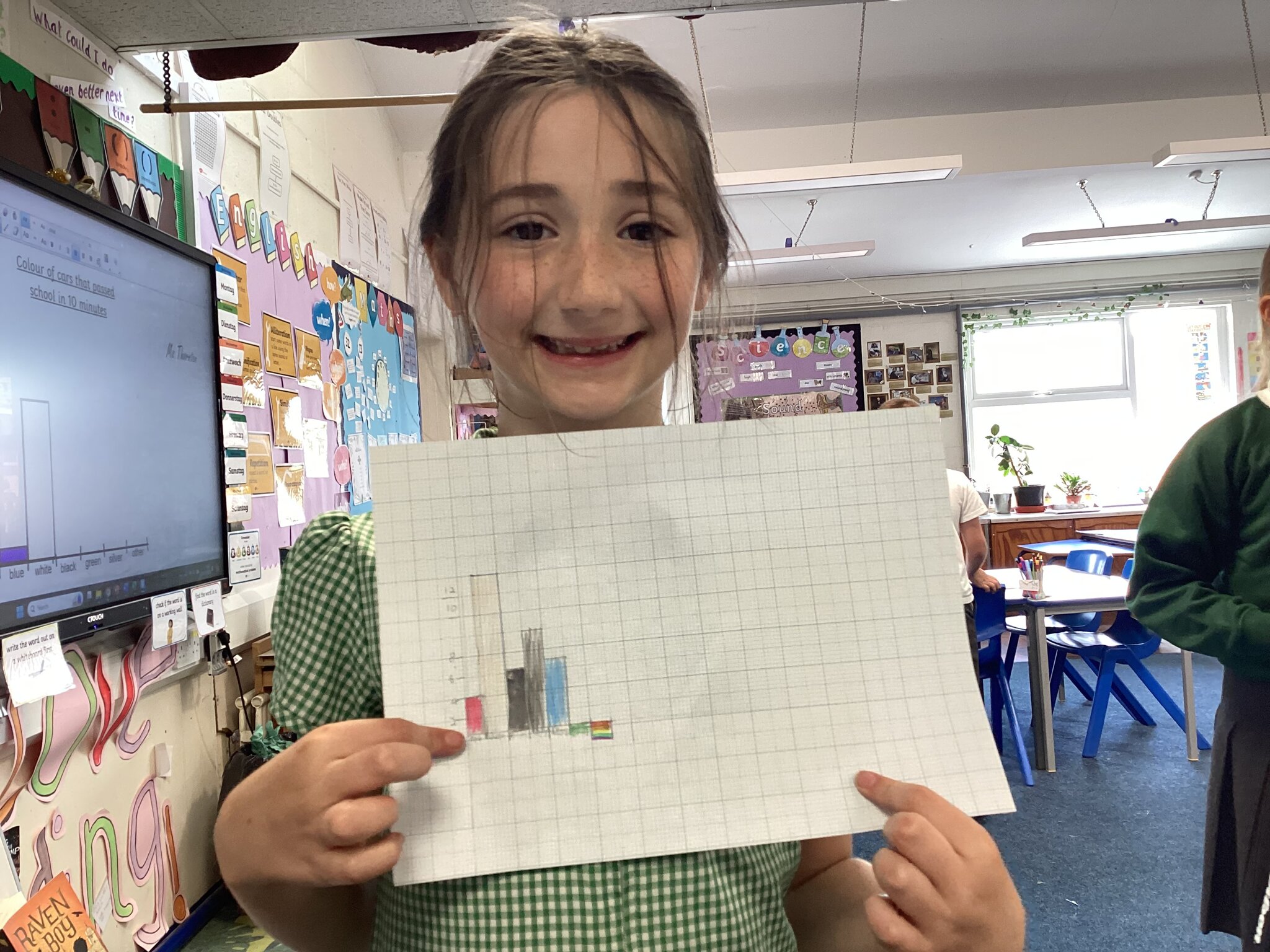 We started with a tally and decided to note down something we'd done before - the colour of cars that passed the school within 10 minutes.