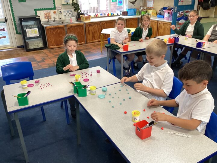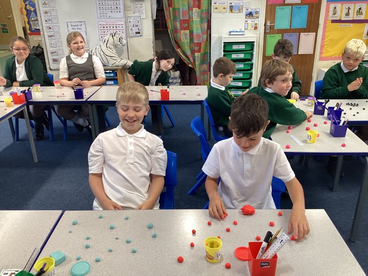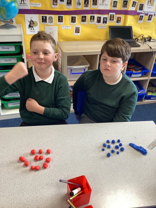 We also learnt about how the particles would look in solids, liquids and gases. We used our play doh to create models of these!