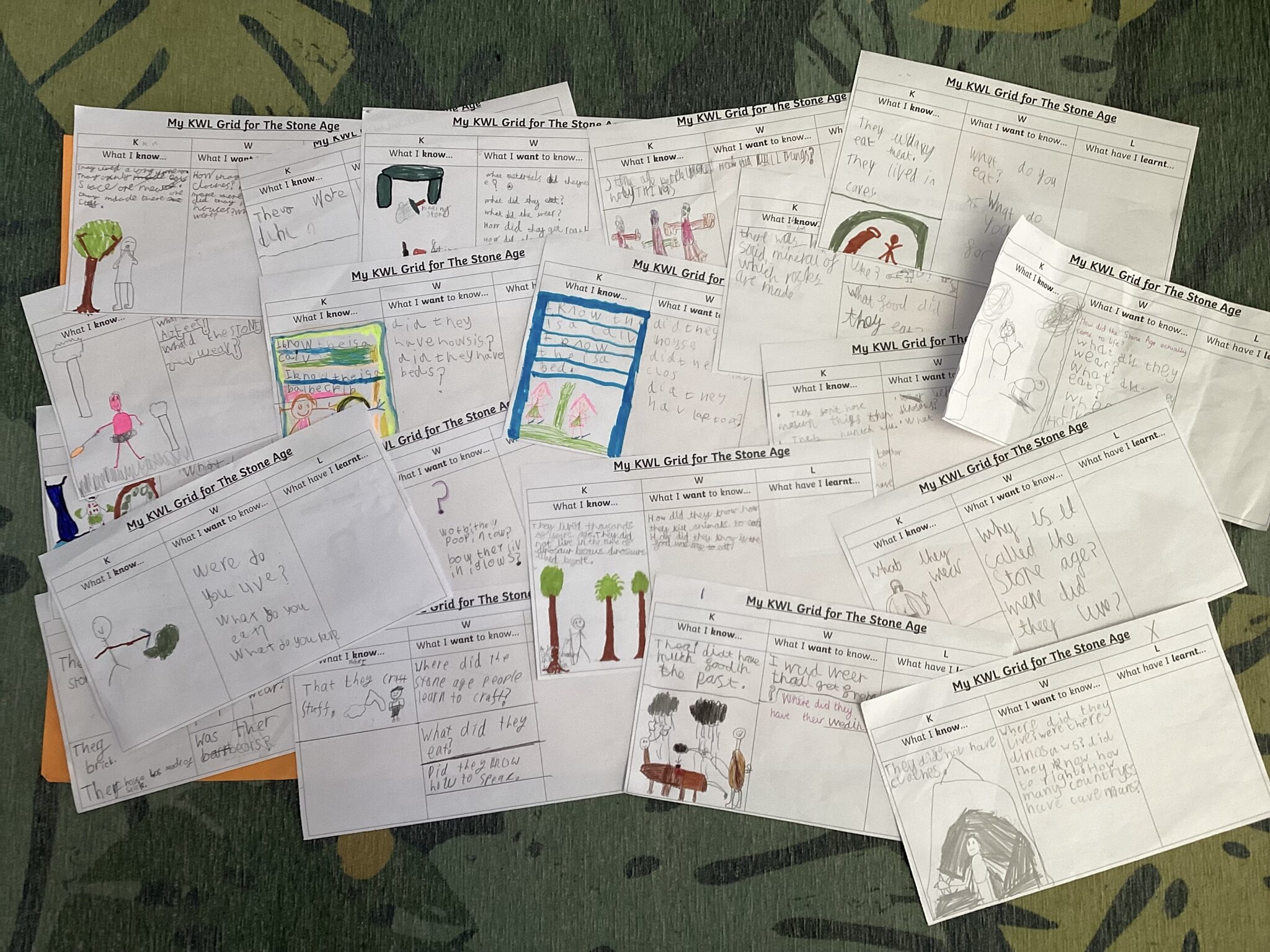 Our new history topic is ‘The Stone Age’ and we started with a KWL grid to find out what the children already know and what they would like to know.
