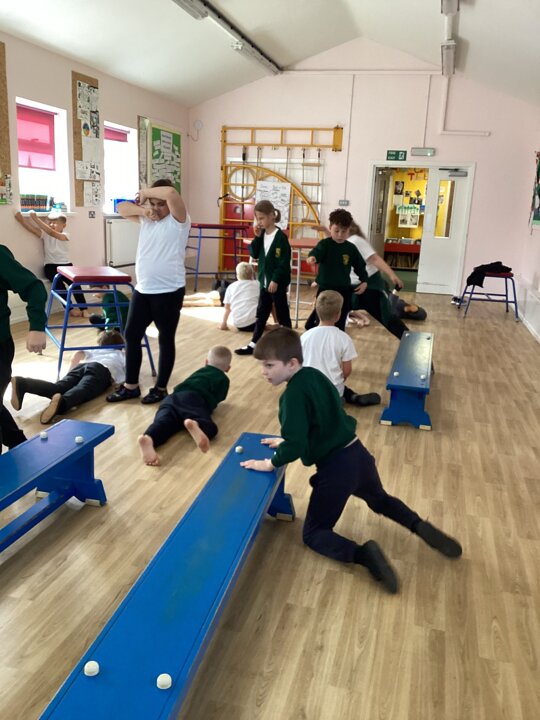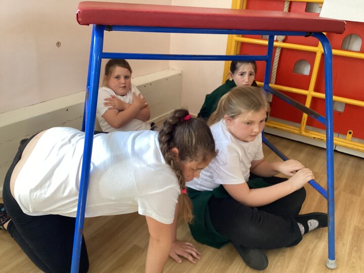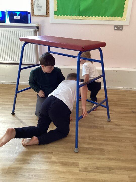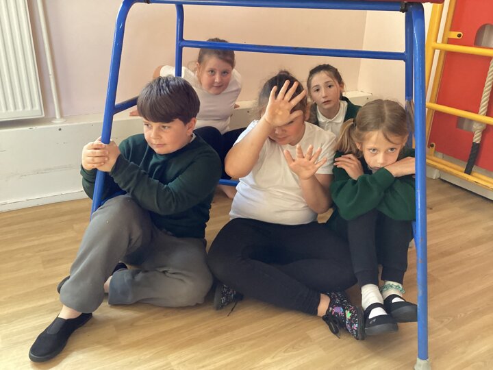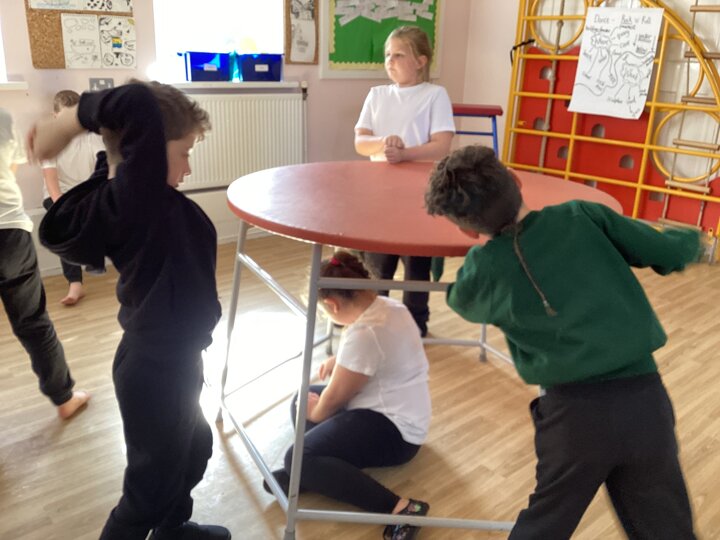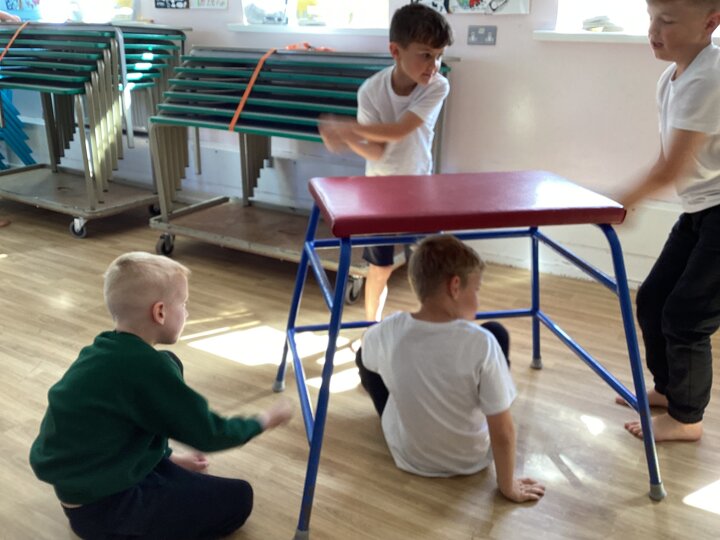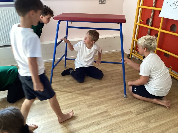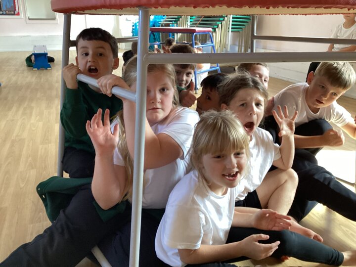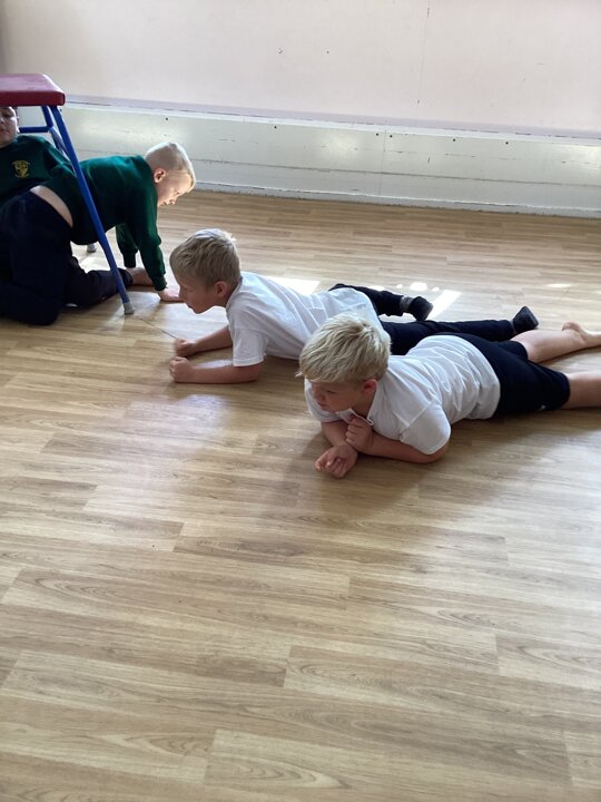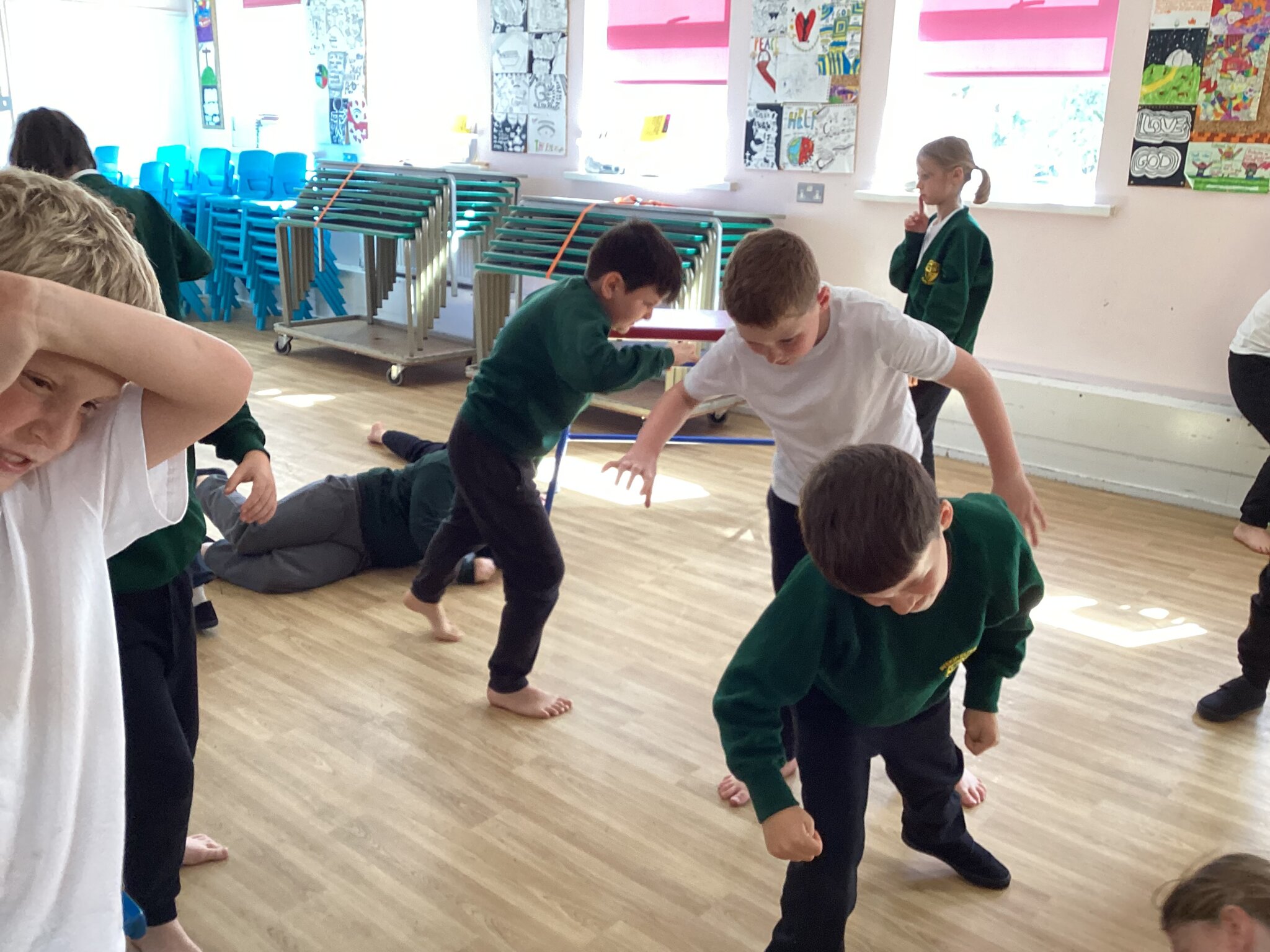 The children have been learning to navigate and use the hall space safely and creativity, listen to commands and follow signals, travel around and freeze frame to represent ideas.