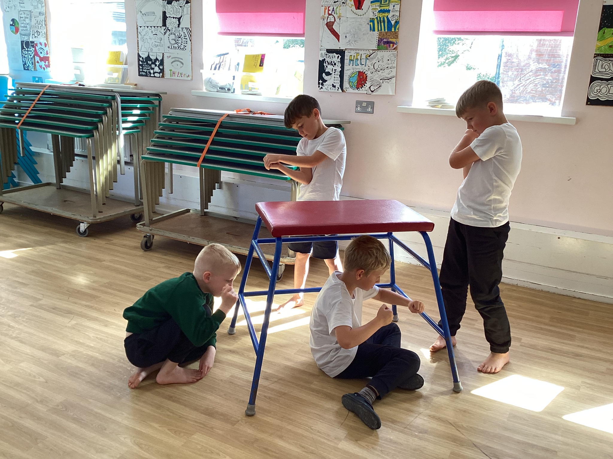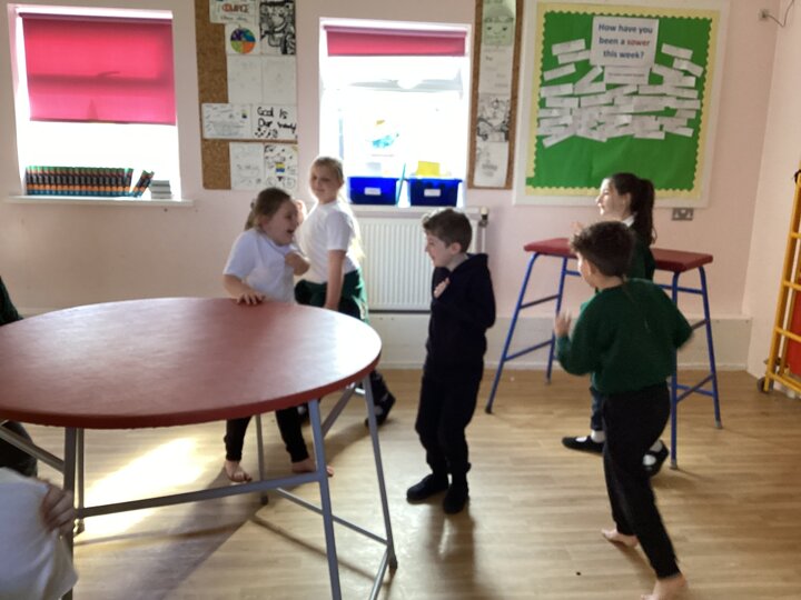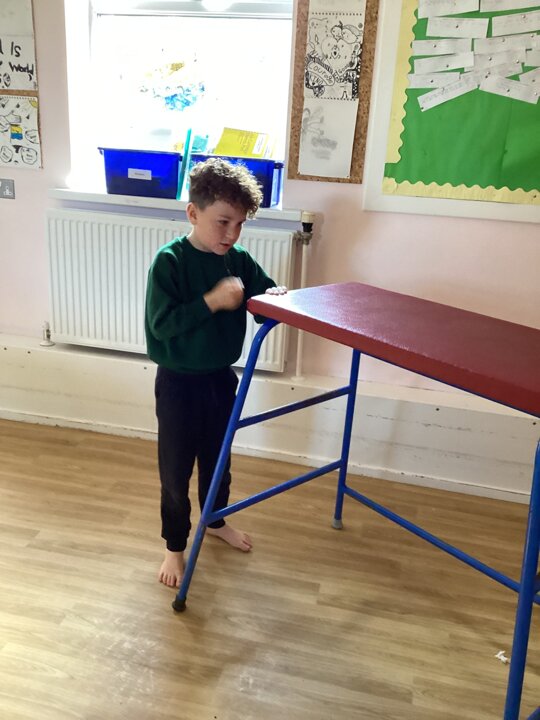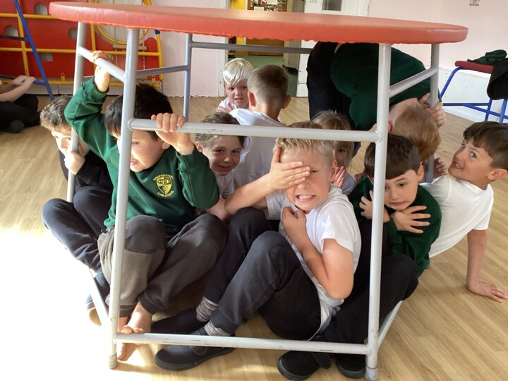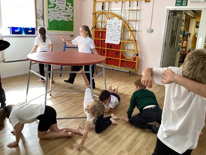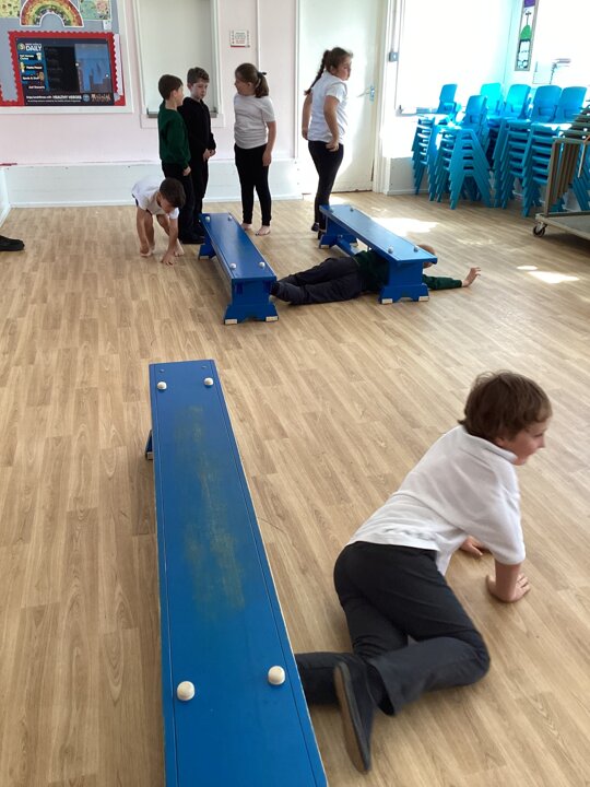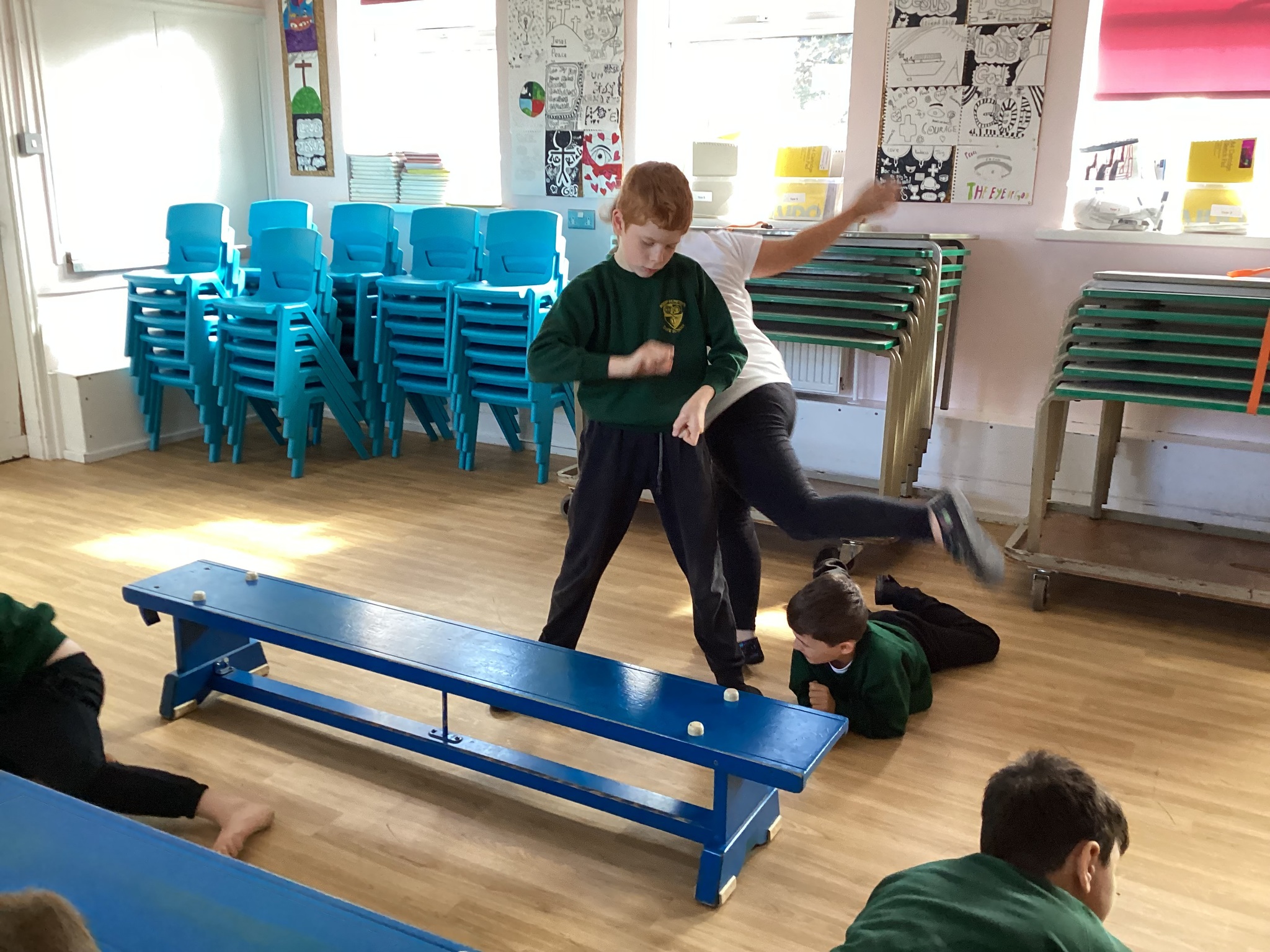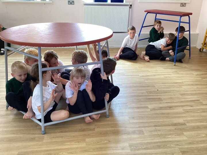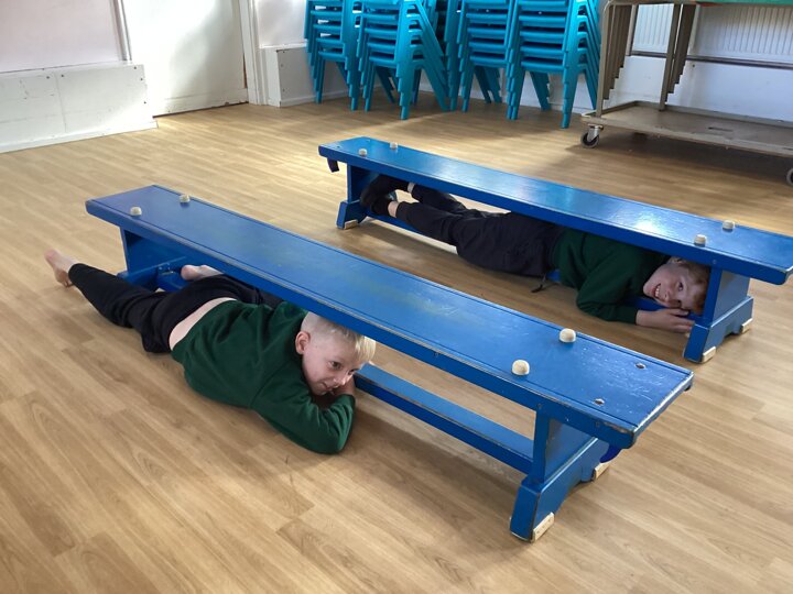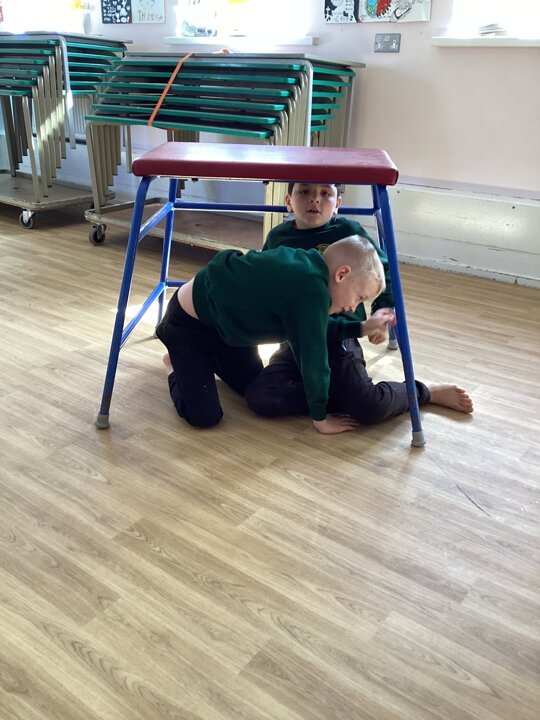 The children have been learning to navigate and use the hall space safely and creativity, listen to commands and follow signals, travel around and freeze frame to represent ideas.