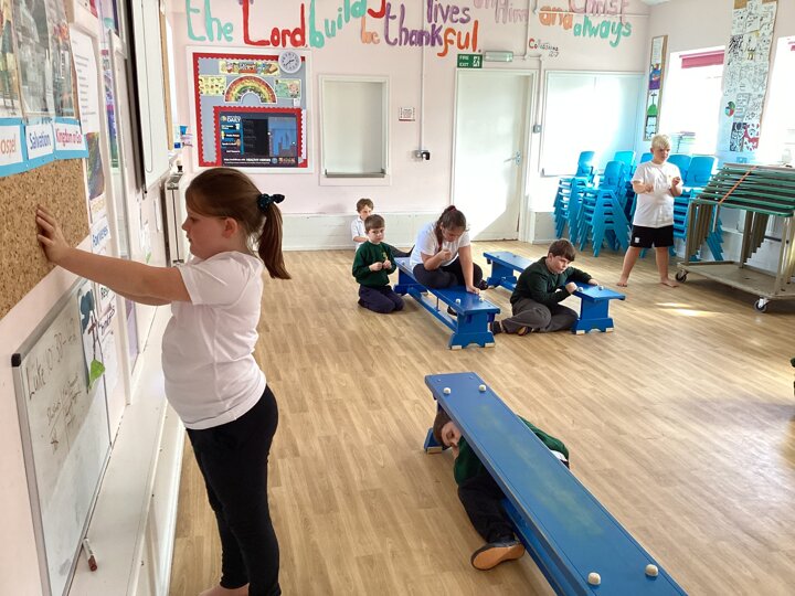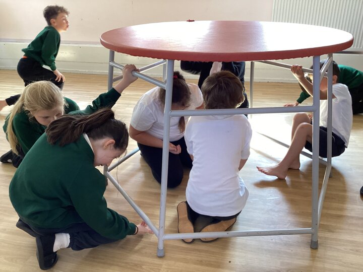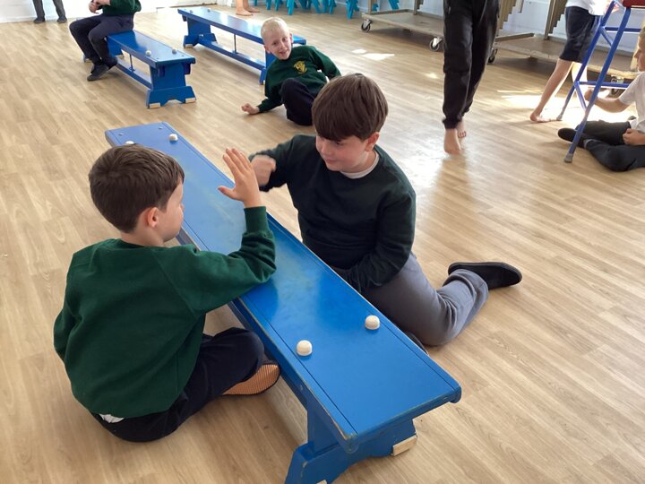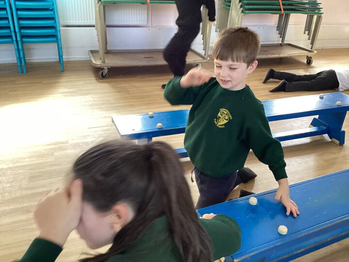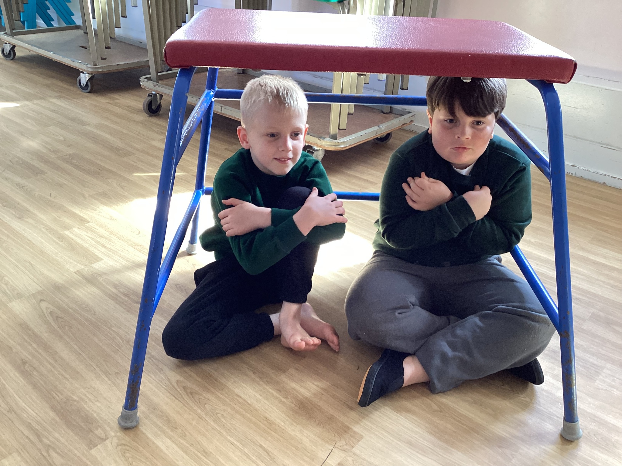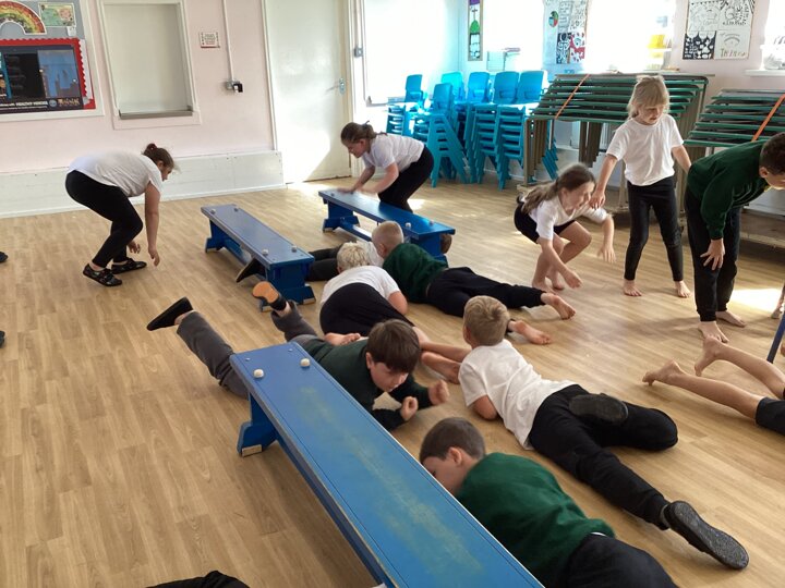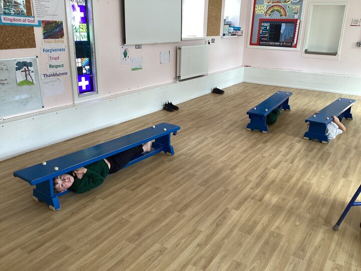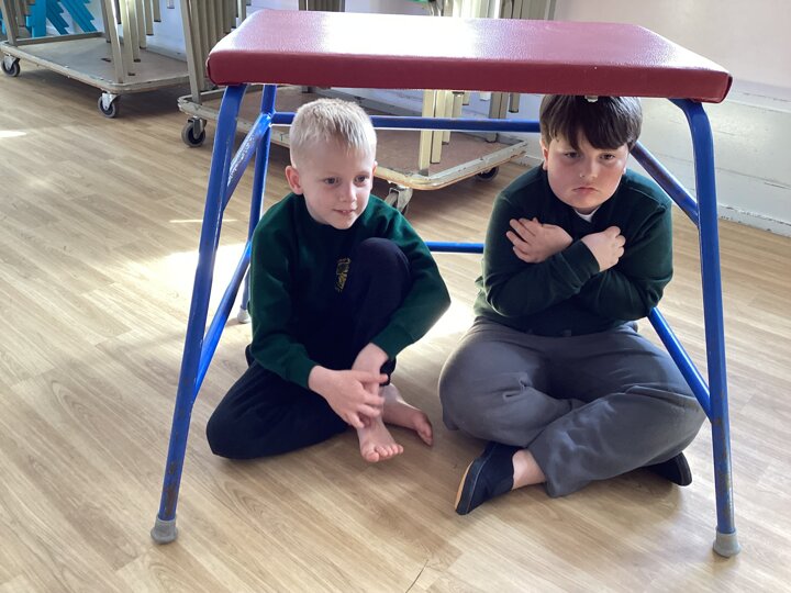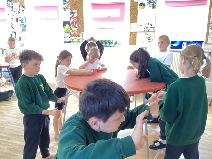 The children have been learning to navigate and use the hall space safely and creativity, listen to commands and follow signals, travel around and freeze frame to represent ideas.