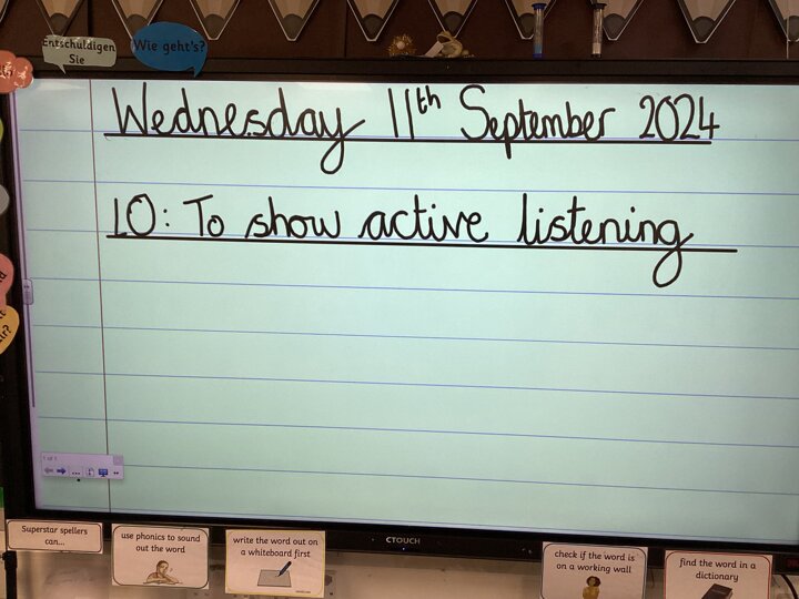 In English, children are learning to show active listening by responding to our current story with annotations, drawings, notes, discussions and being encouraged to listen to one another, share our thoughts and make links.