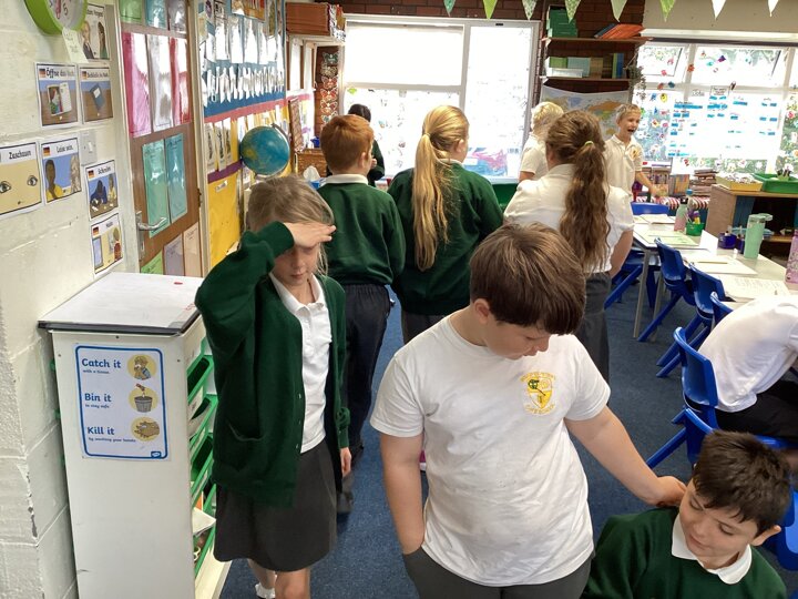 To help build up our vocabulary, we closed our eyes and listened to sounds of a woodland and birdsong. Imagining they were Barney, they had to think about what they could see in different parts of the pit…imagine what it would be like to fall in and look around…explore…reach out and hold items…