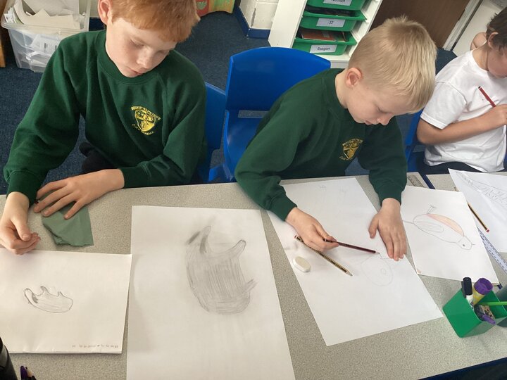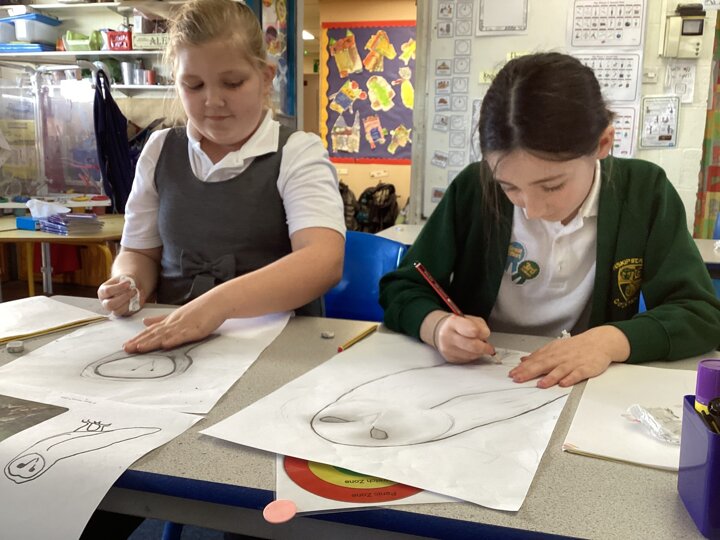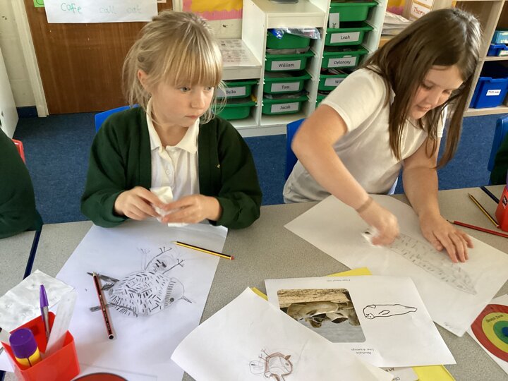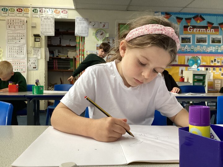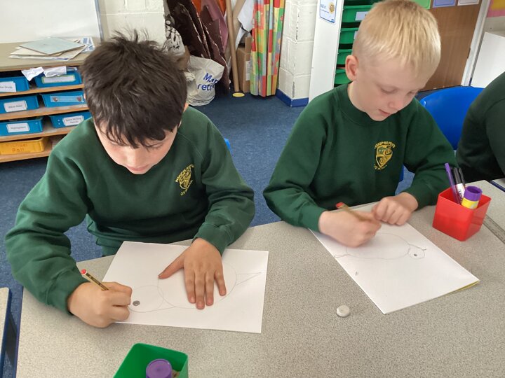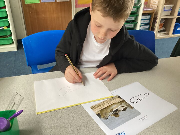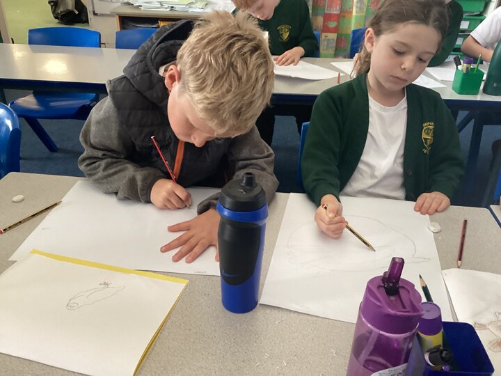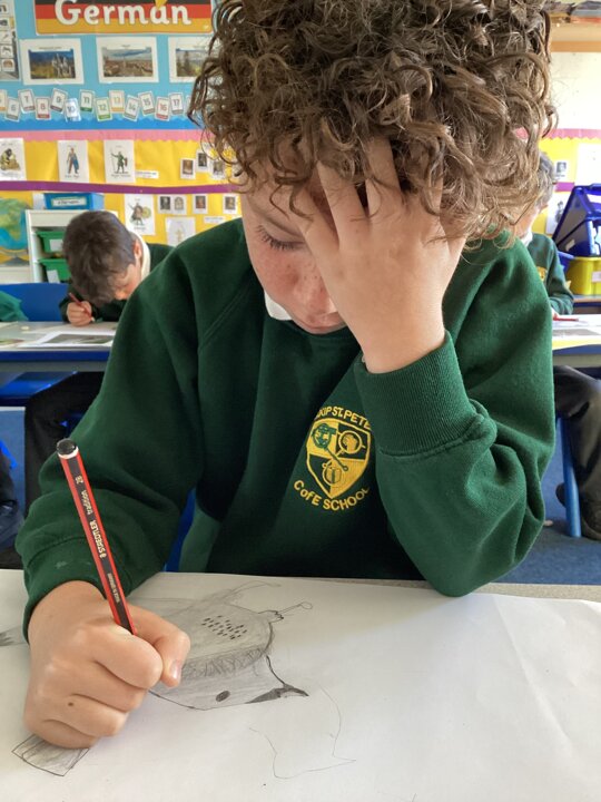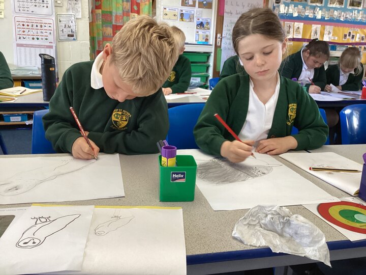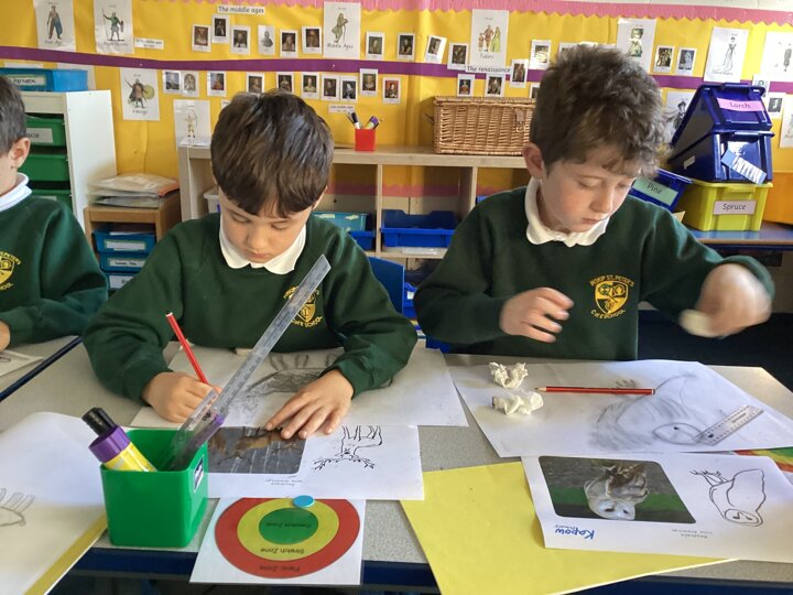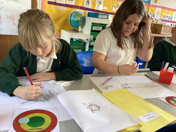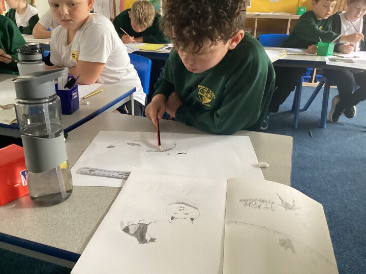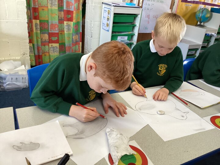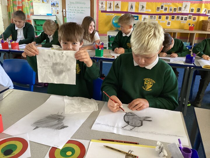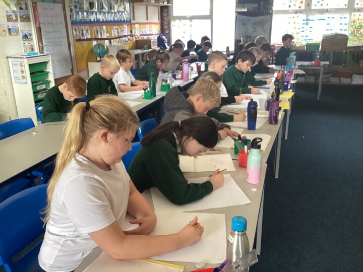 Middle School had to observe for basic shapes and faintly draw these lines first before adding a few details. They were then using their darker art pencils to create bold outlines. Using sketching, shading and blending, the children created some fantastic drawings of the different animals, with a number of children commenting how it was their best piece of art yet!!